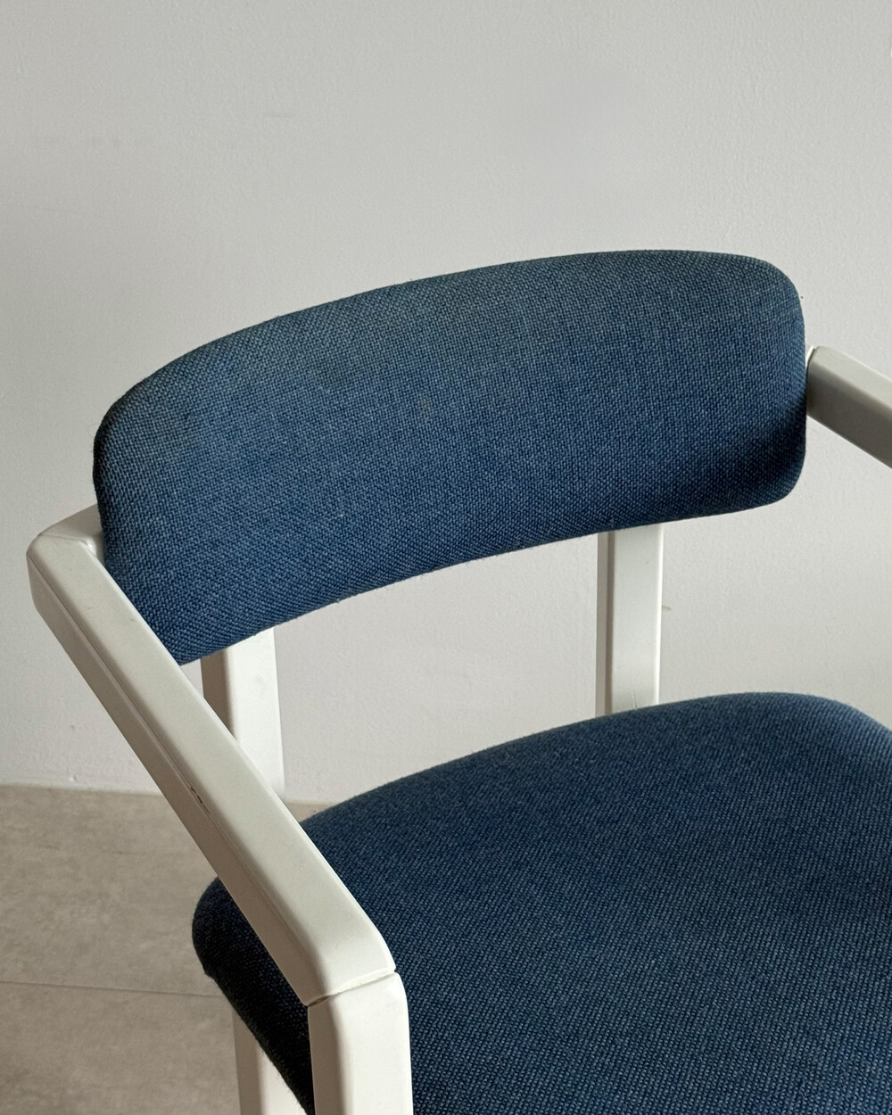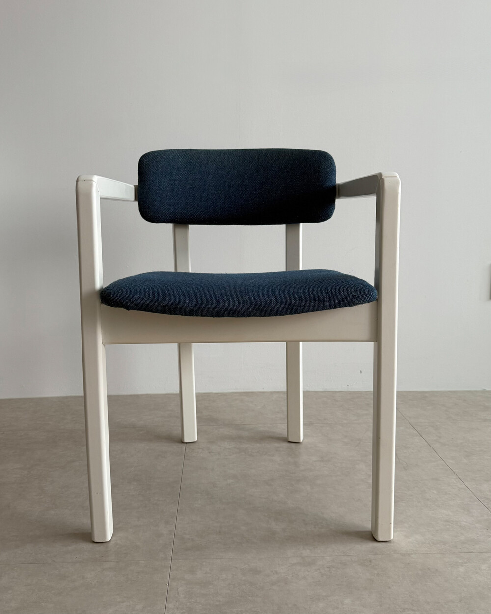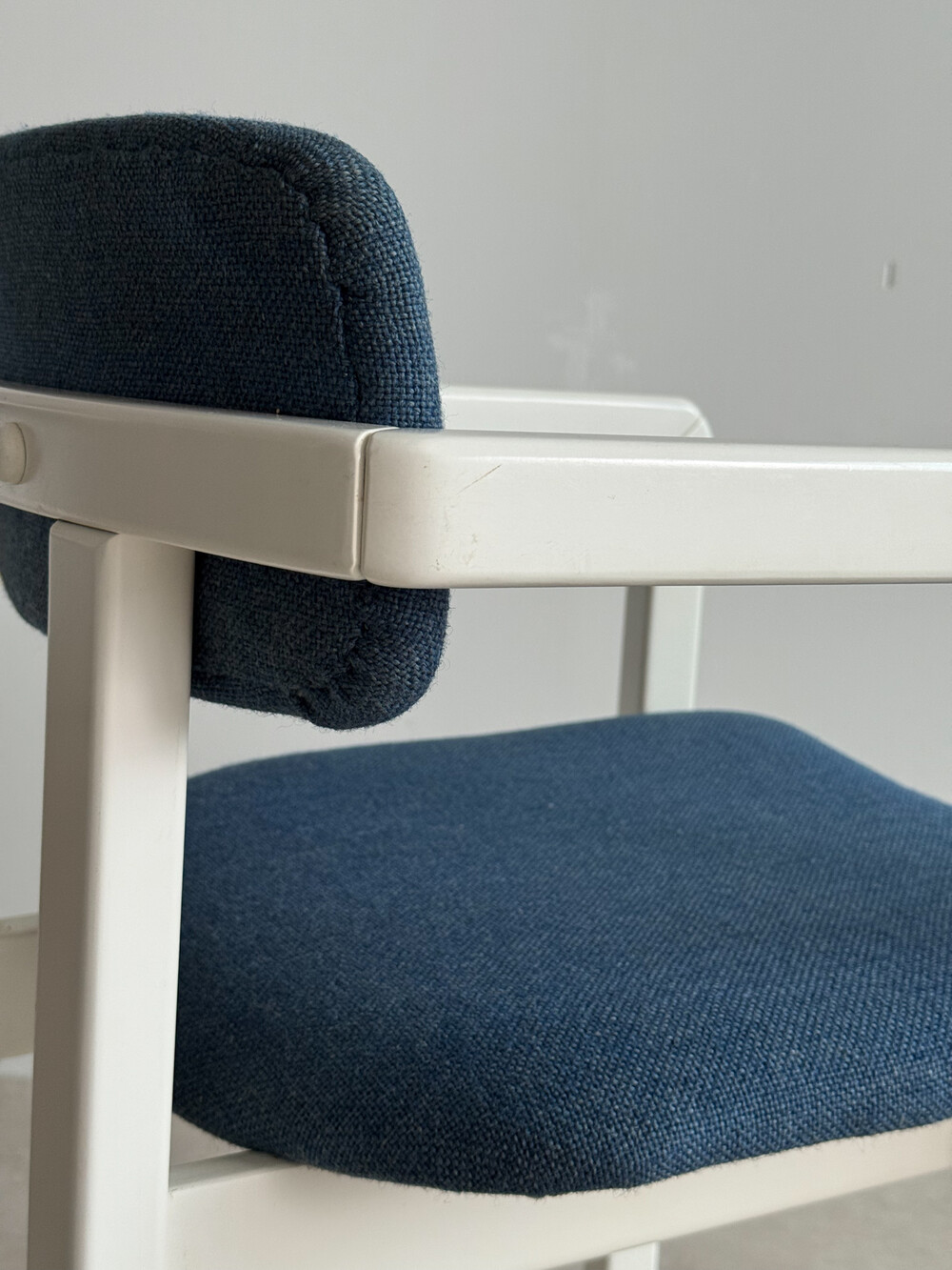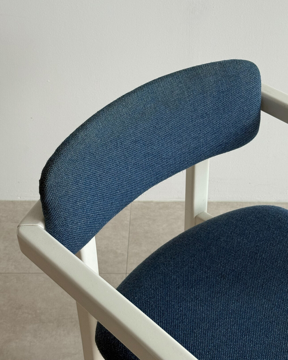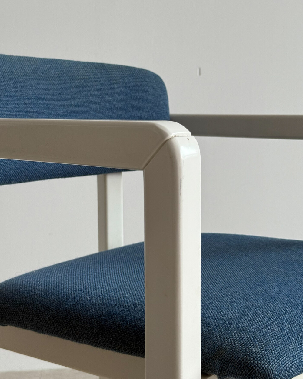 1970년대 네덜란드에서 제작된 빈티지 암체어입니다. 화이트 래커 마감의 목재 프레임과 블루 패브릭으로 이루어져 있습니다. 공간에 산뜻하면서도 차분한 포인트를 더해줍니다.