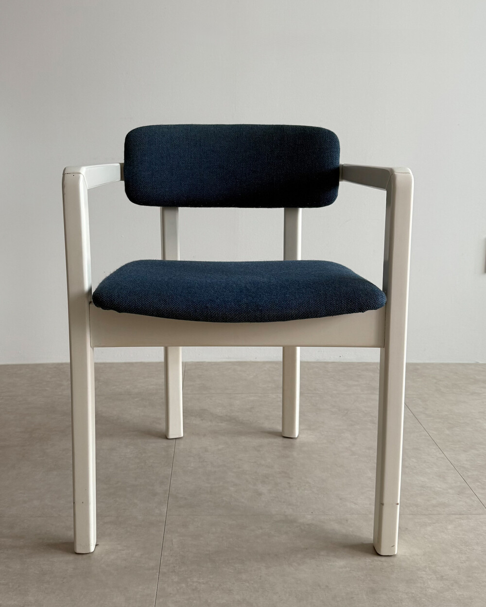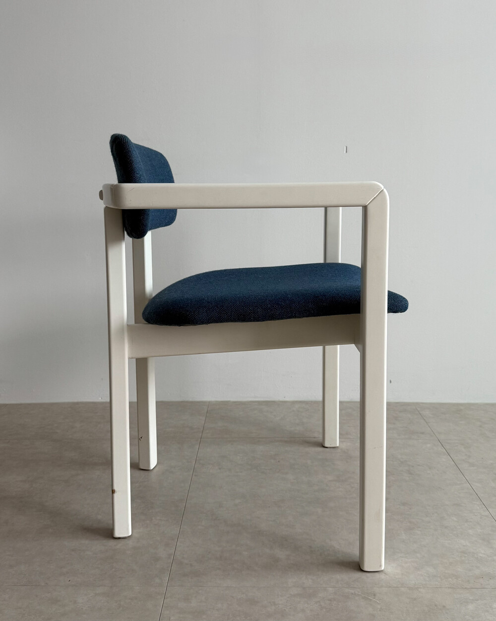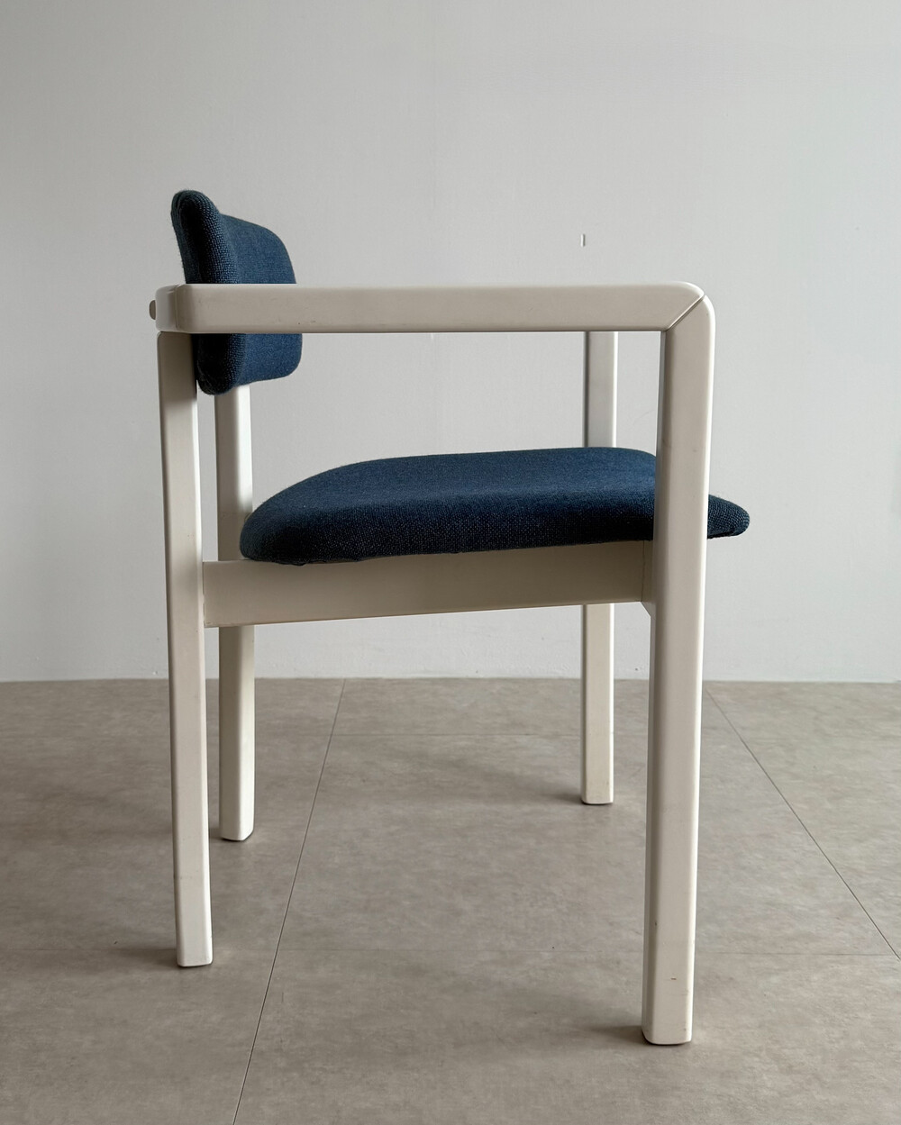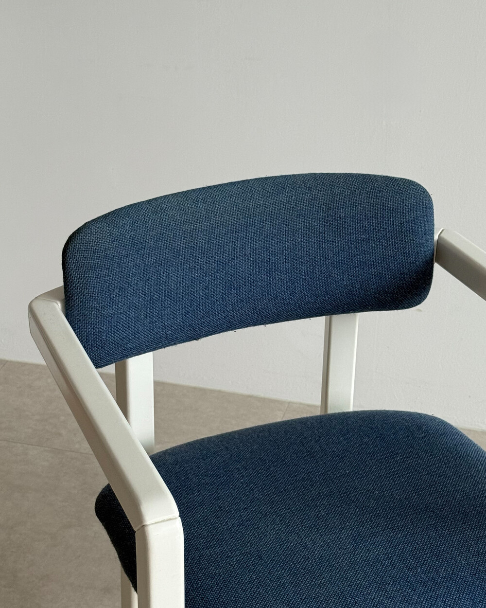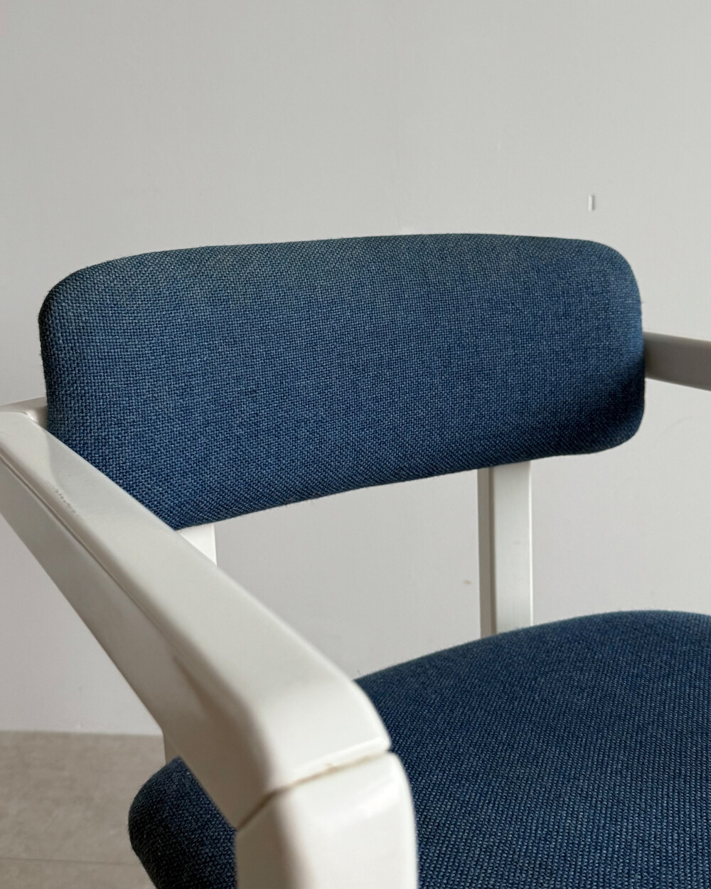 1970년대 네덜란드에서 제작된 빈티지 암체어입니다. 화이트 래커 마감의 목재 프레임과 블루 패브릭으로 이루어져 있습니다. 공간에 산뜻하면서도 차분한 포인트를 더해줍니다.