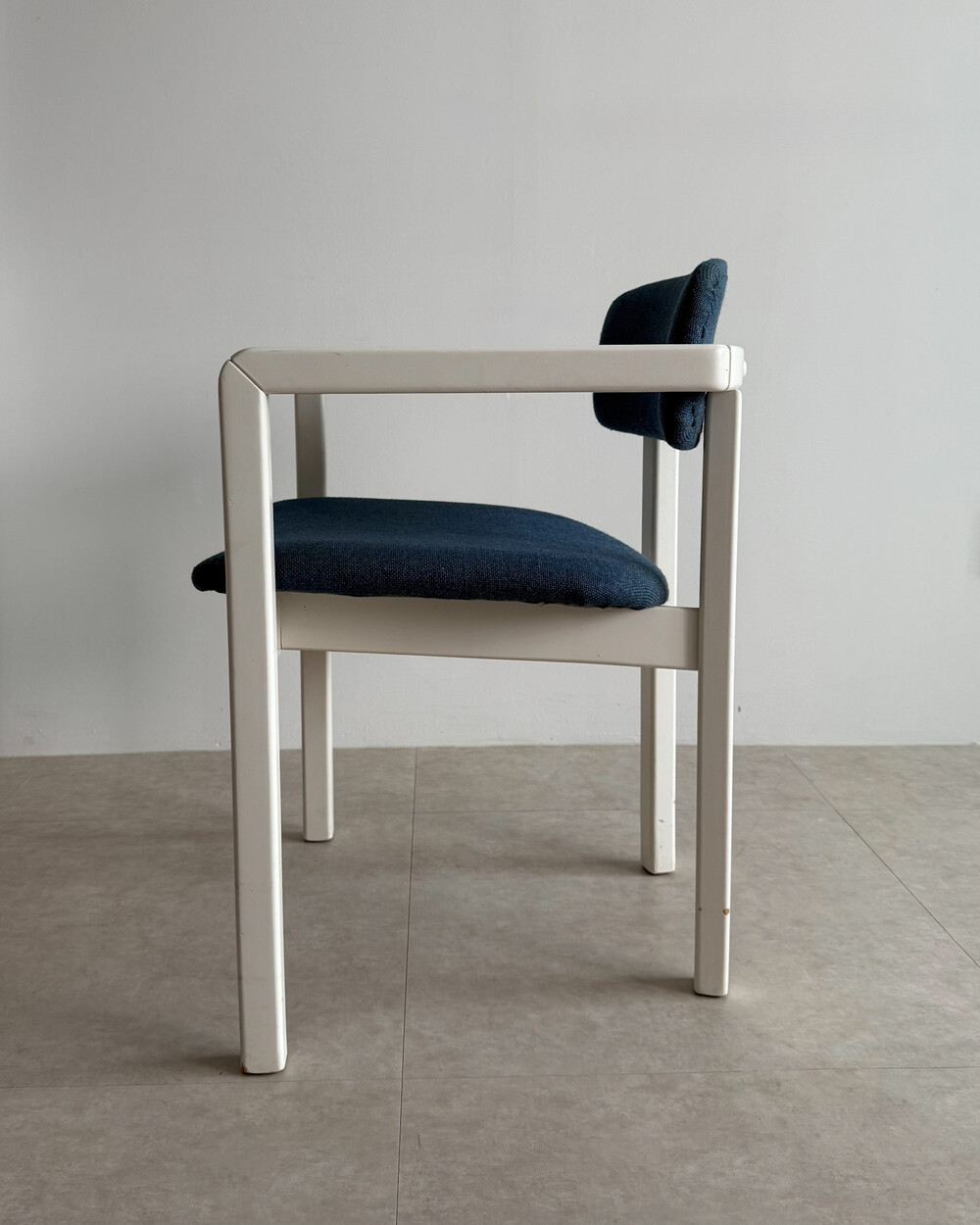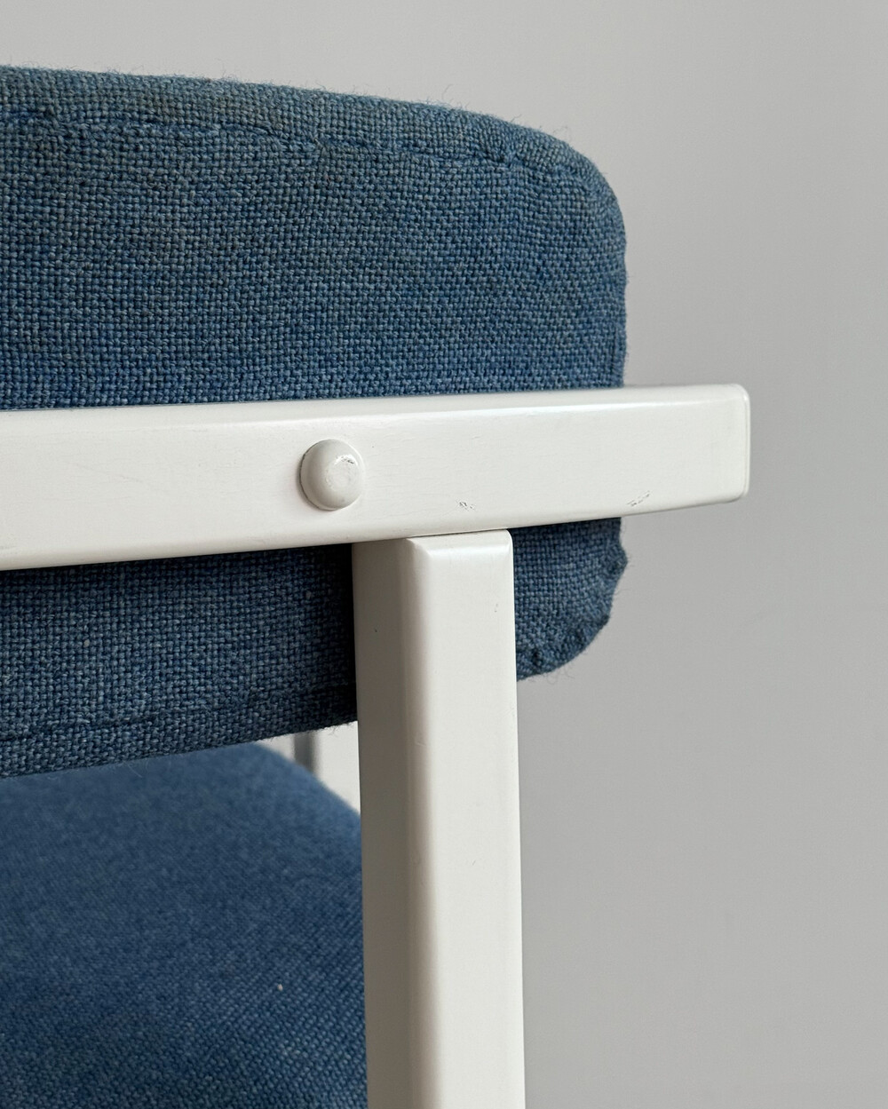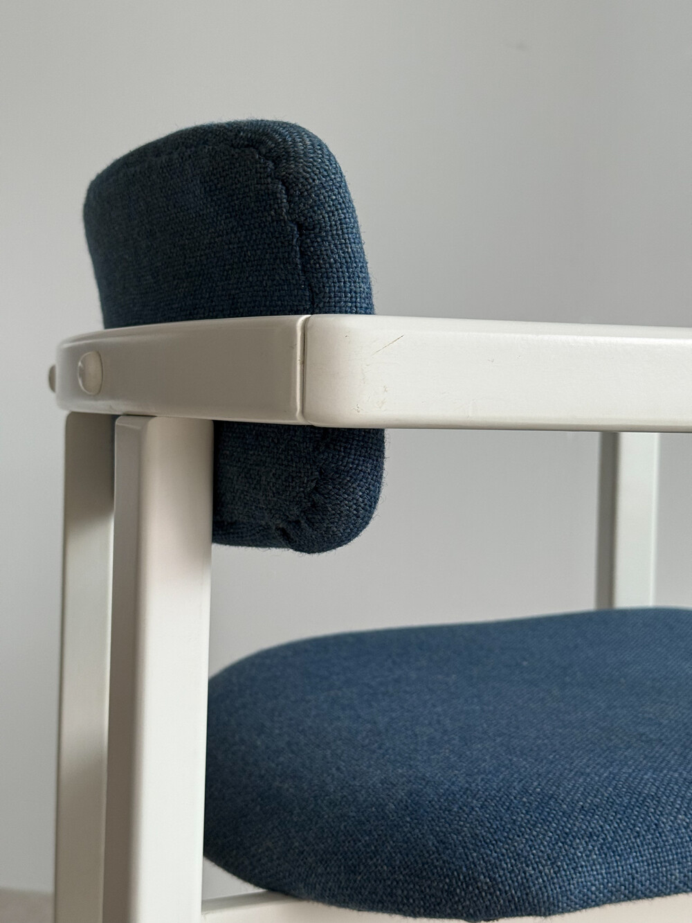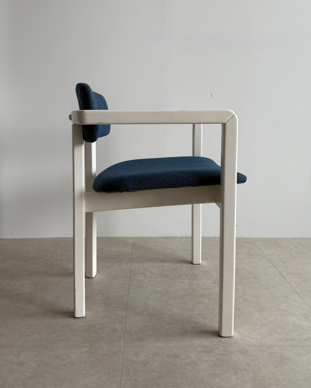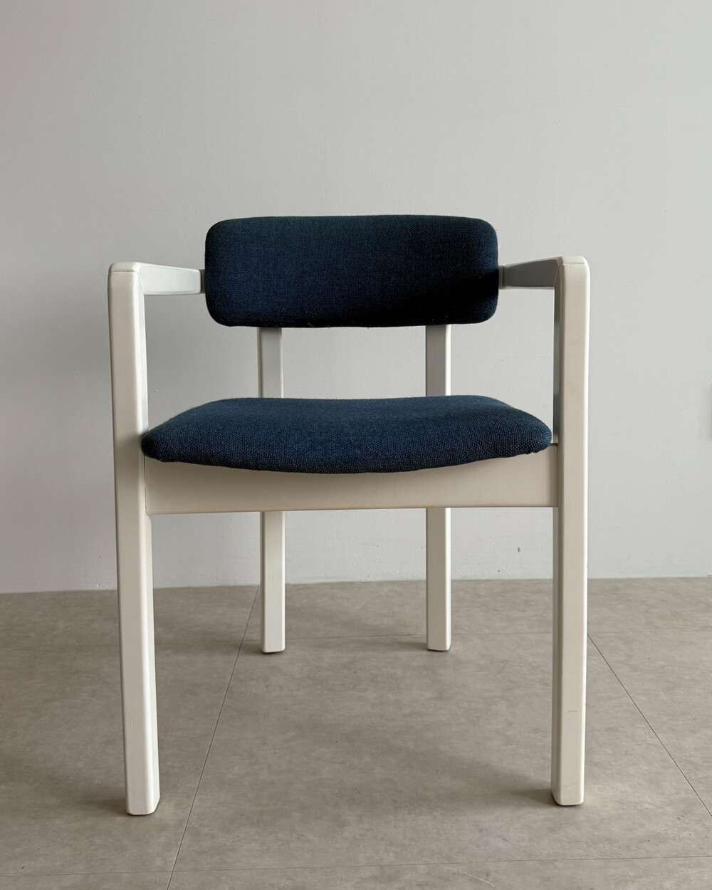 1970년대 네덜란드에서 제작된 빈티지 암체어입니다. 화이트 래커 마감의 목재 프레임과 블루 패브릭으로 이루어져 있습니다. 공간에 산뜻하면서도 차분한 포인트를 더해줍니다.