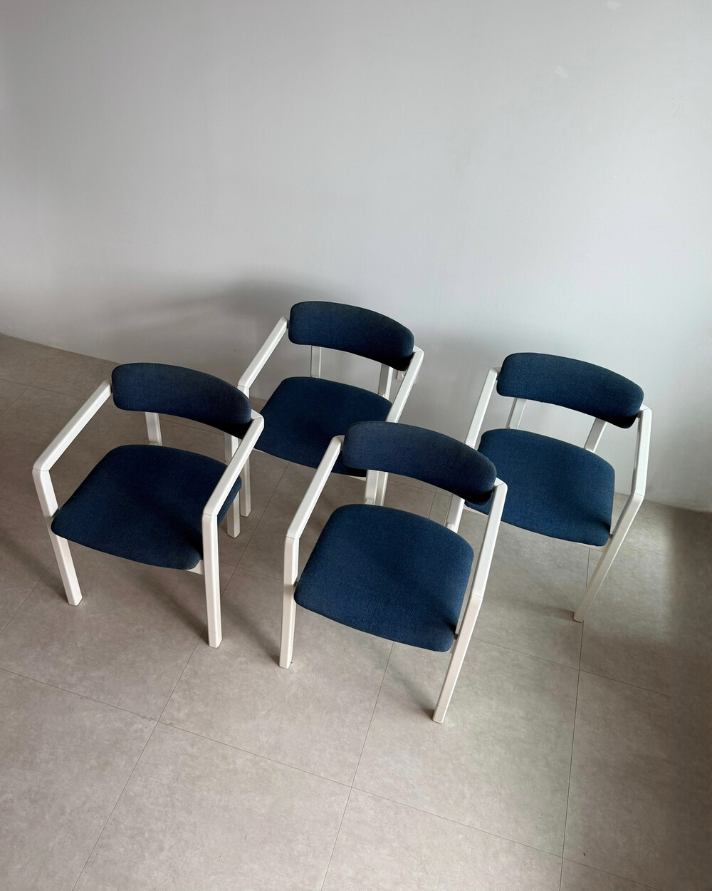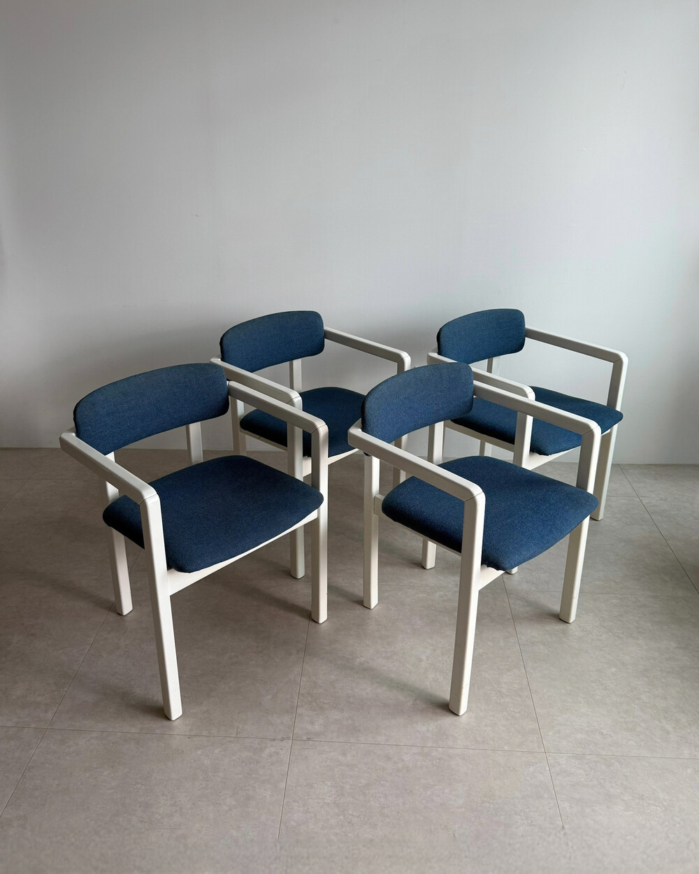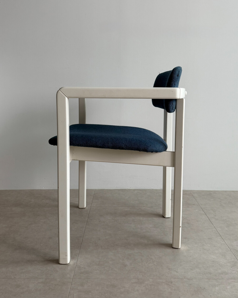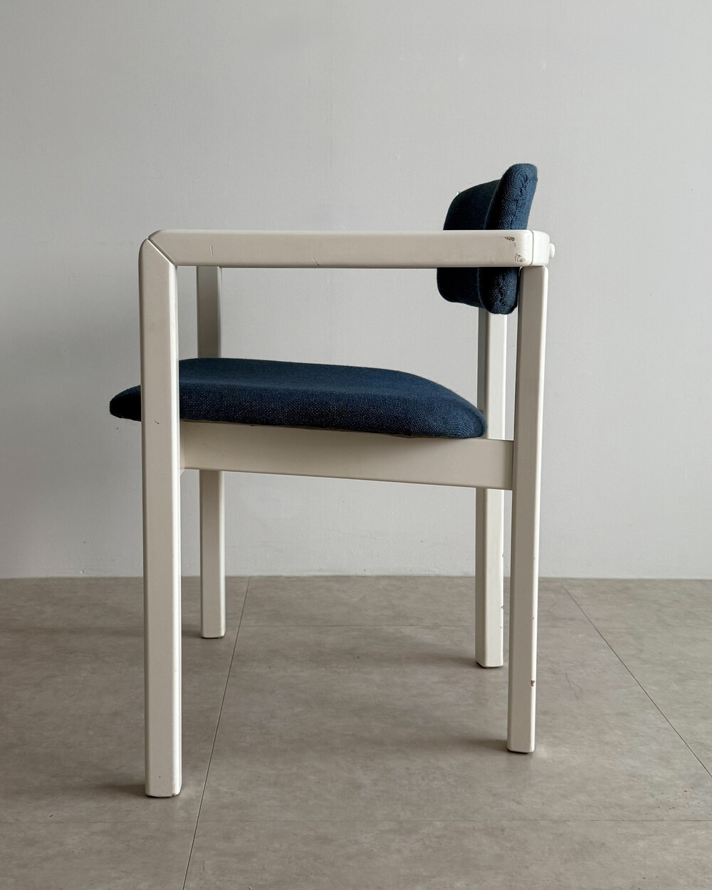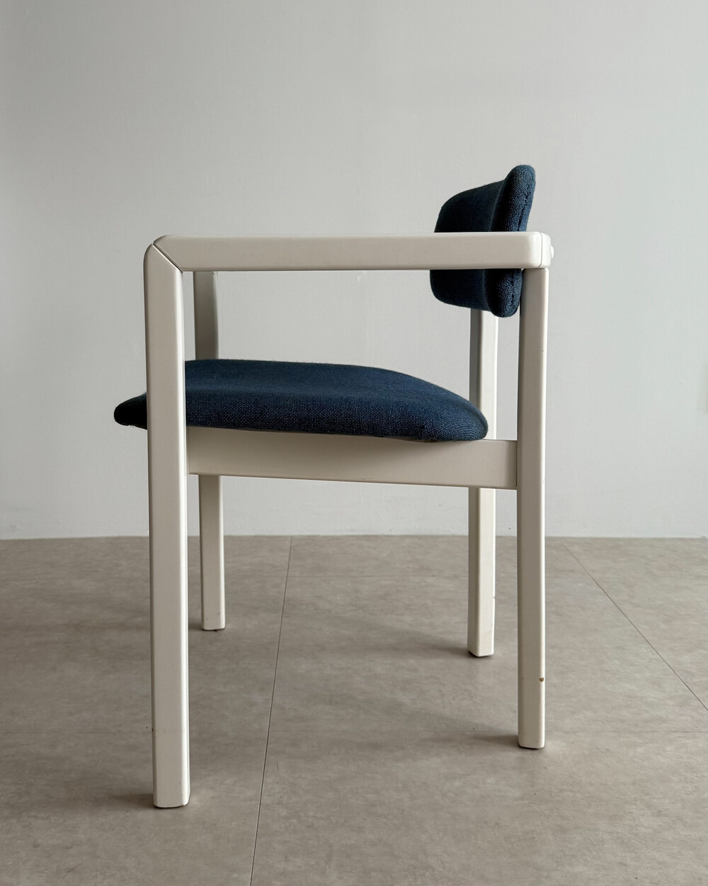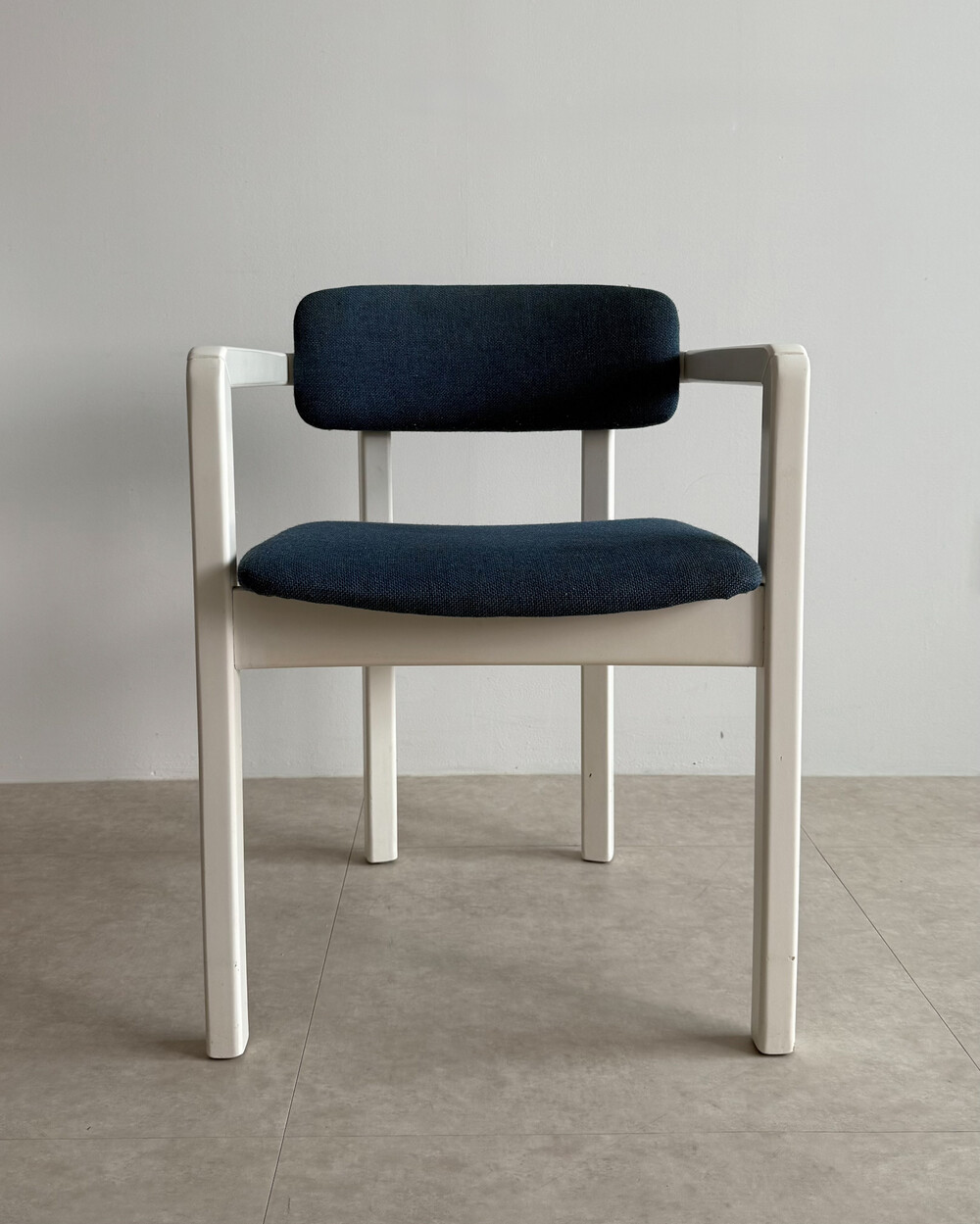 1970년대 네덜란드에서 제작된 빈티지 암체어입니다. 화이트 래커 마감의 목재 프레임과 블루 패브릭으로 이루어져 있습니다. 공간에 산뜻하면서도 차분한 포인트를 더해줍니다.