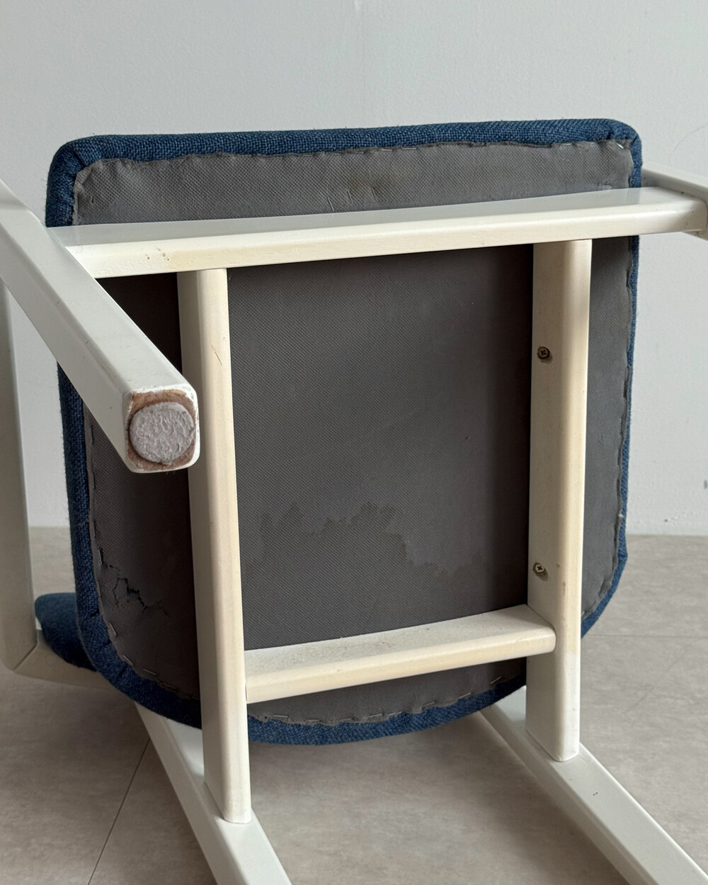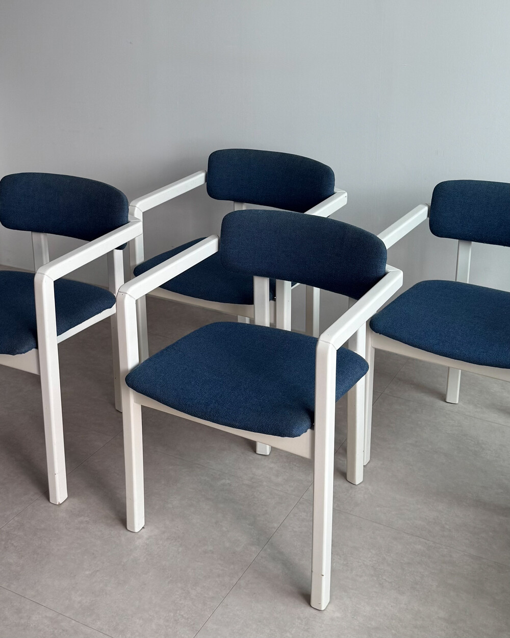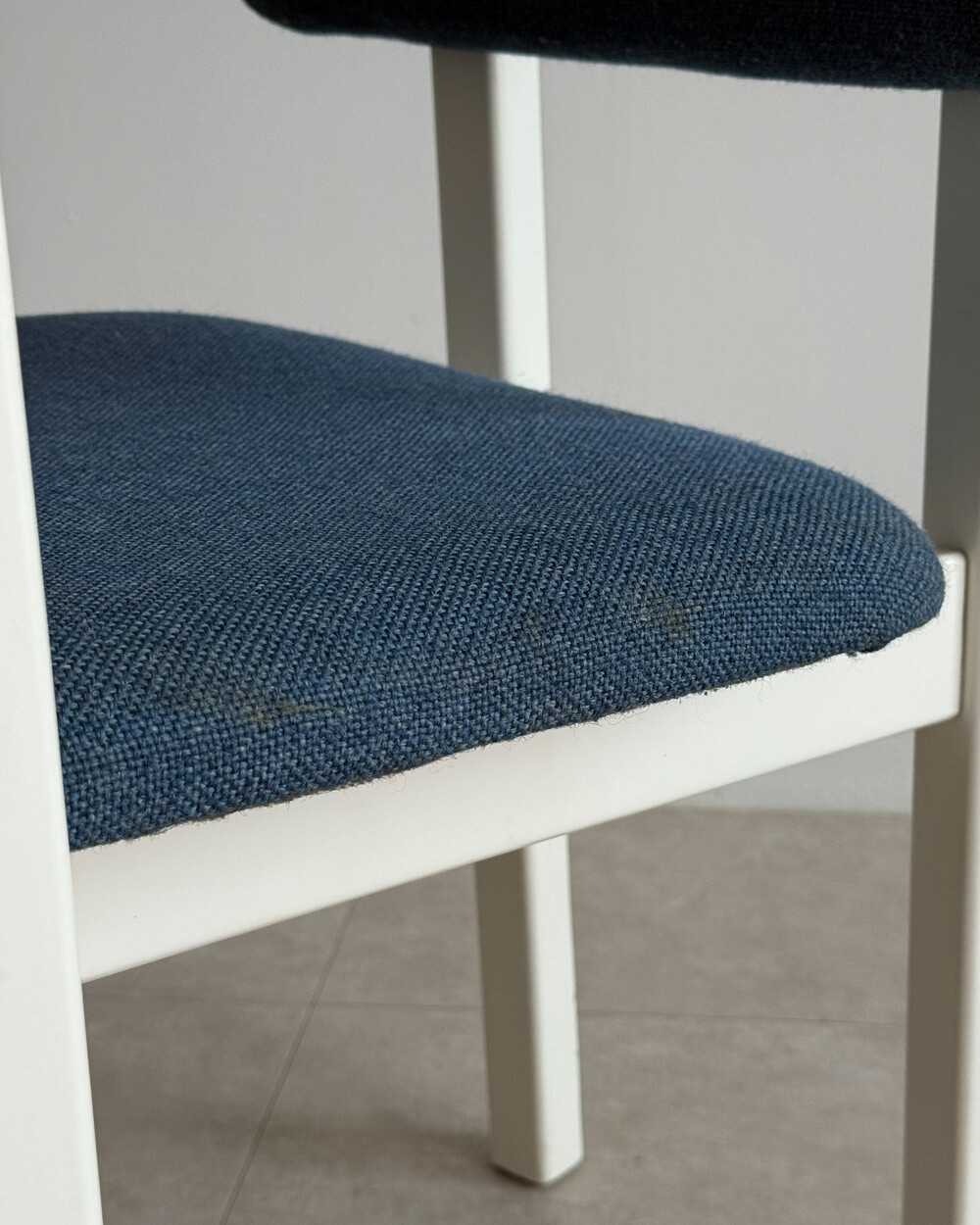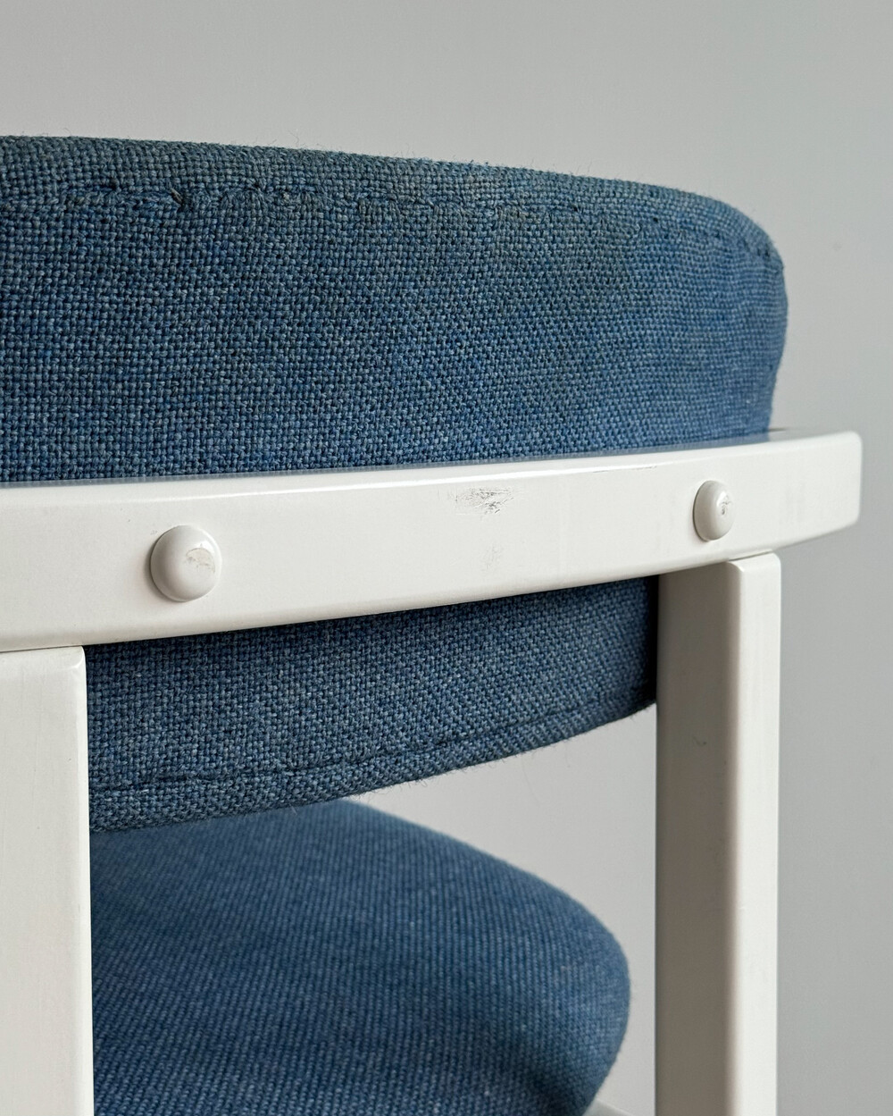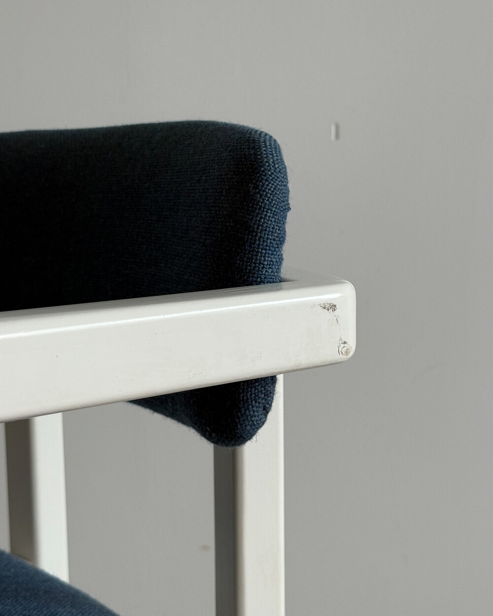1970년대 네덜란드에서 제작된 빈티지 암체어입니다. 화이트 래커 마감의 목재 프레임과 블루 패브릭으로 이루어져 있습니다. 공간에 산뜻하면서도 차분한 포인트를 더해줍니다.