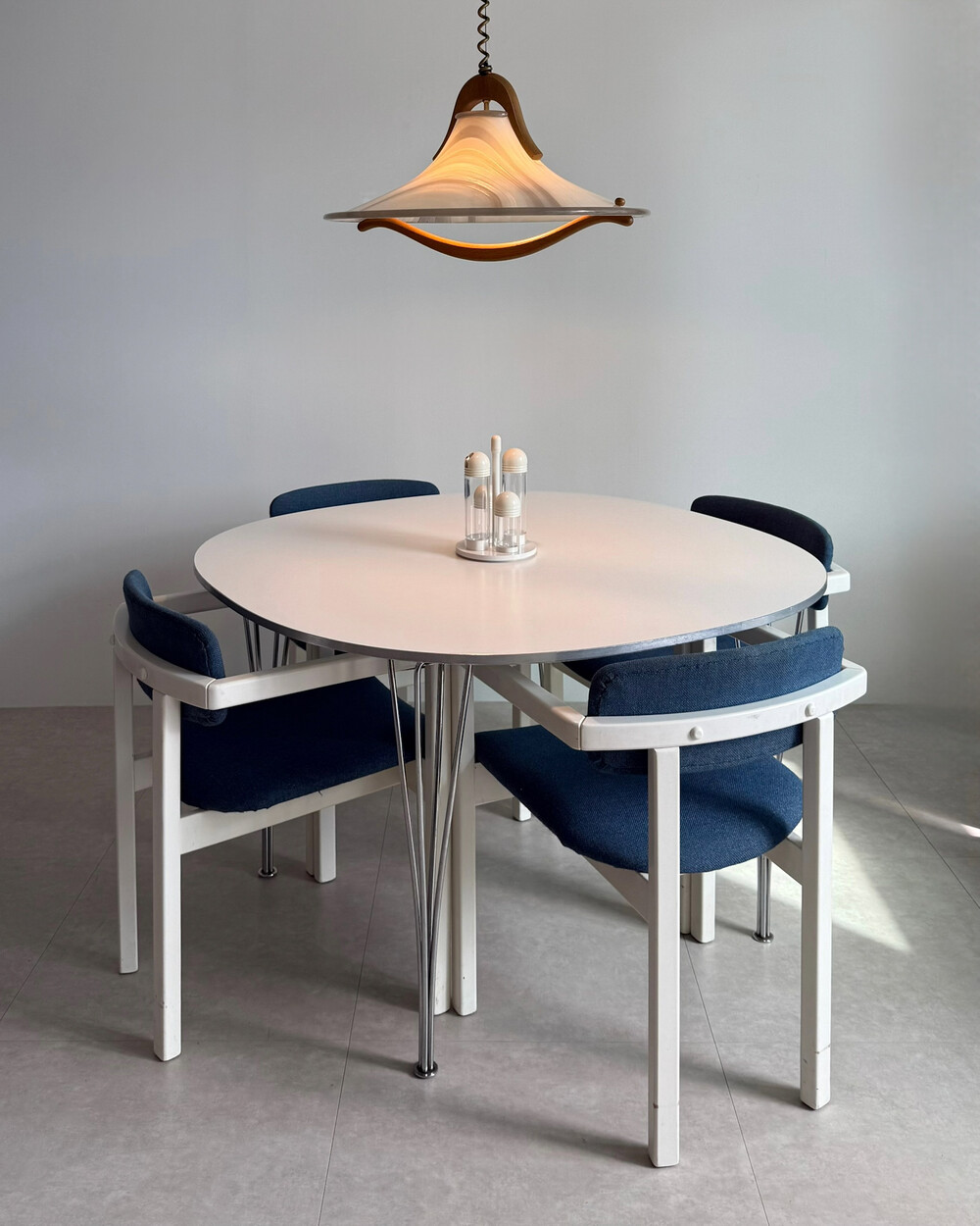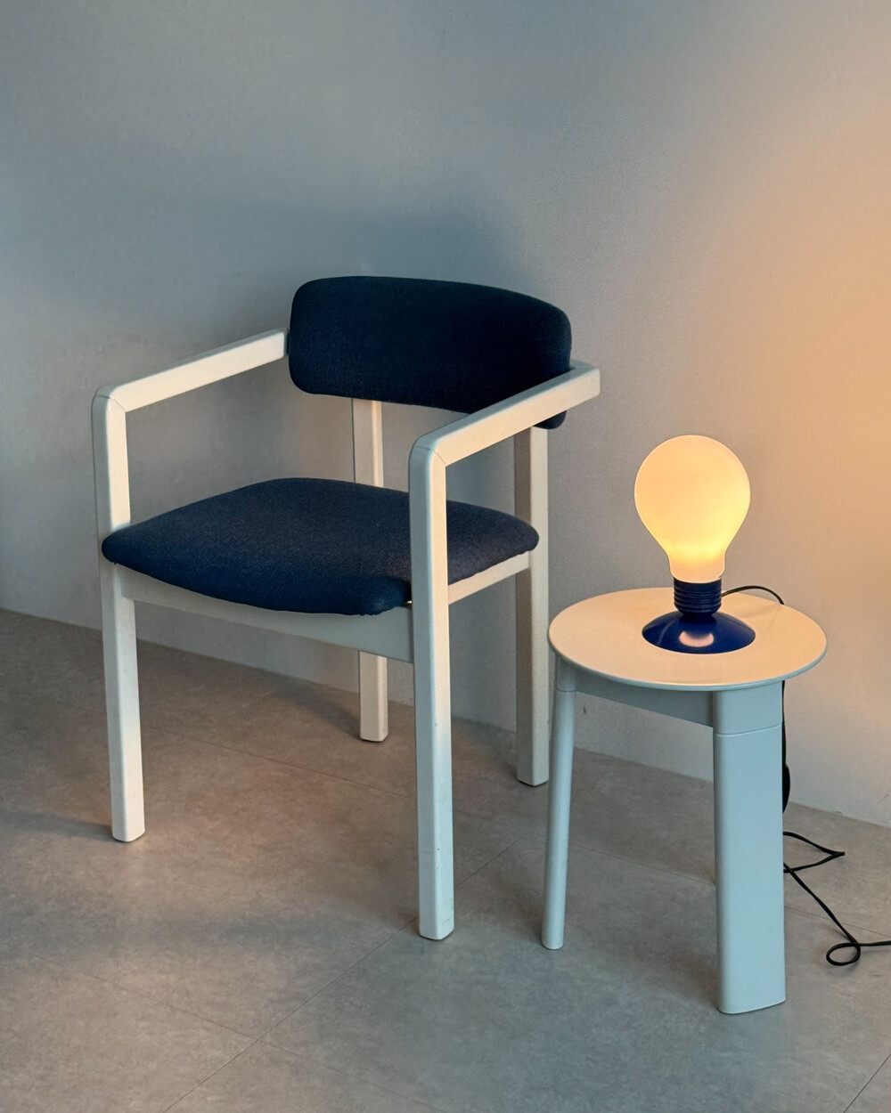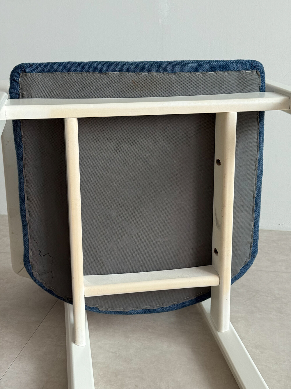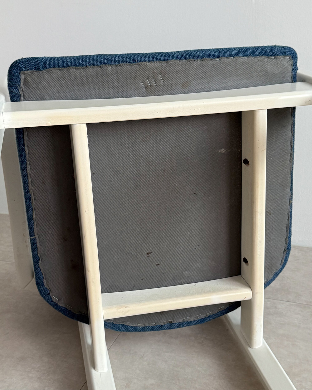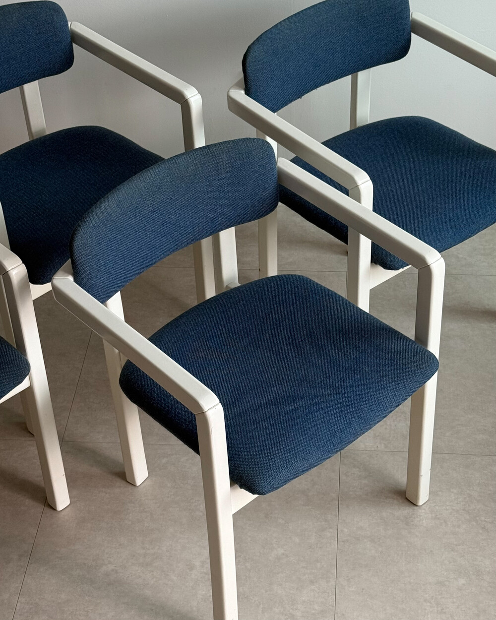 1970년대 네덜란드에서 제작된 빈티지 암체어입니다. 화이트 래커 마감의 목재 프레임과 블루 패브릭으로 이루어져 있습니다. 공간에 산뜻하면서도 차분한 포인트를 더해줍니다.