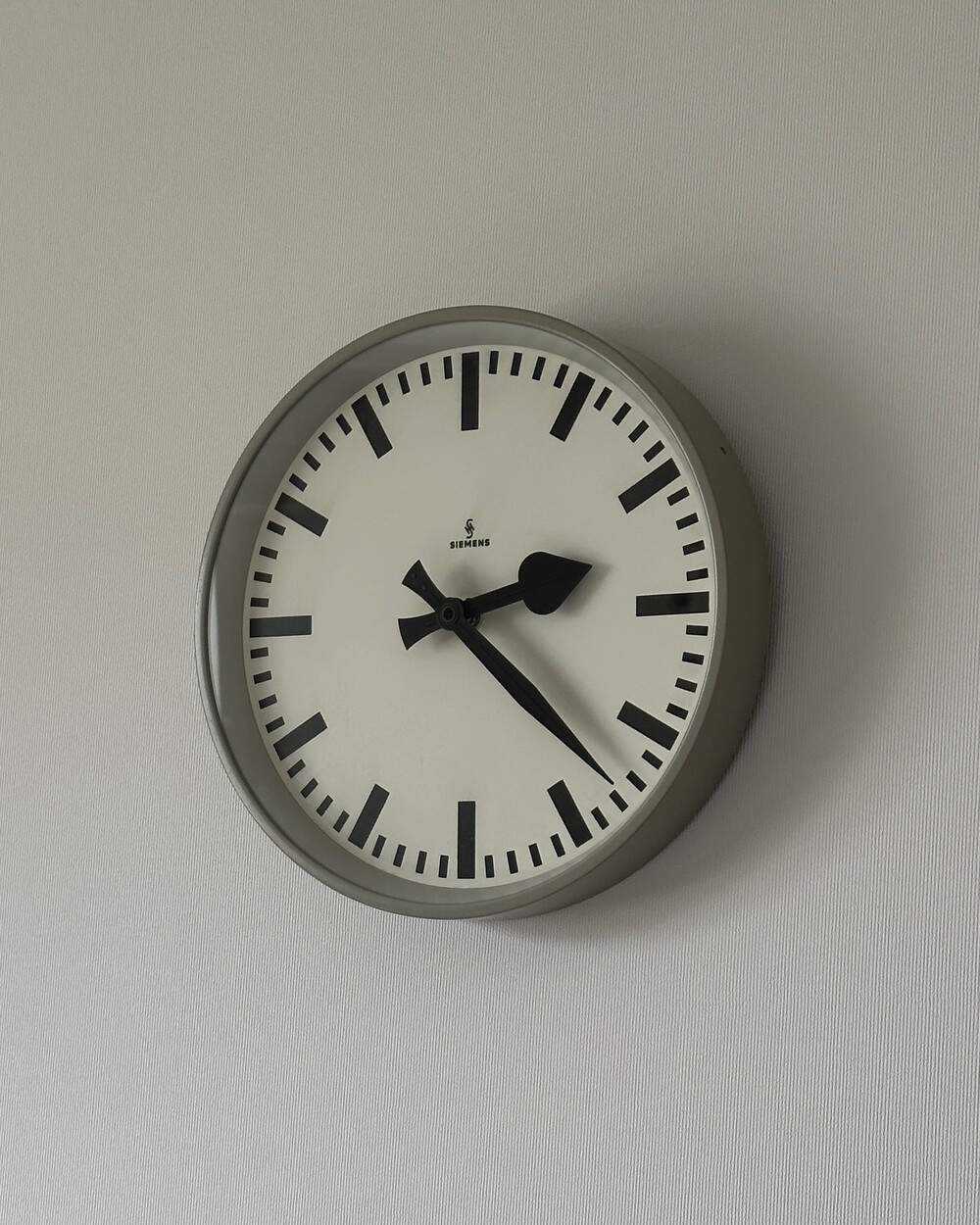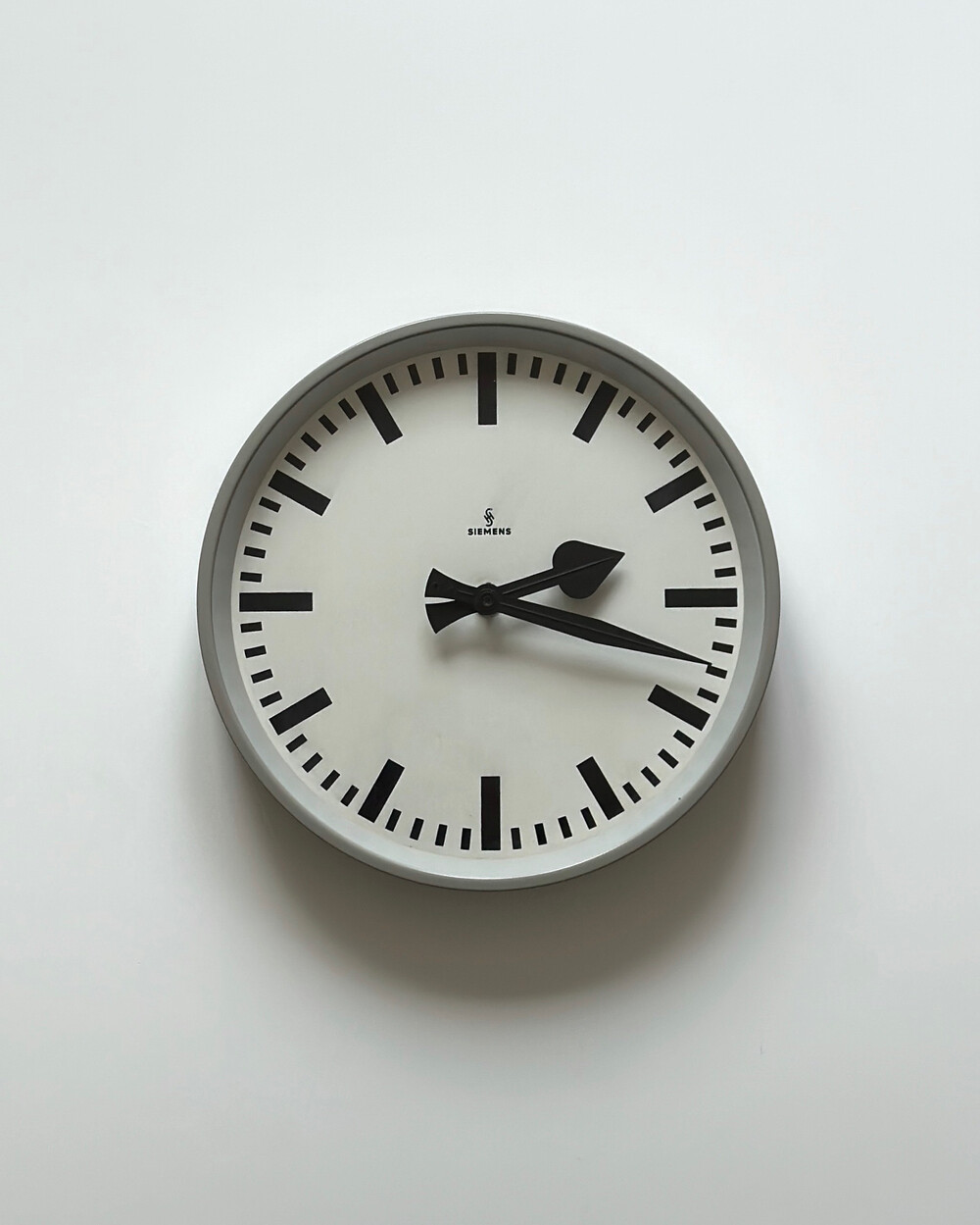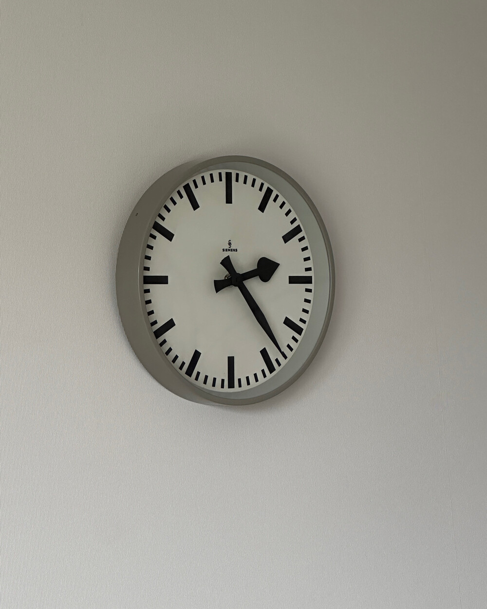 1950년도 디자인되었던 지멘스 사의 벽 시계입니다. 지멘스는 오랜 전통을 지닌 독일의 고급 전자기기 브랜드로, 현재까지도 다양한 제품들을 생산하고 있습니다. 지멘스의 벽시계는 영화 <화양연화> 에서 중요한 오브제로 사용되어 잘 알려져 있습니다. 시대를 잘 나타내는 클래식한 디자인으로 어느 공간에서도 자연스럽게 잘 어우러집니다.