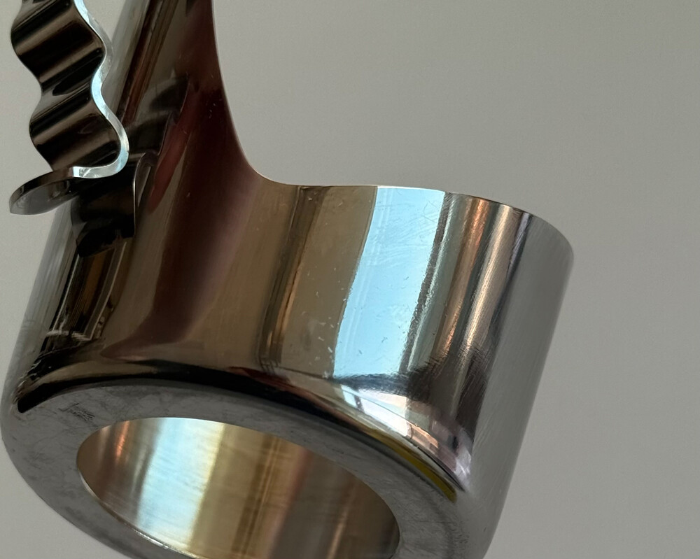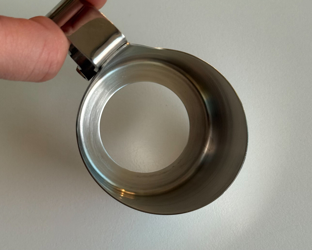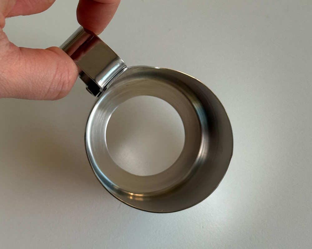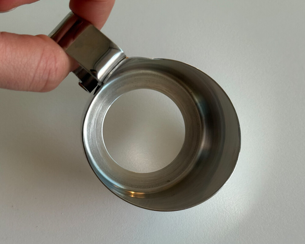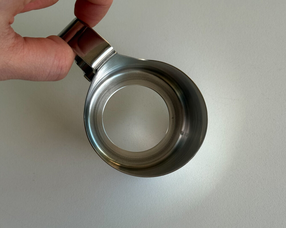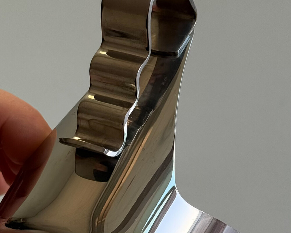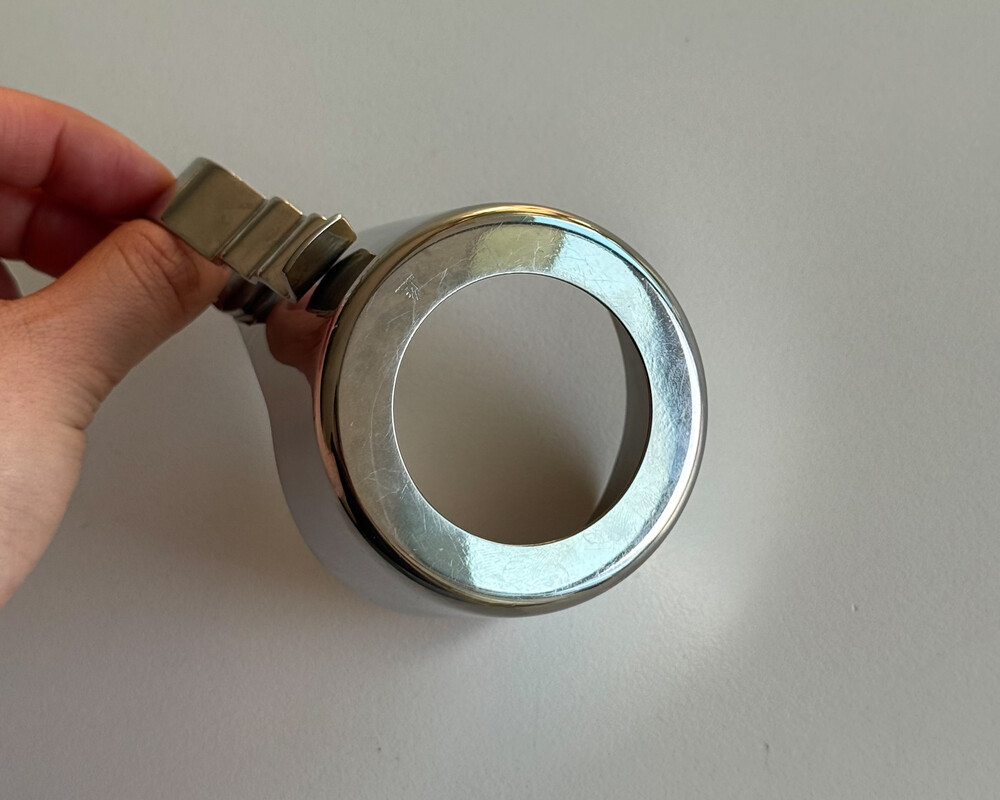 1970년대 독일 WMF에서 제작된 Cromargan 티 글라스 세트입니다. 내열(Feuerfest) 유리 컵과 크로마간 스테인리스 홀더가 결합된 구조로, 컵은 분리 가능하며 실사용과 관리가 용이합니다. 꼬임 형태의 핸들이 특징인 고급스러운 디자인입니다.