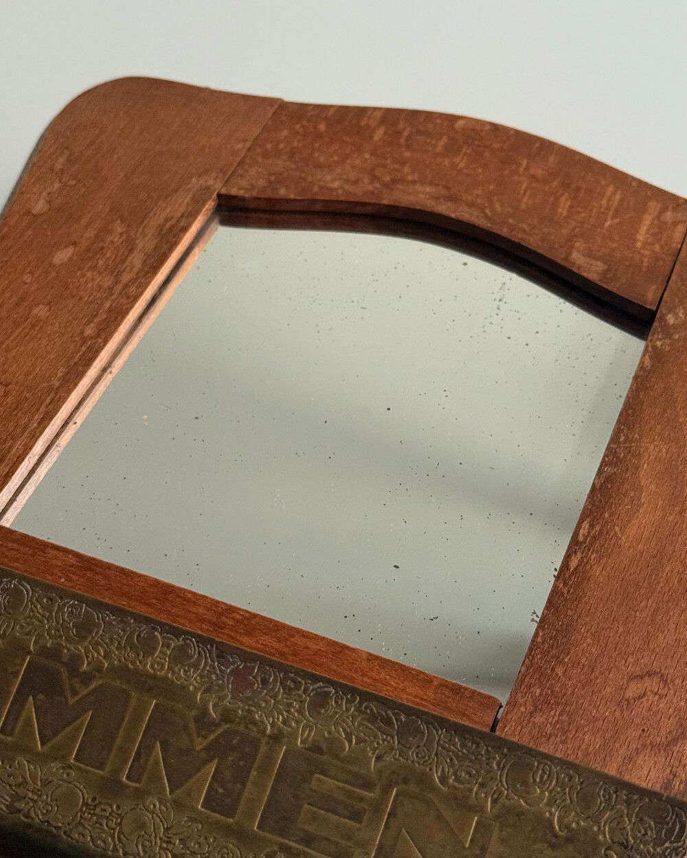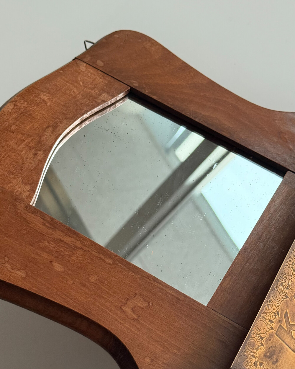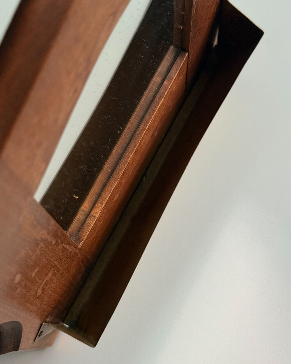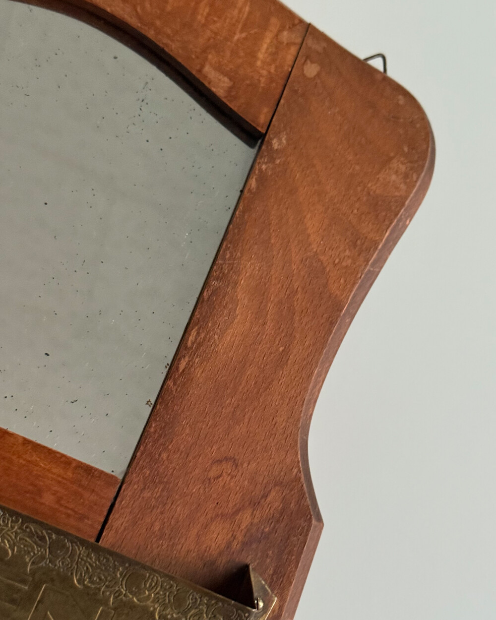 60s Wooden Wall Mirror with Brass Holder