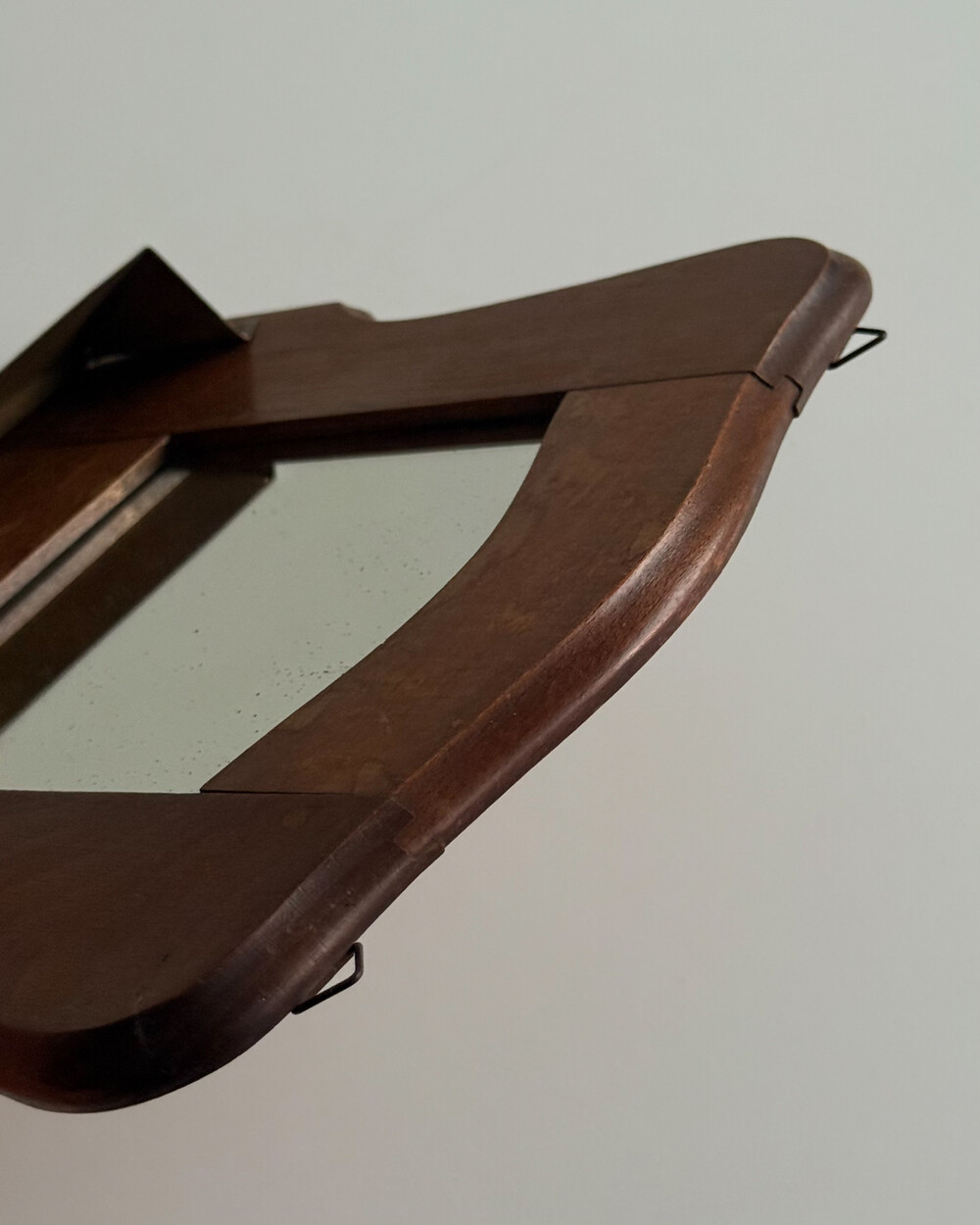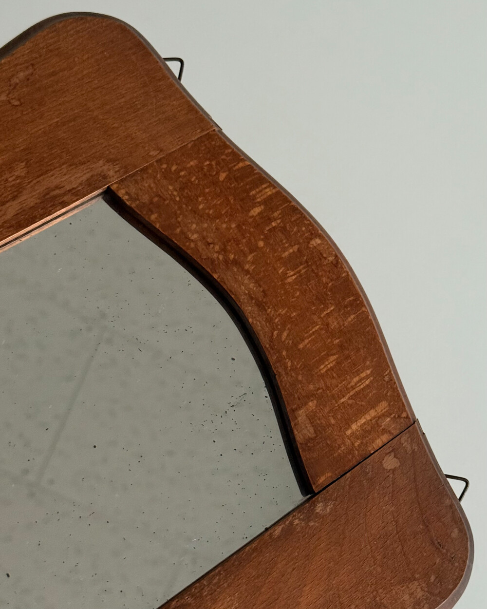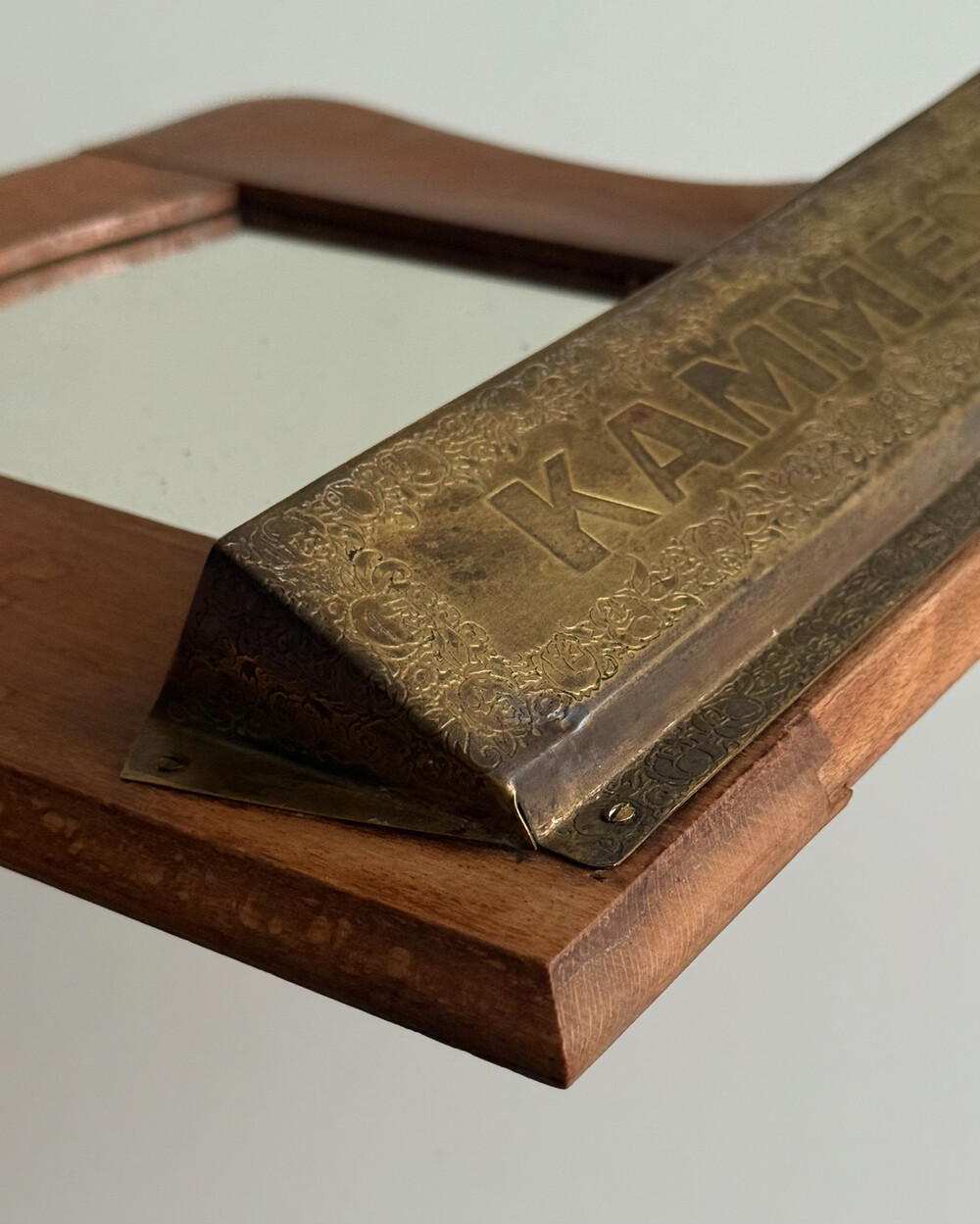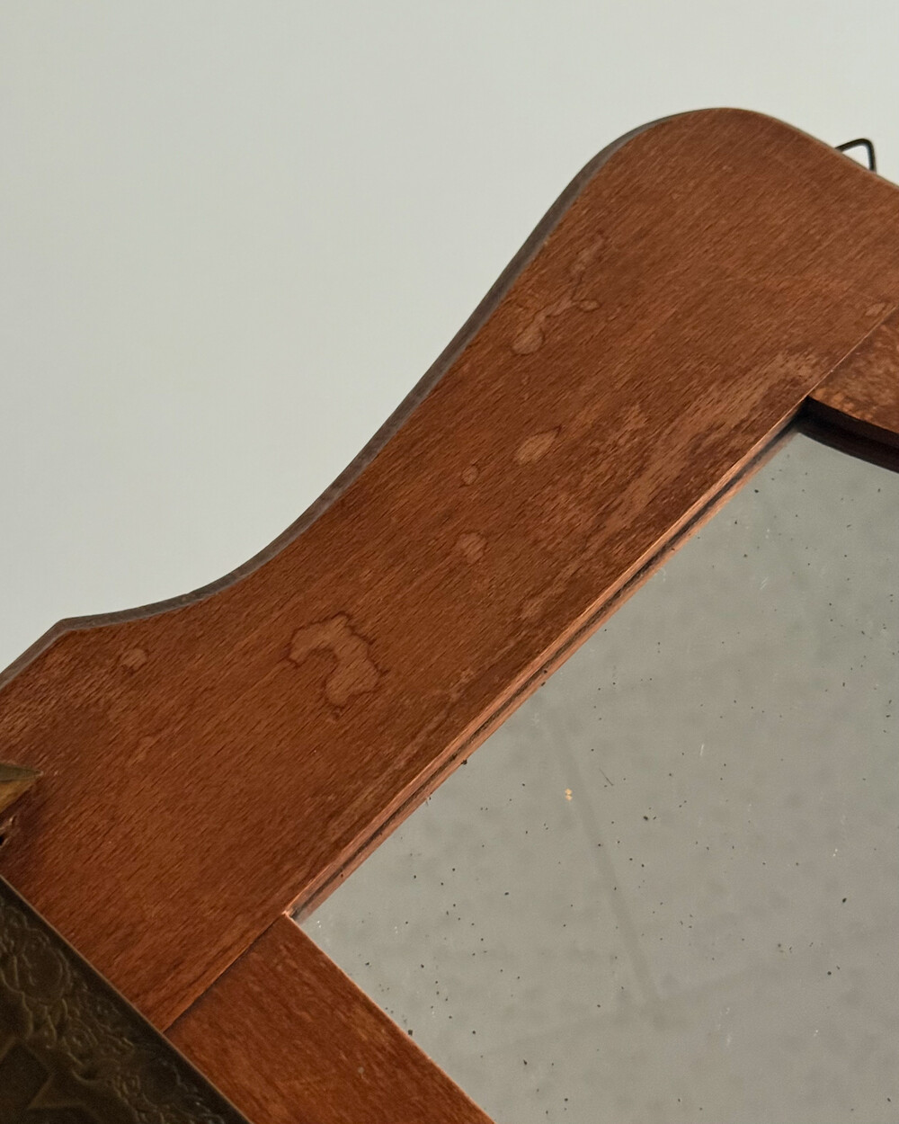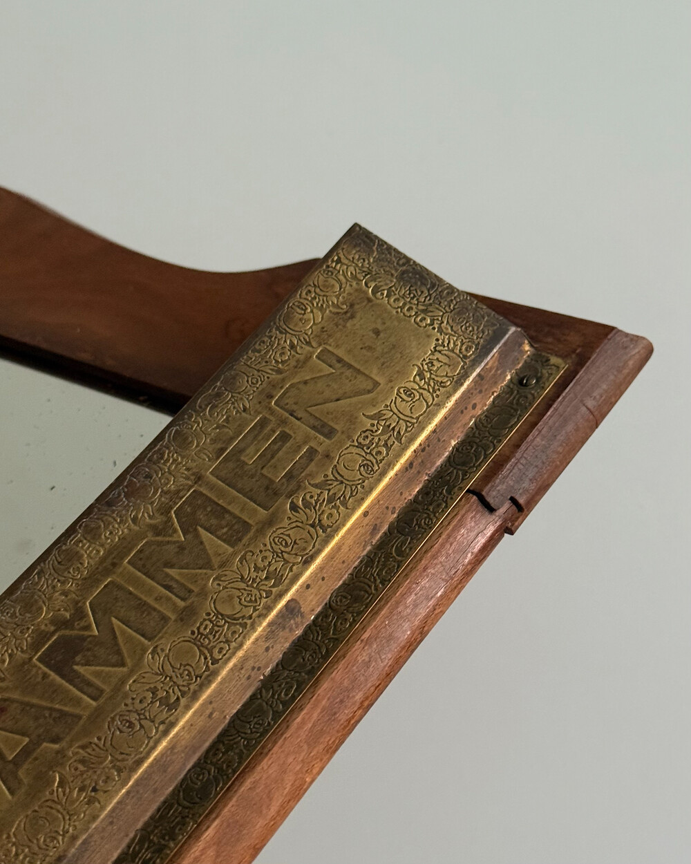 60s Wooden Wall Mirror with Brass Holder