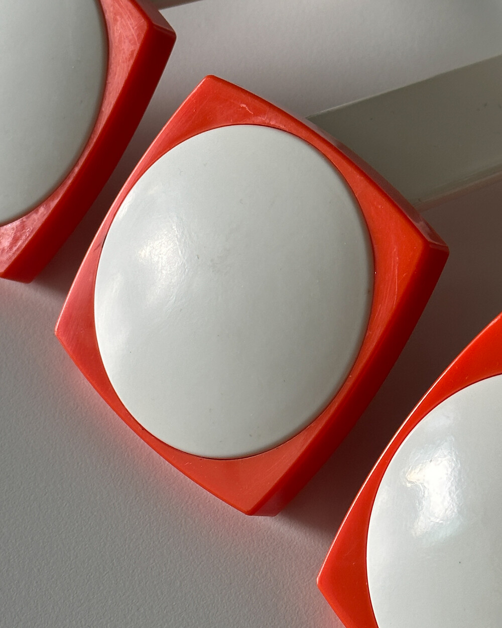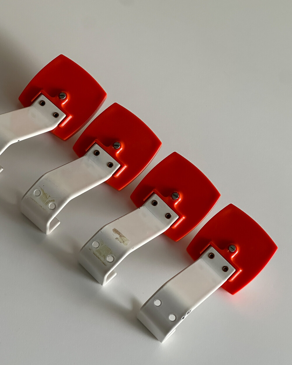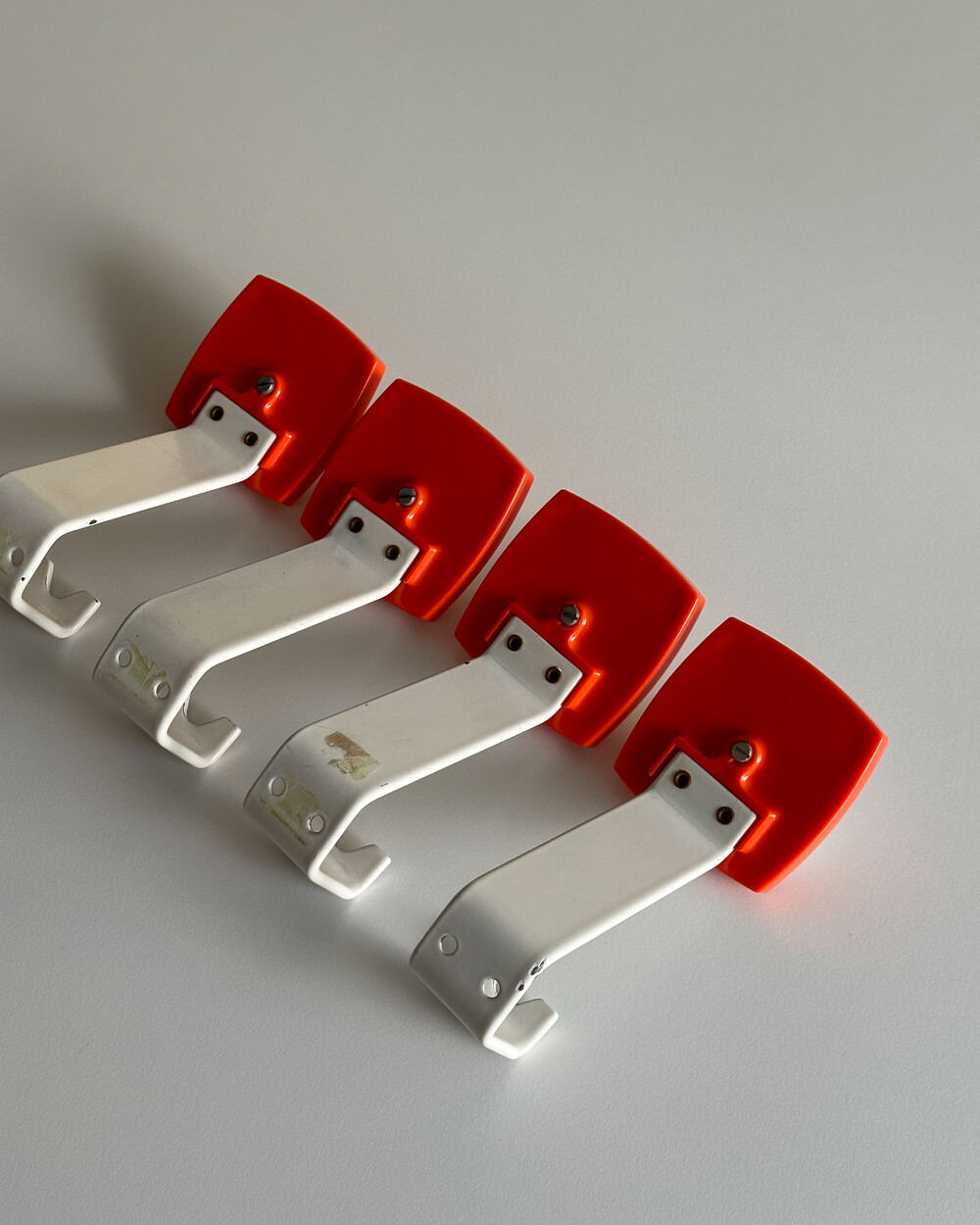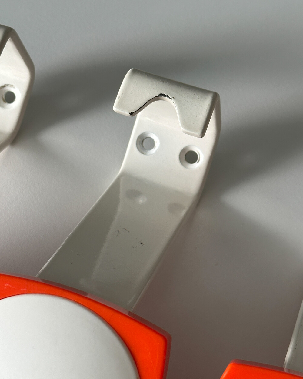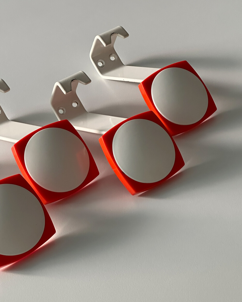 독일 빈티지 벽걸이 후크 세트입니다. 오렌지 컬러가 포인트가 되는 귀여운 디자인으로, 묵직한 메탈 소재로 이루어져 있습니다. 4개 세트로 판매되며, 후크를 배치하는 위치에 따라 다양한 연출이 가능합니다.
