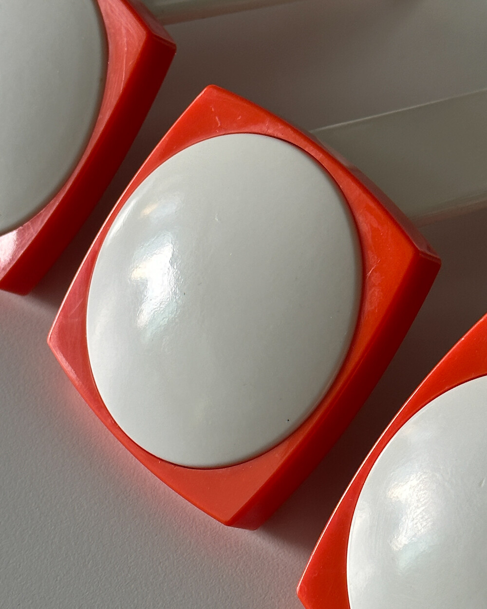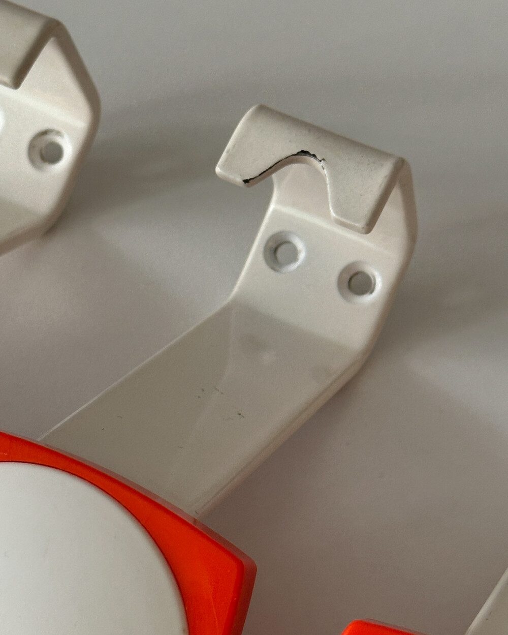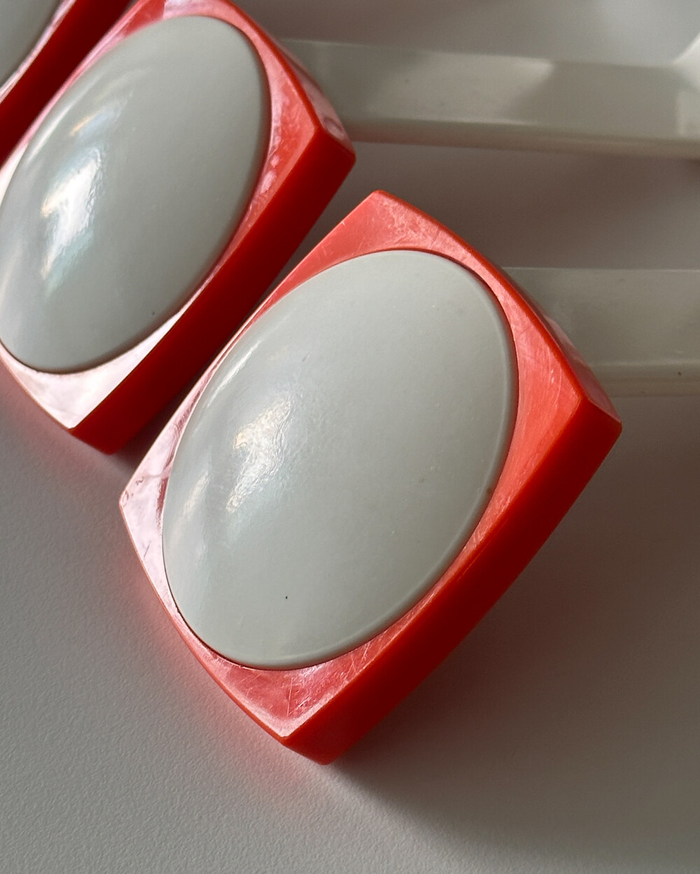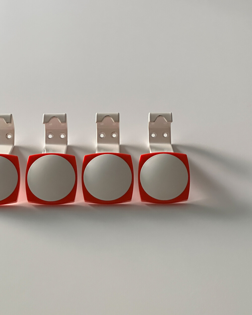 독일 빈티지 벽걸이 후크 세트입니다. 오렌지 컬러가 포인트가 되는 귀여운 디자인으로, 묵직한 메탈 소재로 이루어져 있습니다. 4개 세트로 판매되며, 후크를 배치하는 위치에 따라 다양한 연출이 가능합니다.
