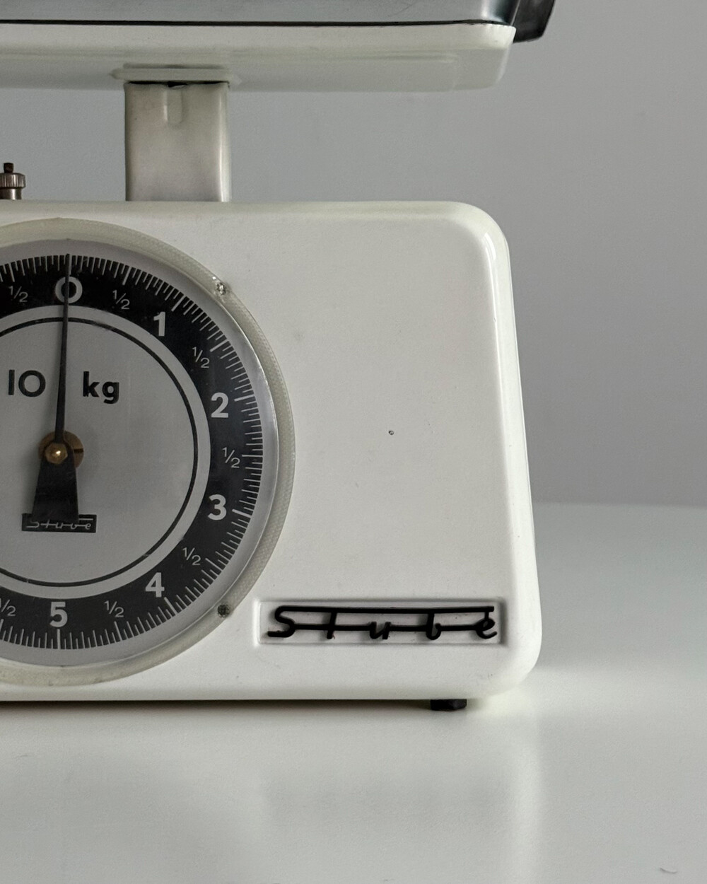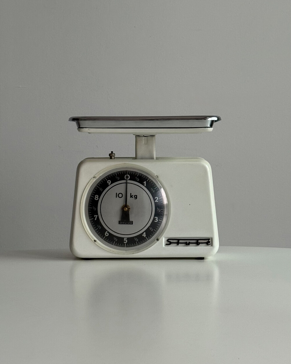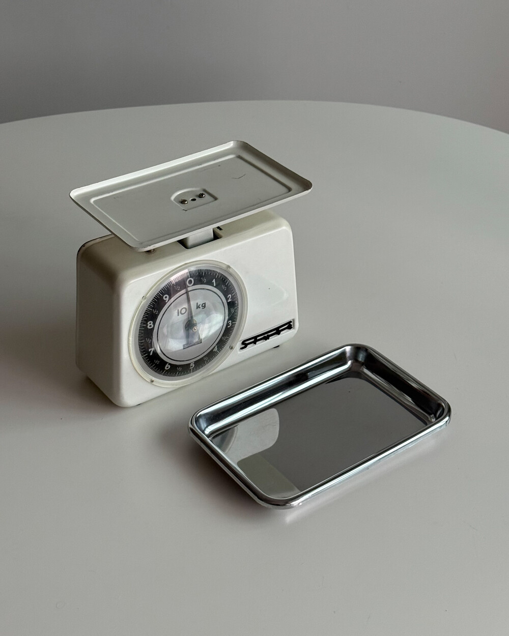 1970년대 서독에서 생산되었던 STUBE의 탁상용 주방 저울입니다. 최대 10kg까지 측정이 가능한 넉넉한 사이즈로 이루어져 있습니다. 베이지 메탈 베이스의 매력적인 디자인으로, 저울뿐만 아니라 포인트 소품으로 사용하시기에도 좋습니다.