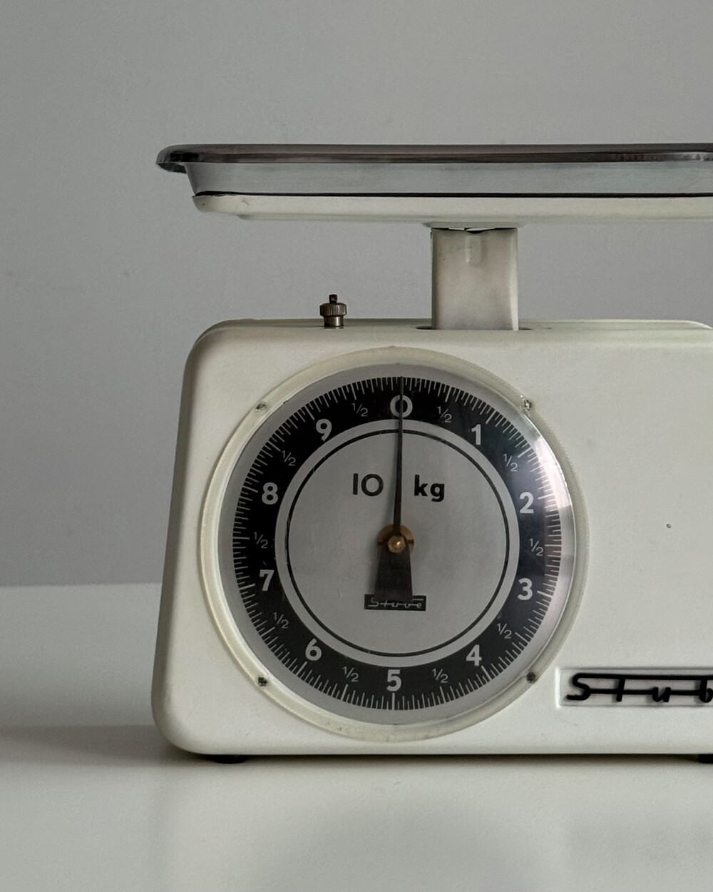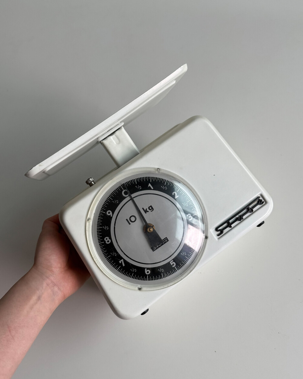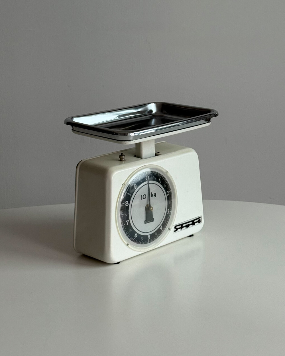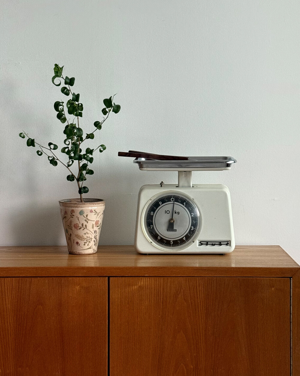 1970년대 서독에서 생산되었던 STUBE의 탁상용 주방 저울입니다. 최대 10kg까지 측정이 가능한 넉넉한 사이즈로 이루어져 있습니다. 베이지 메탈 베이스의 매력적인 디자인으로, 저울뿐만 아니라 포인트 소품으로 사용하시기에도 좋습니다.