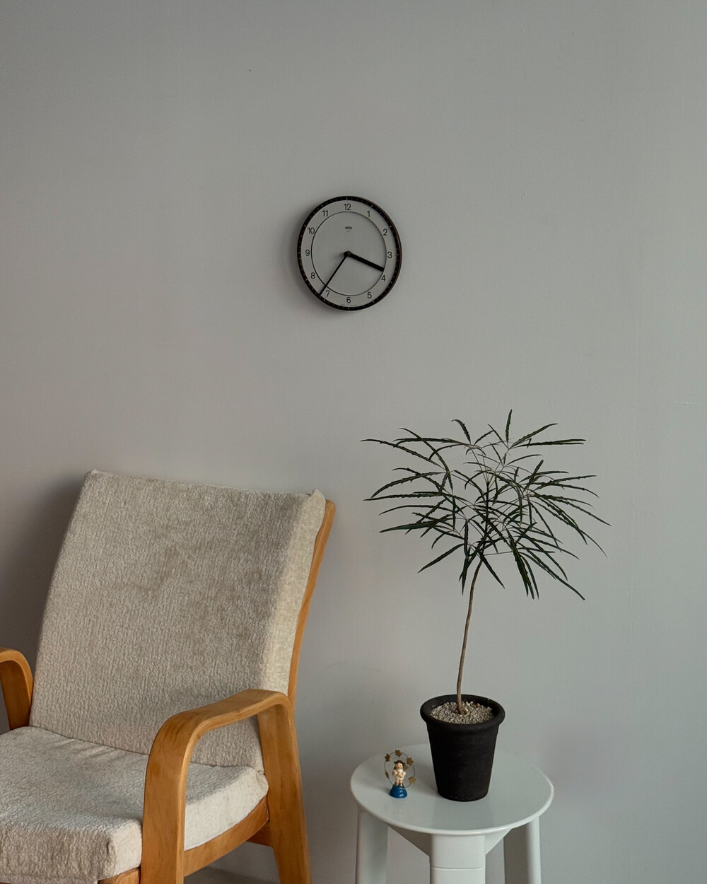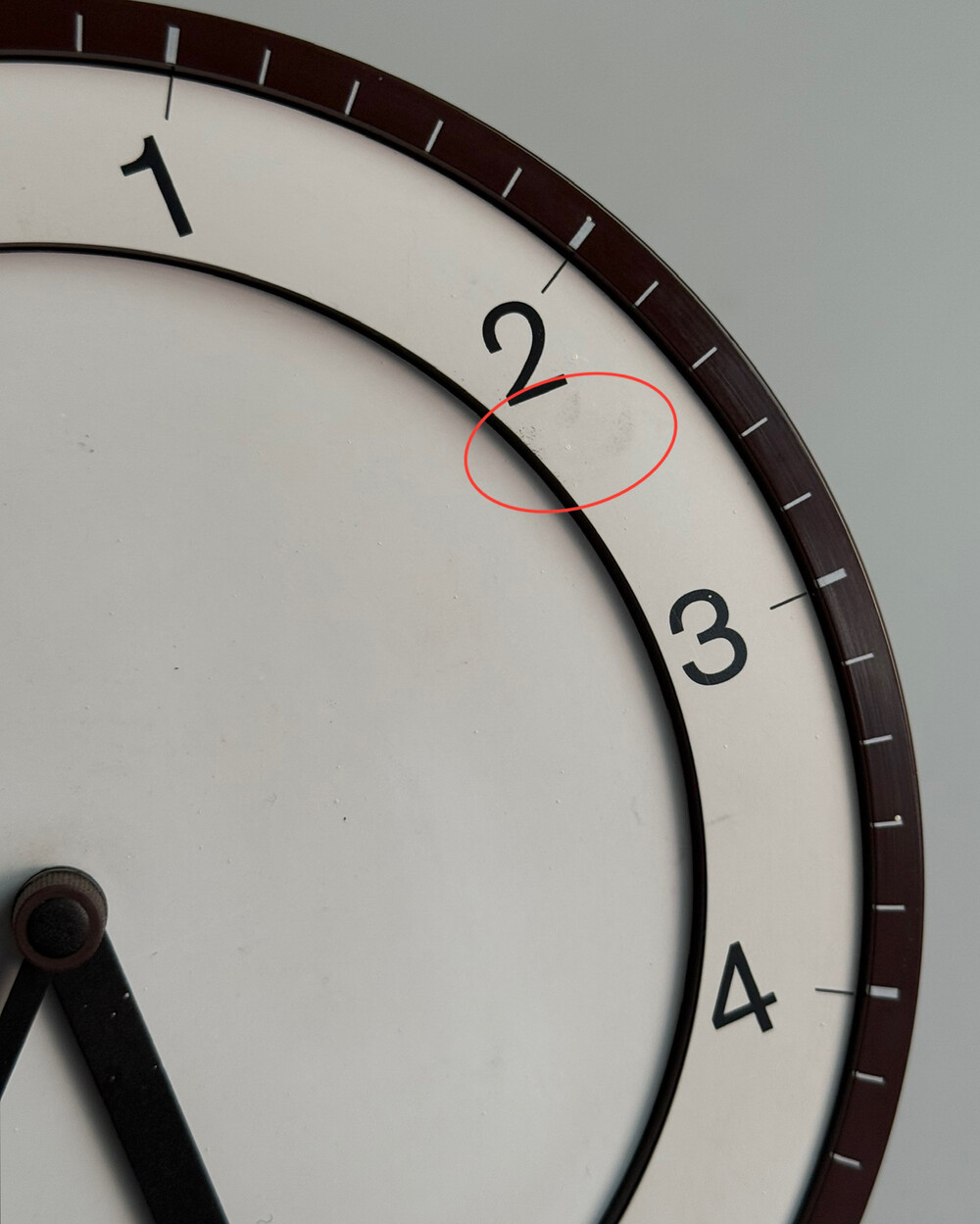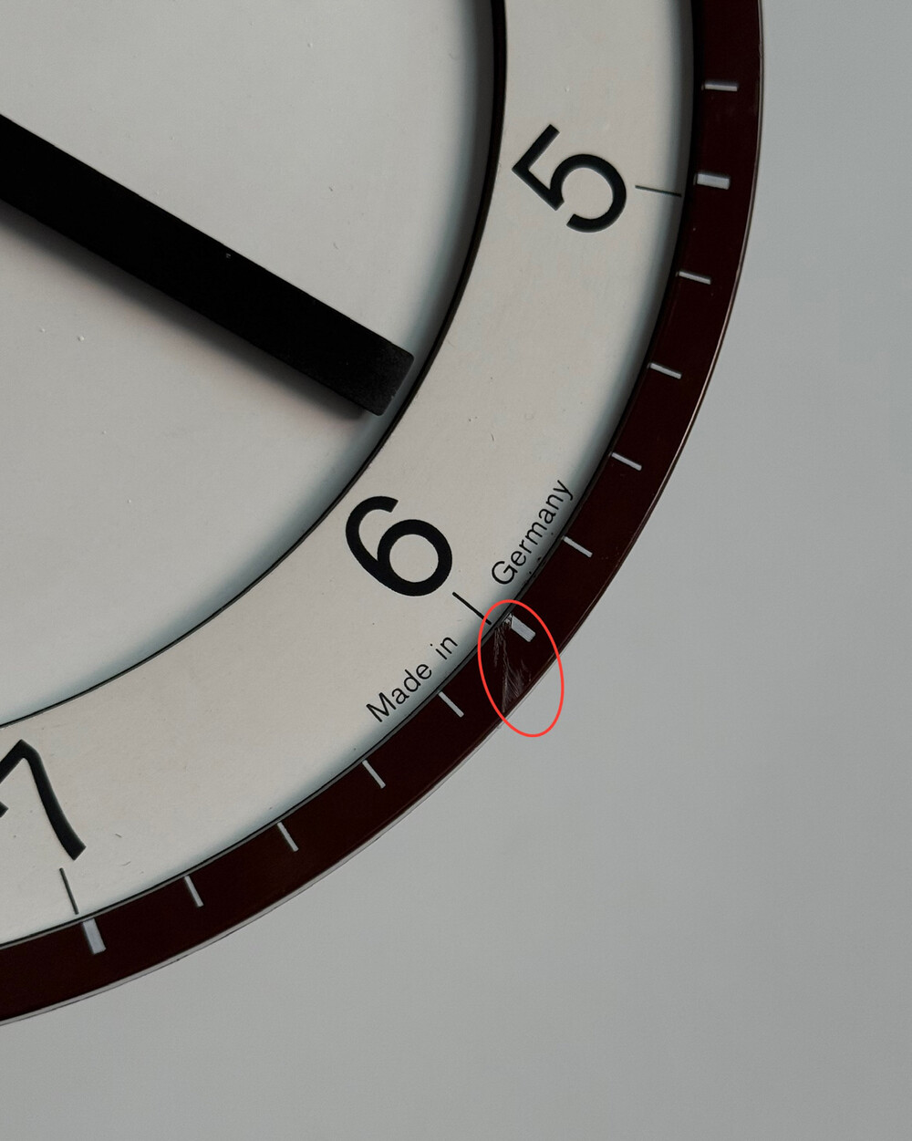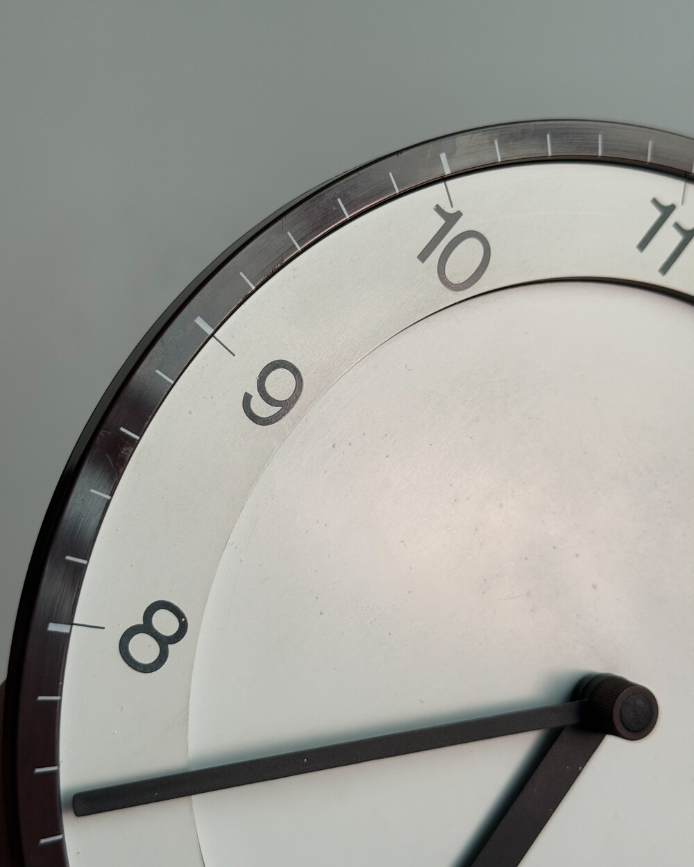 1980년대 Dietrich Lubs에 의해 디자인 된 브라운 사의 ABK 30 벽시계 입니다. 브라운의 미니멀리즘 철학이 잘 나타나는 대표 모델 중 하나로, 현재 단종되어 더욱 소장가치가 높은 모델입니다. 다양한 컬러로 출시되었으며, 해당 제품은 자연스럽게 태닝된 버터 컬러 프레임으로 이루어져 있습니다. 전면부 커버가 없는 디자인으로 중앙의 레버를 돌려 시간을 조정할 수 있습니다.