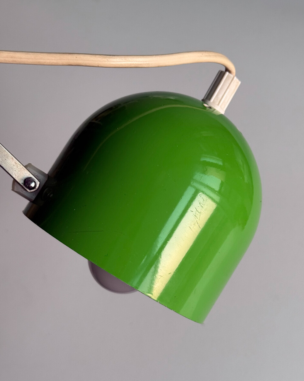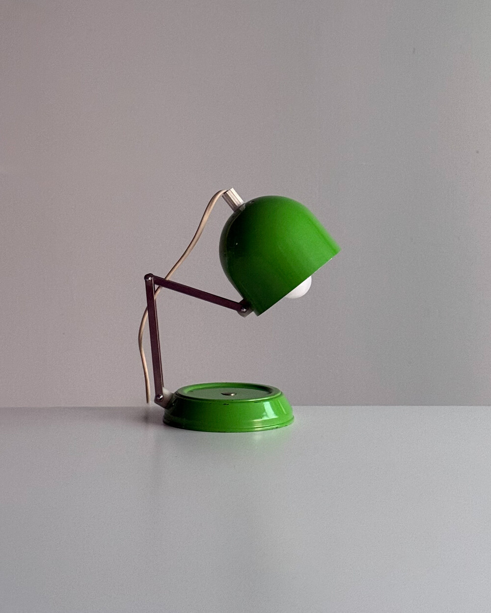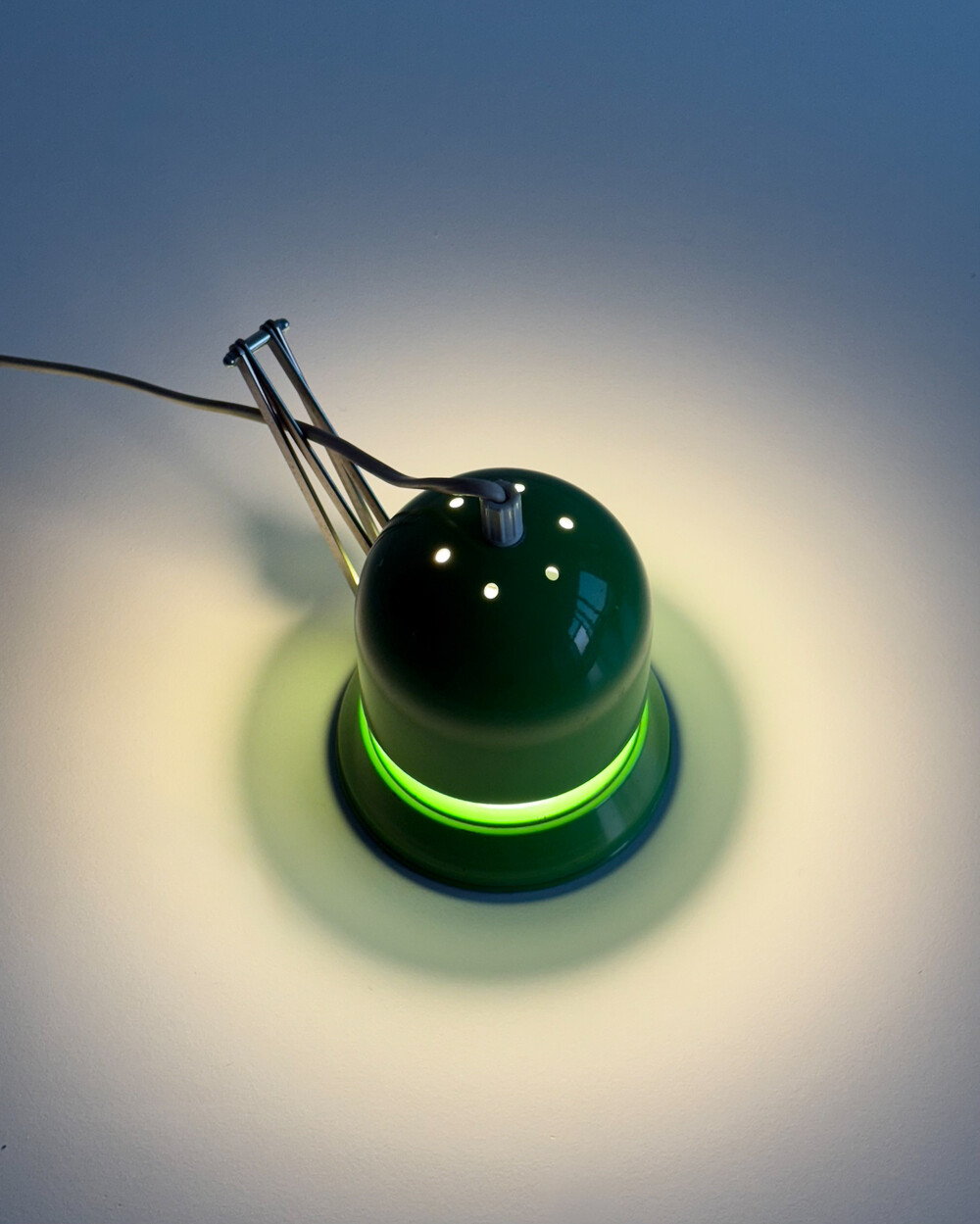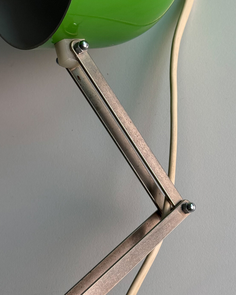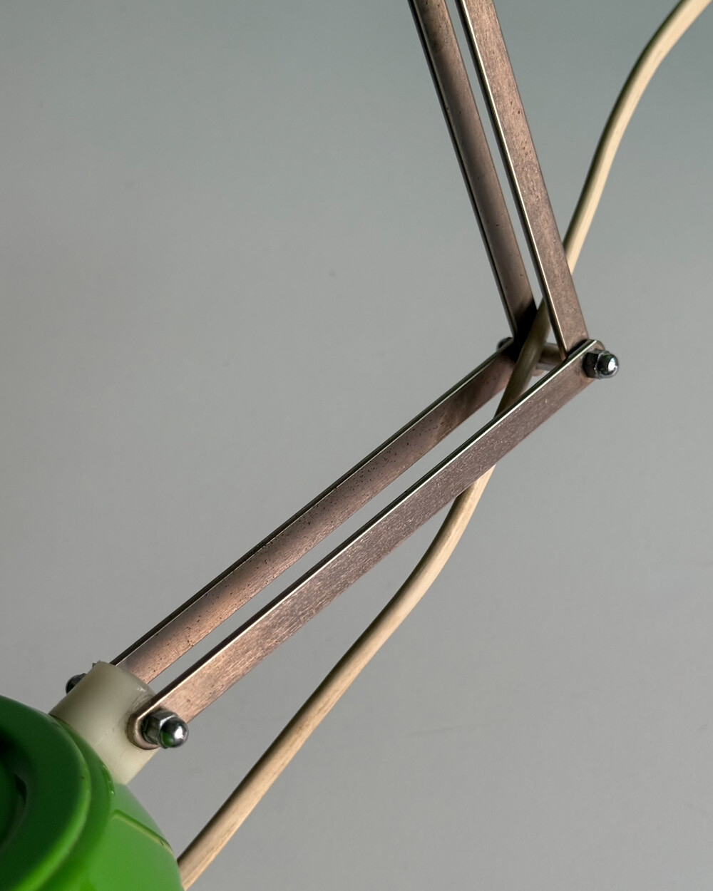 1970년대 독일에서 제작된 빈티지 데스크 램프입니다. 그린 컬러의 원형 메탈 베이스로 이루어져 있습니다. 접이식으로 각도 조절이 자유로운 암 구조로 다양한 연출이 가능합니다.