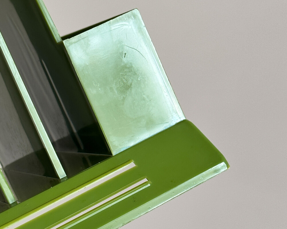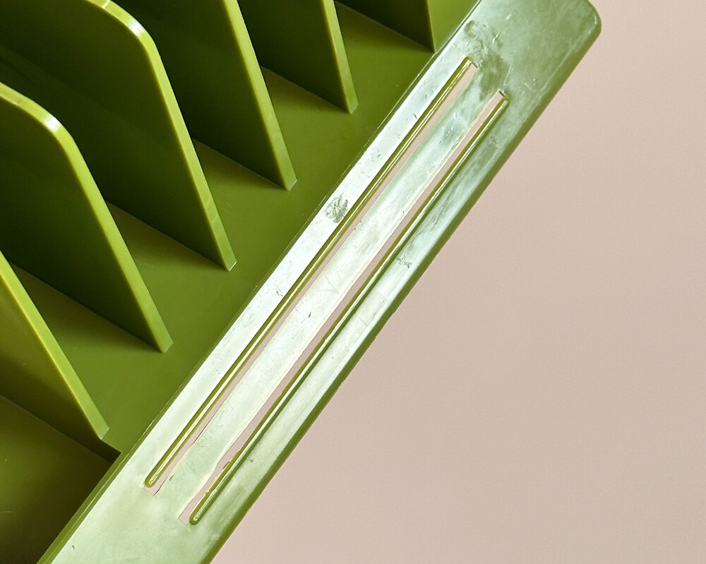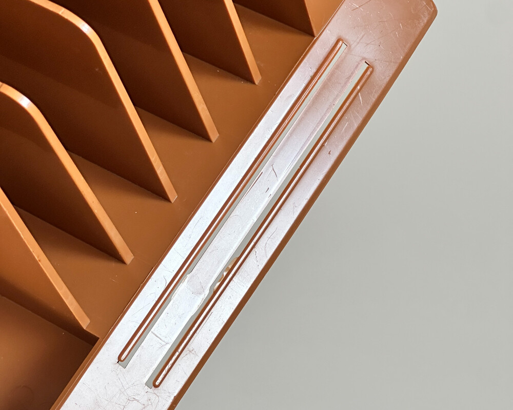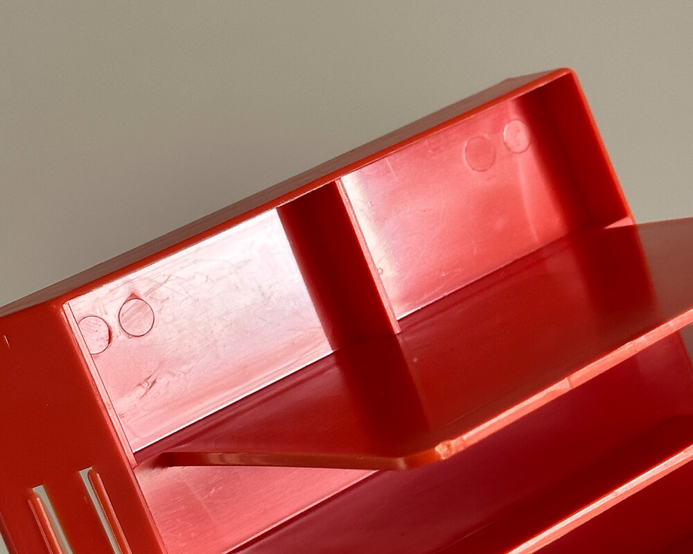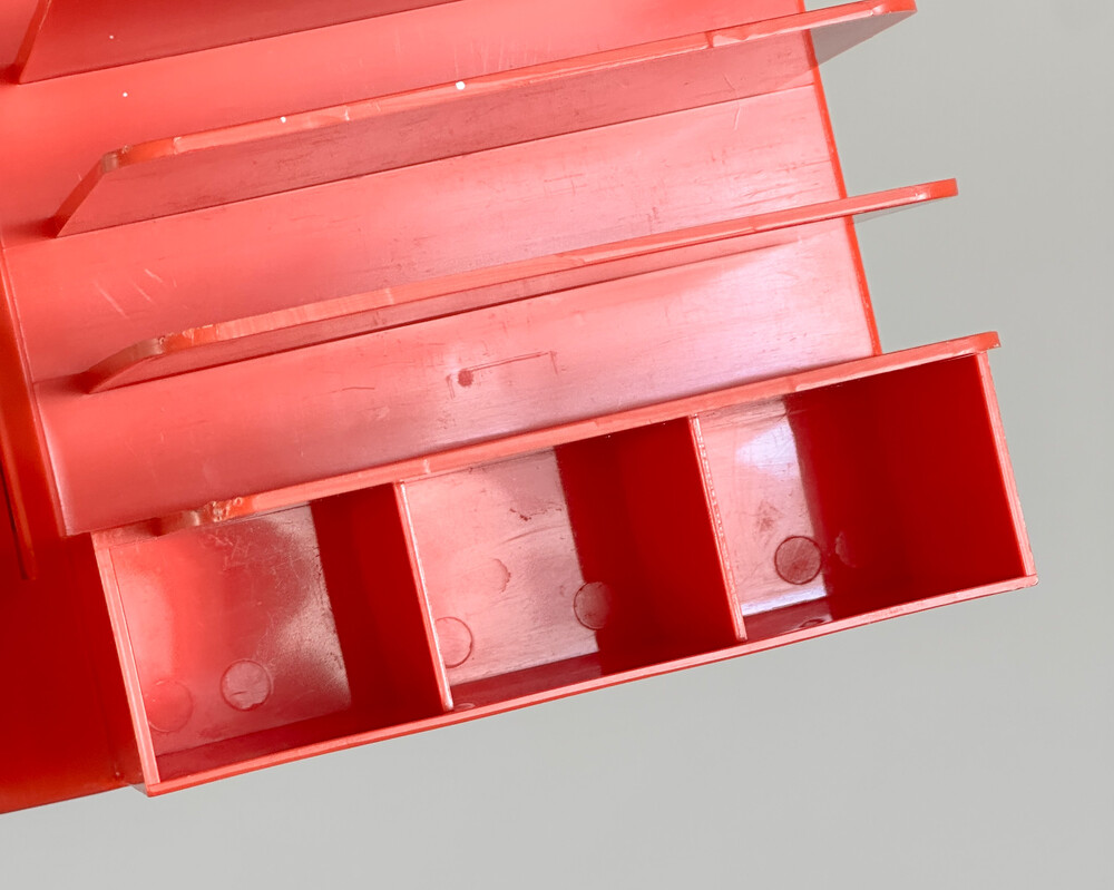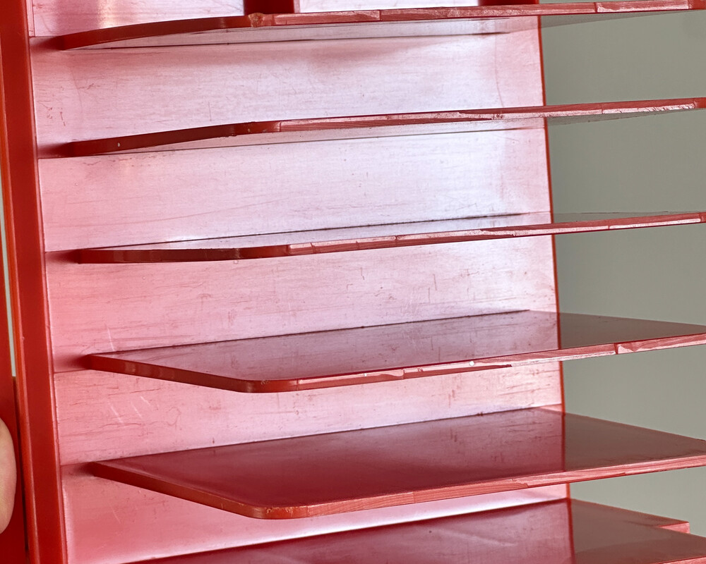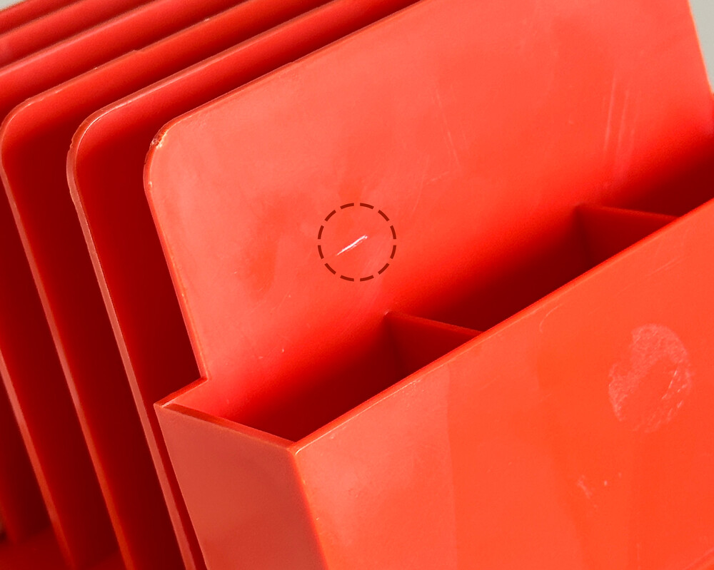 70년도 생산되었던 빈티지 데스크 오거나이저입니다. 필기구 꽃이, 엽서 보관함 등 공간의 용도에 따라 보관할 수 있는 다양한 수납공간으로 나누어져 있습니다. 오렌지, 그린, 브라운 3가지 색상으로 입고되었습니다.