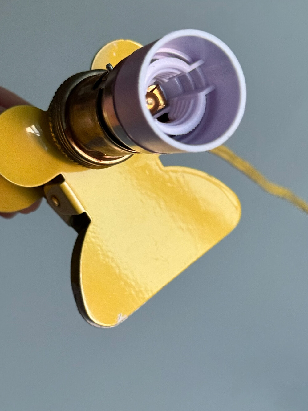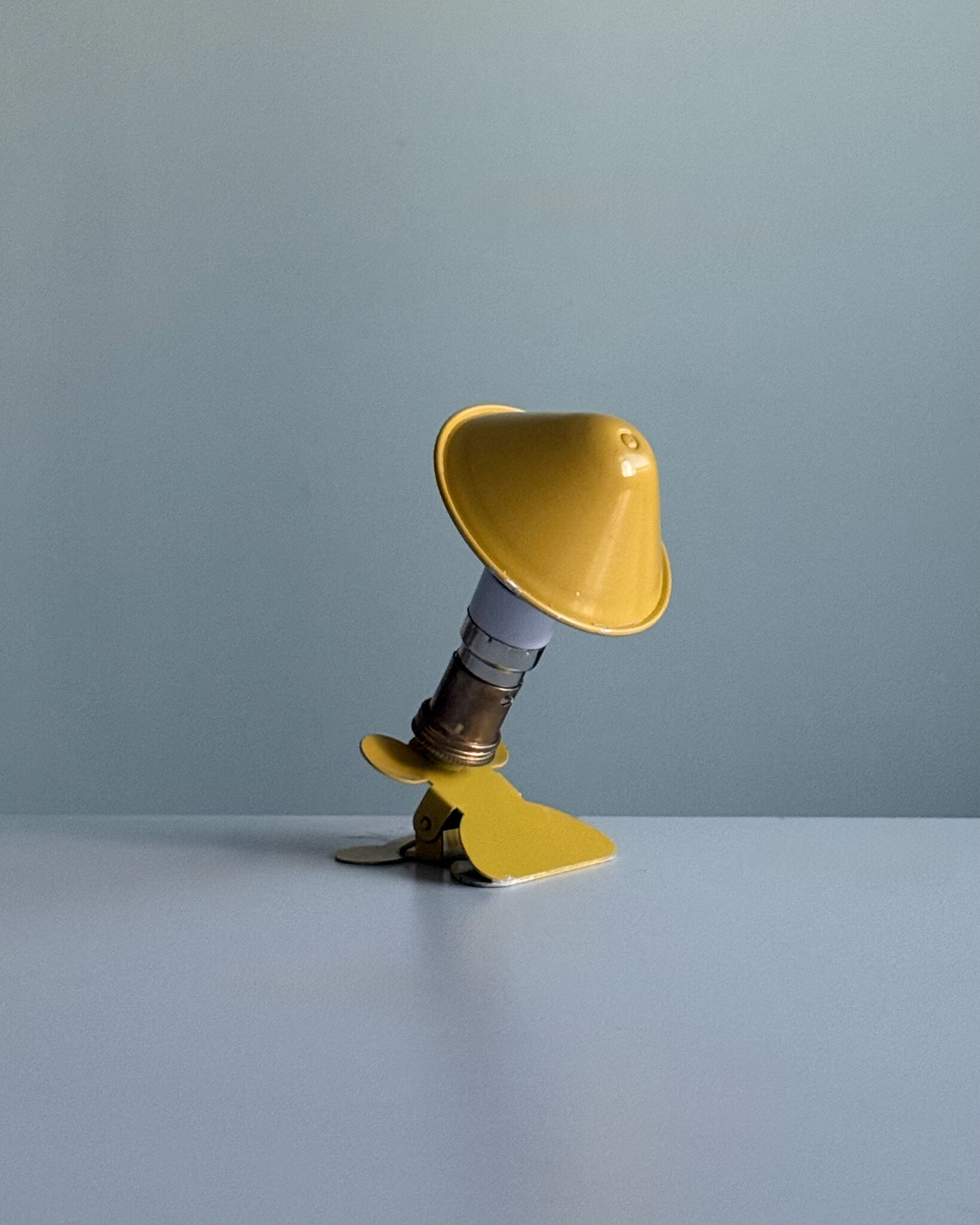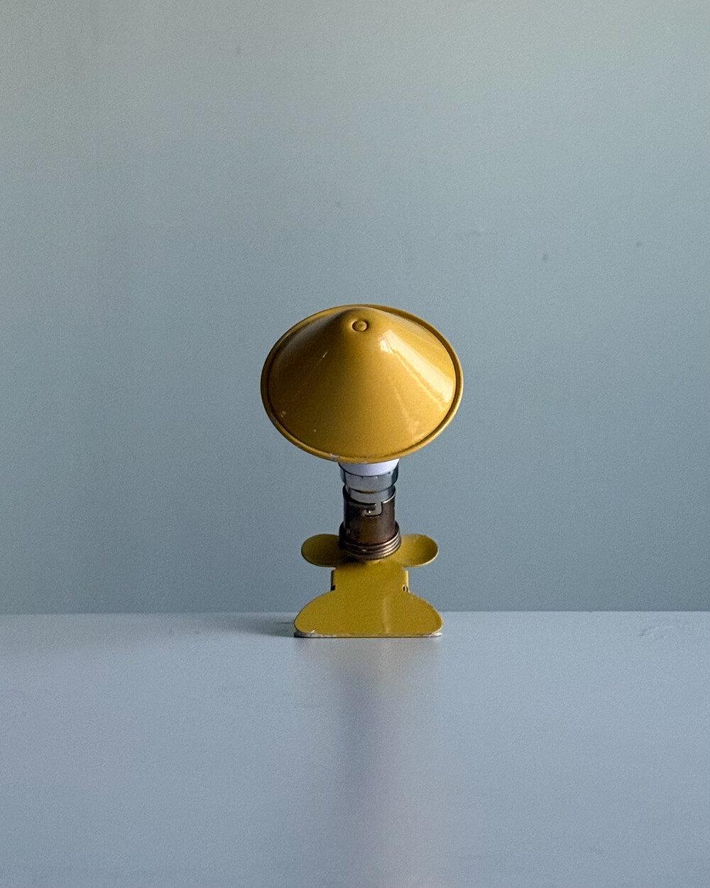 1950년대 프랑스에서 생산되었던 미니 독서등입니다. 클립 형태로 이루어져 있어 원하는 곳에 자유롭게 고정하여 사용할 수 있습니다. 헤드는 탈부착이 가능하며, 각도 조절을 통해 빛의 양을 조정할 수 있습니다.