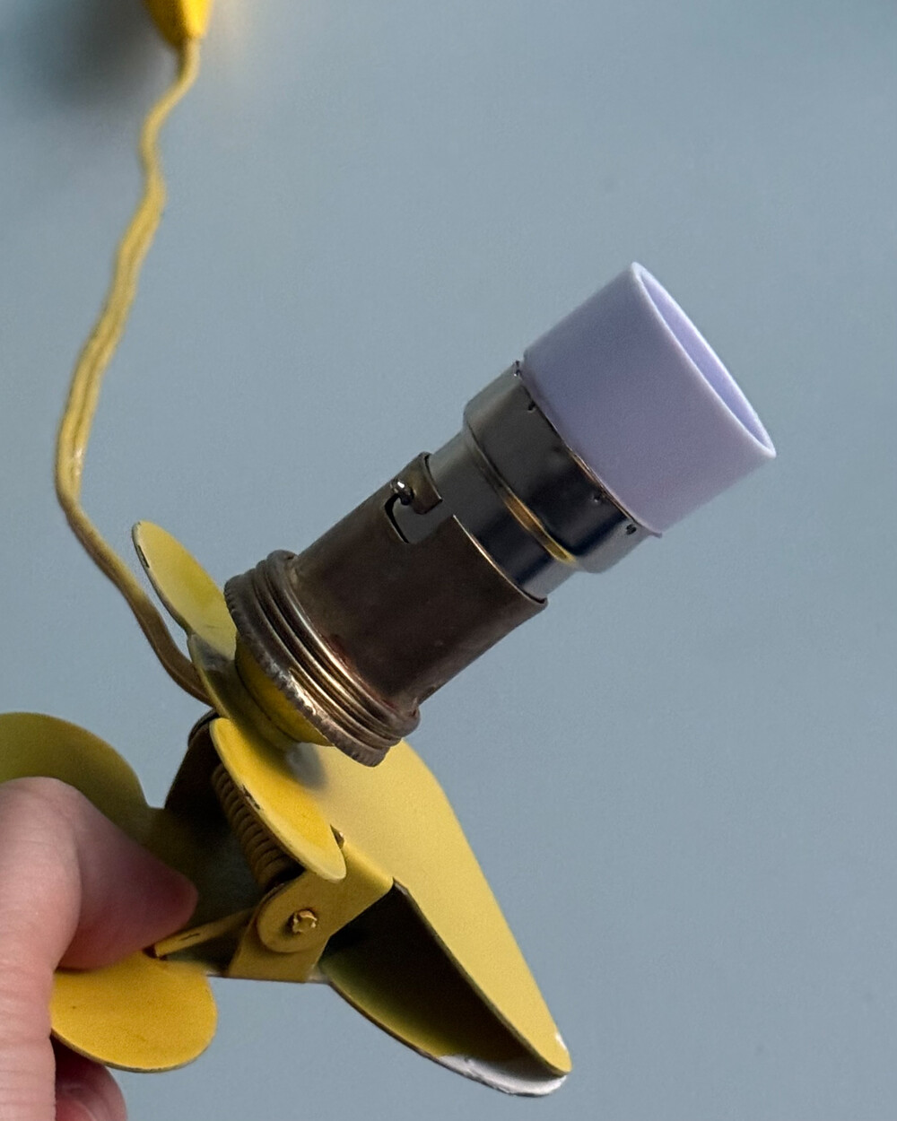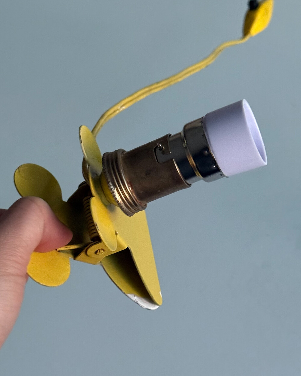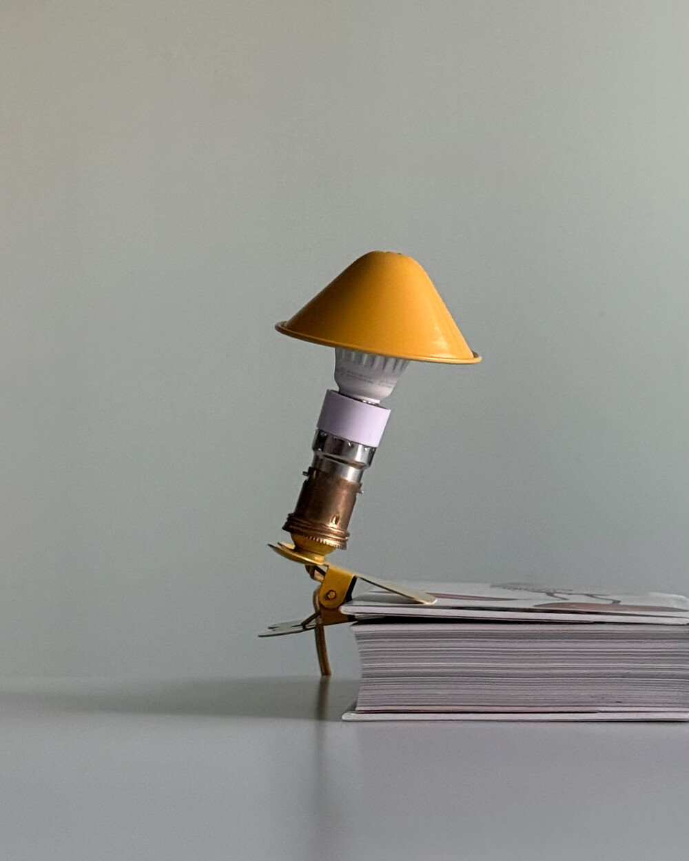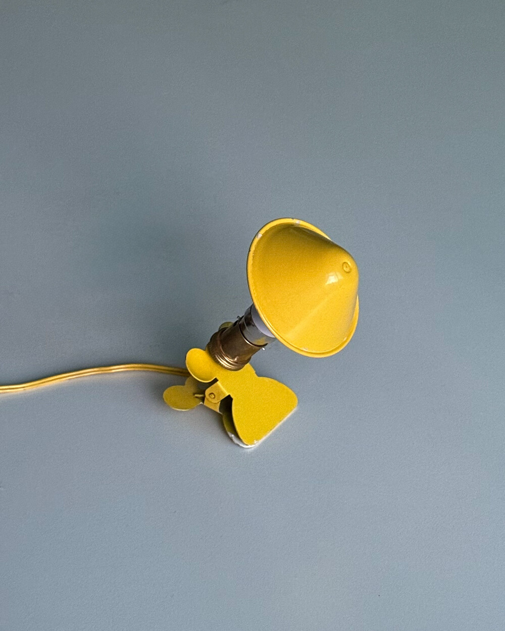 1950년대 프랑스에서 생산되었던 미니 독서등입니다. 클립 형태로 이루어져 있어 원하는 곳에 자유롭게 고정하여 사용할 수 있습니다. 헤드는 탈부착이 가능하며, 각도 조절을 통해 빛의 양을 조정할 수 있습니다.