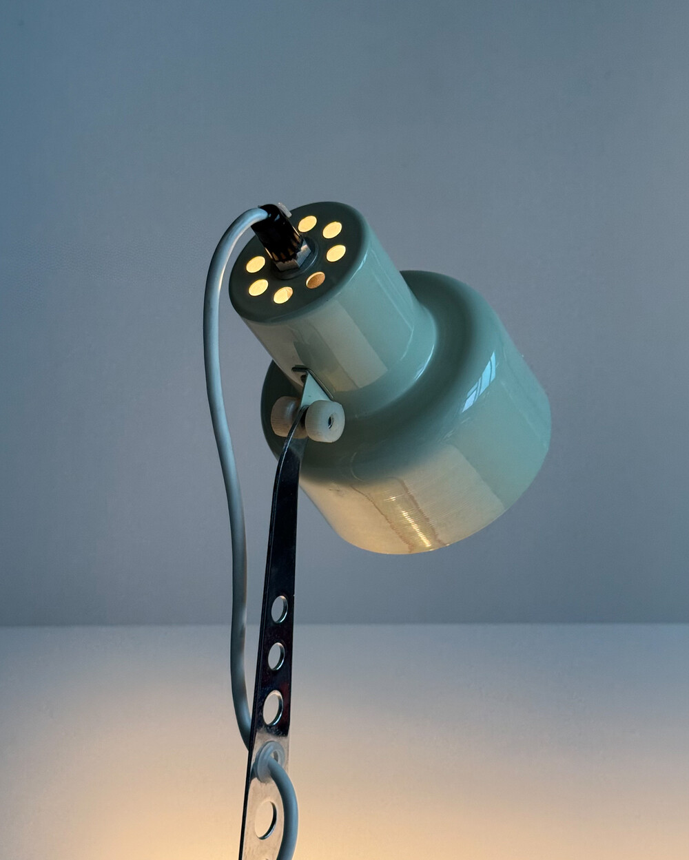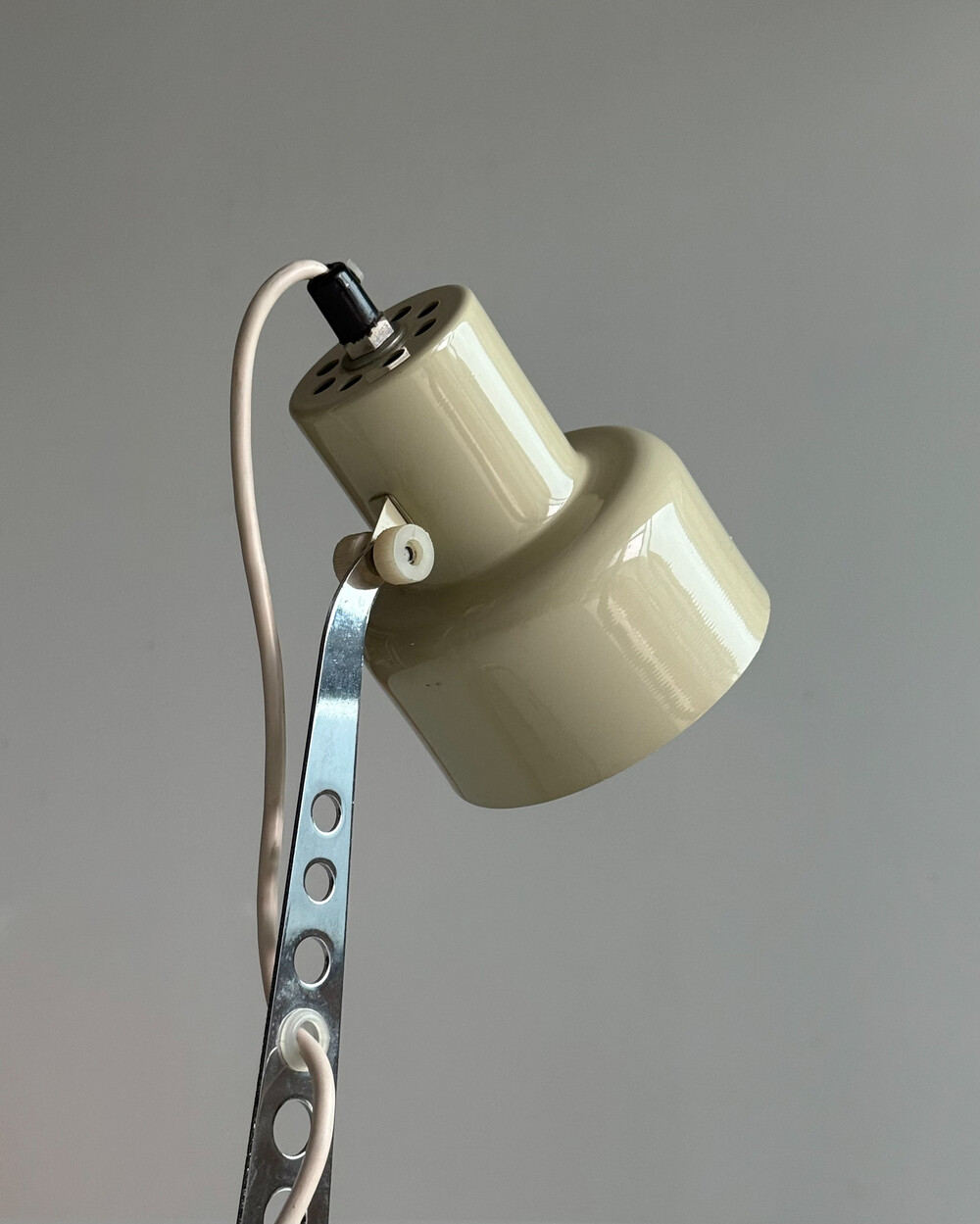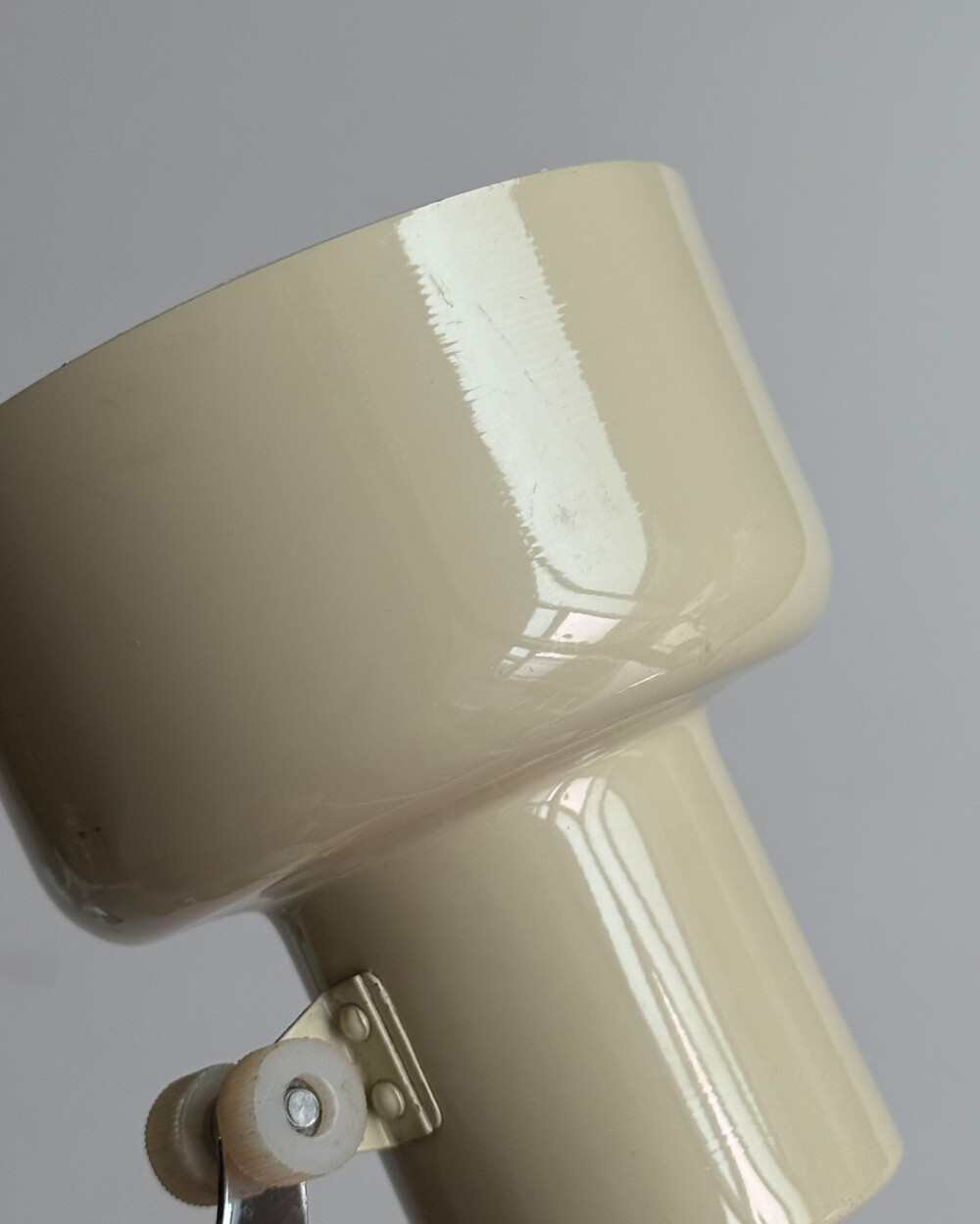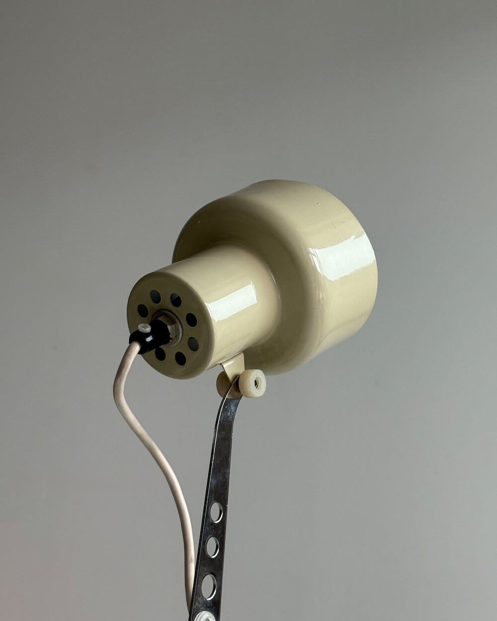 1970년대 라트비아(구 소련) VEF 에서 제작된 빈티지 데스크 램프입니다. 베이지 톤의 메탈 셰이드와 팔각형 레드 베이스가 조화를 이루며, 펀칭된 브라켓을 따라 드러나는 전선 구조가 특징적입니다. 차분한 베이지와 강렬한 레드의 대비는 USSR 디자인 특유의 실용성과 실험적 감각을 잘 보여줍니다. 데스크 위에서 포인트가 되는 매력적인 디자인입니다.