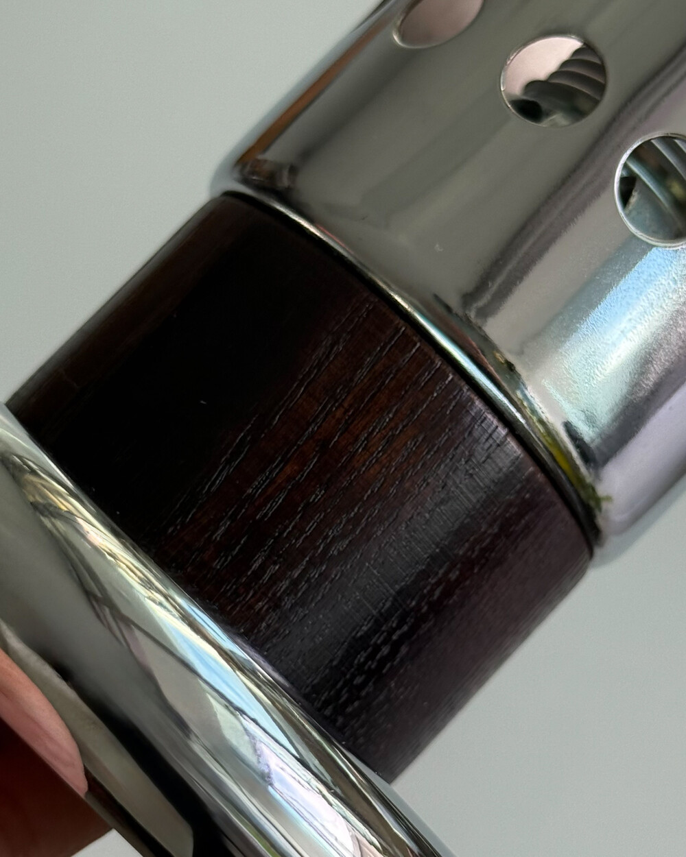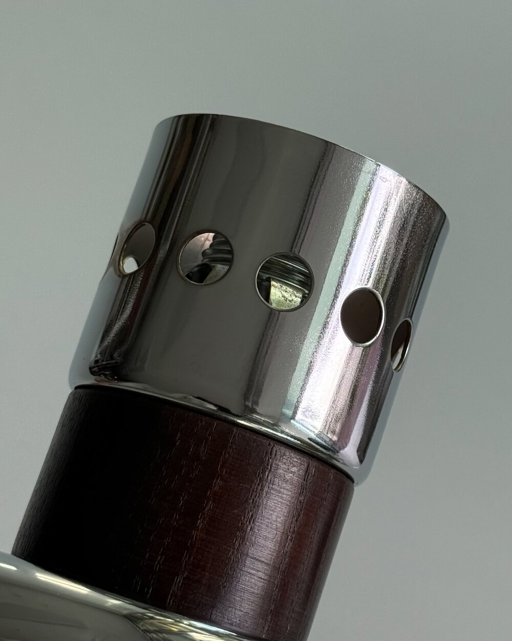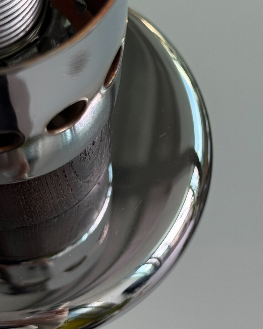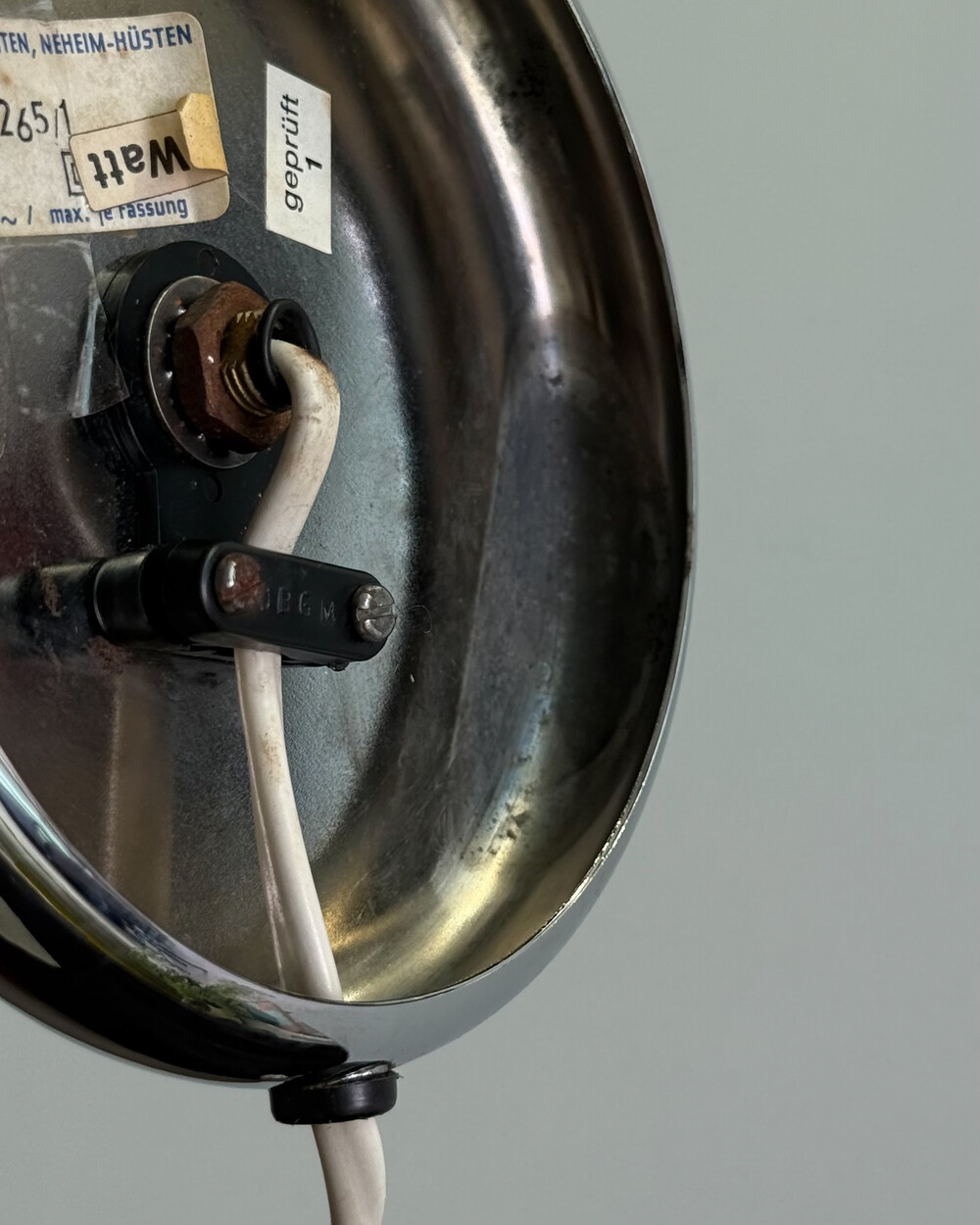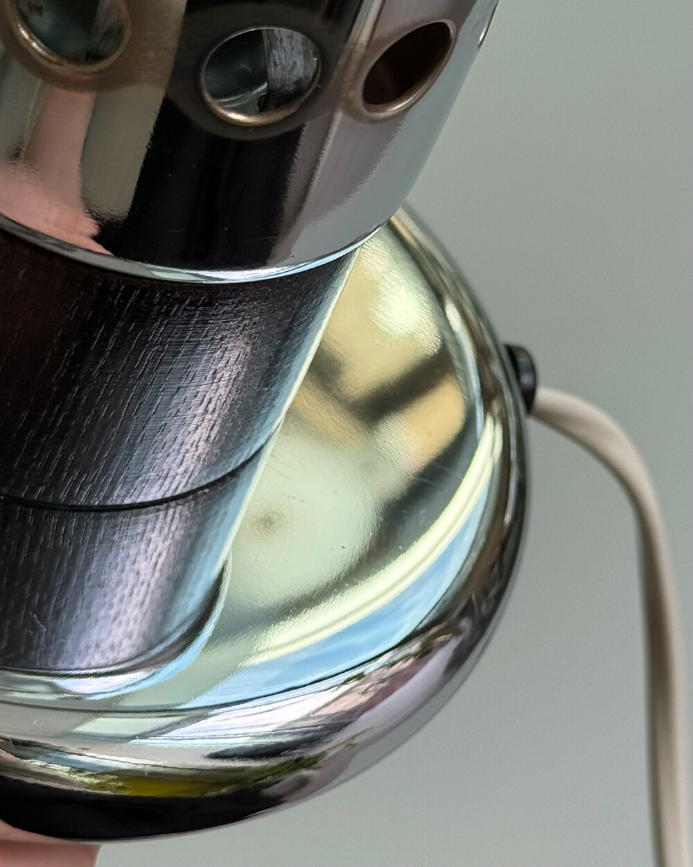 70년도 독일 BAUM-LEUCHTEN에서 생산되었던 빈티지 테이블 램프입니다. 크롬과 우드가 결합된 베이스 위로 입체감이 느껴지는 머쉬룸 쉐이드의 글라스가 결합되어 있습니다. 유니크한 디자인으로 공간에서 포인트가 되어주며, 점등 시 부드럽고 은은한 분위기를 연출해줍니다.