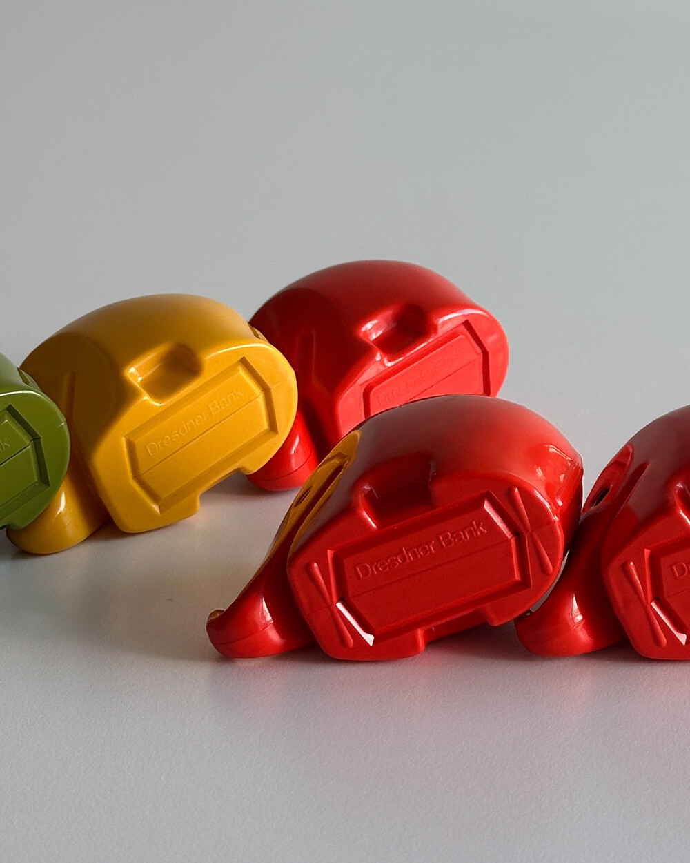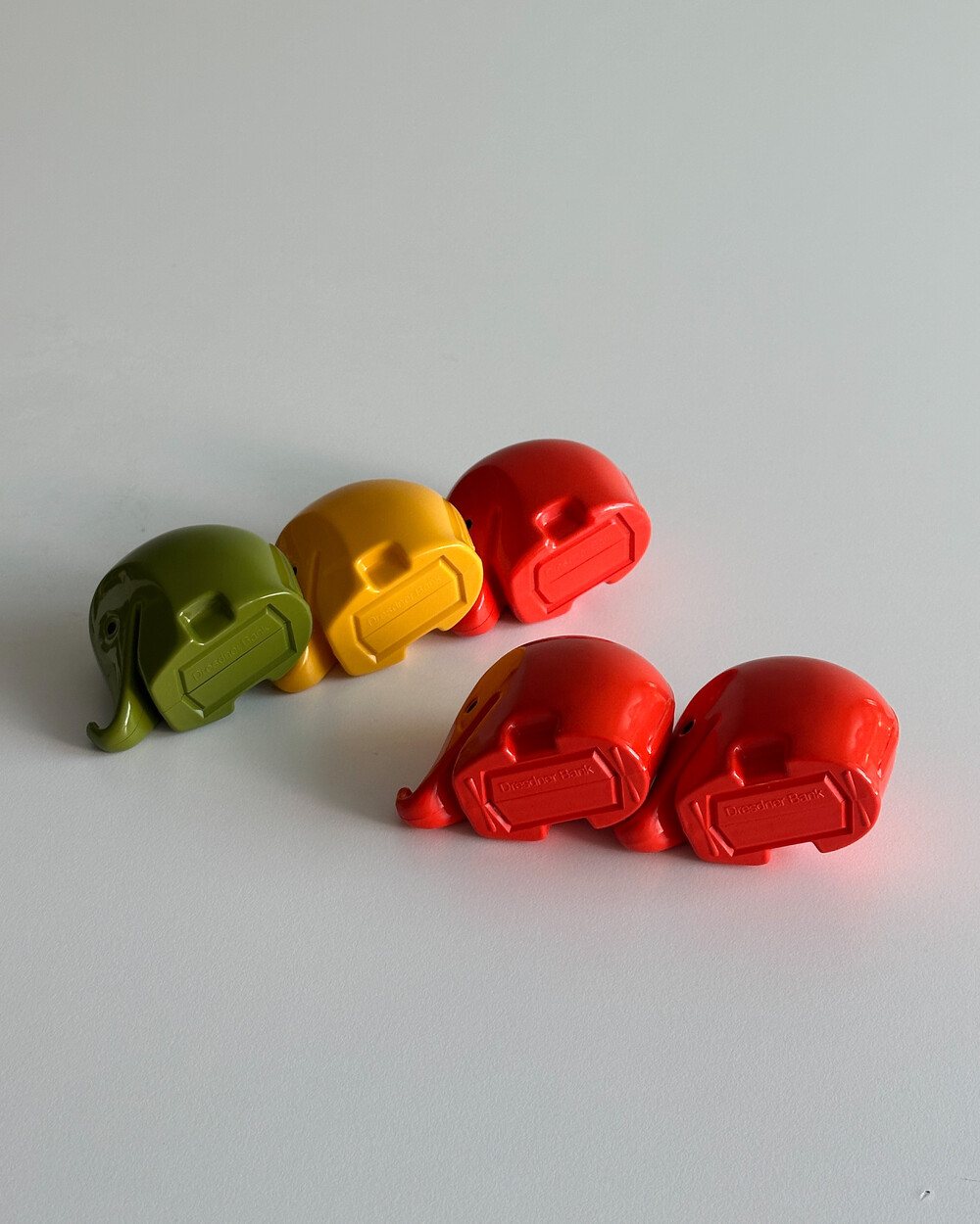 80년도 DRESDNER BANK에서 제작한 코끼리 형태의 빈티지 저금통입니다. 1970년대 후반부터 1980년대 초에 걸쳐 당시 어린이 고객의 저축 습관을 장려하기 위한 마케팅의 일환으로 배포되었습니다. 독일 산업디자인의 거장 Luigi Colani가 디자인한 것으로 널리 알려져 있으며, Colani 특유의 바이오모픽(biomorphic) 조형 언어와 시대적 디자인 특성이 고스란히 담겨 있습니다.