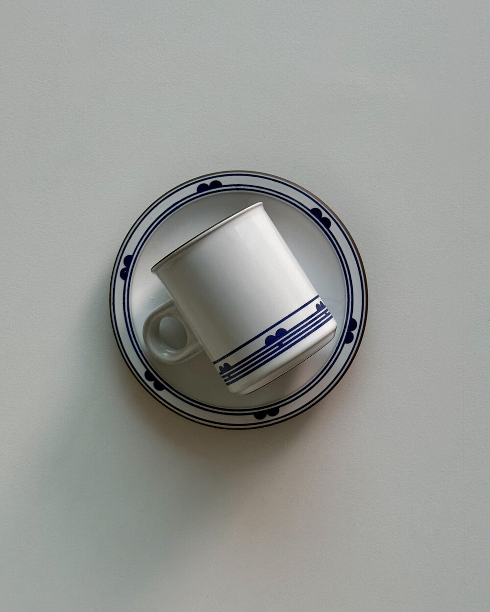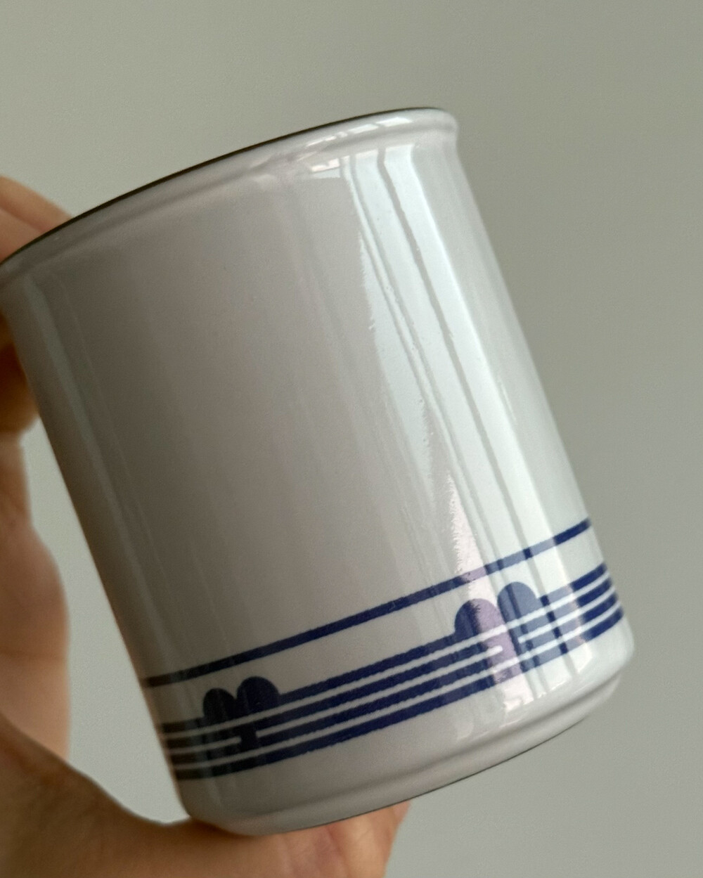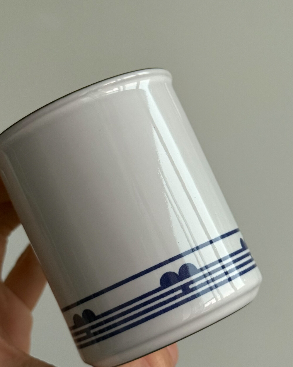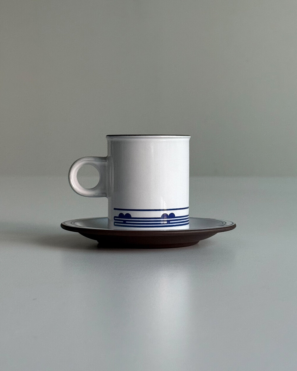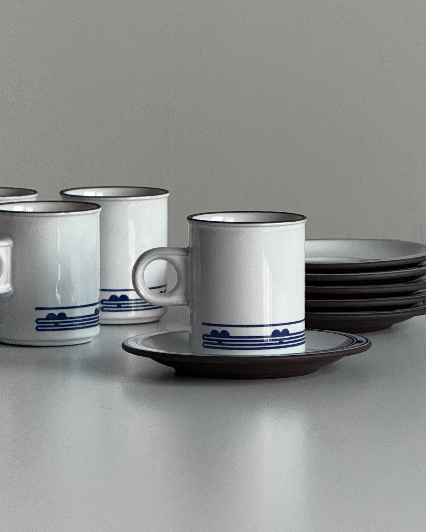 1970년도 생산되었던 영국 HORNSEA의 커피컵 세트입니다. 보기 드문 레어한 'Danube' 시리즈로, 블루 라인과 둥근 모양의 패턴으로 이루어진 차분하고 절제된 디자인입니다. 사용감이 보이지 않는 매우 훌륭한 컨디션으로 입고되었습니다.