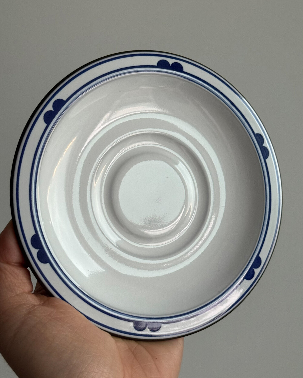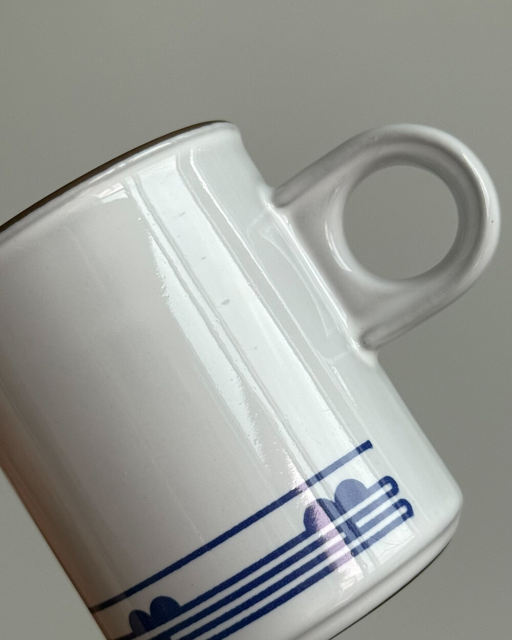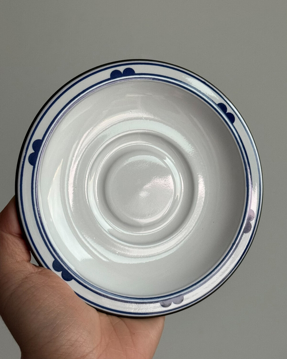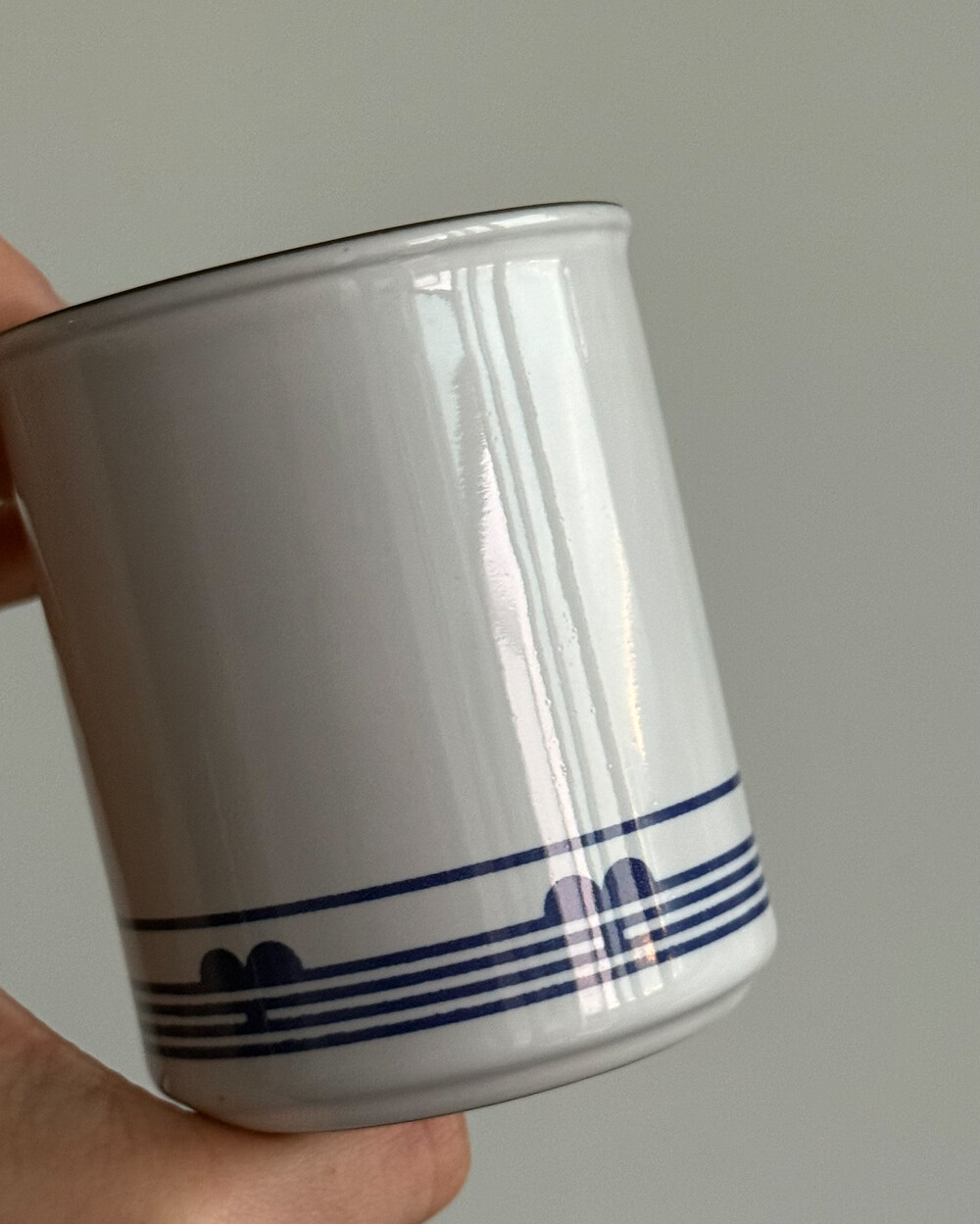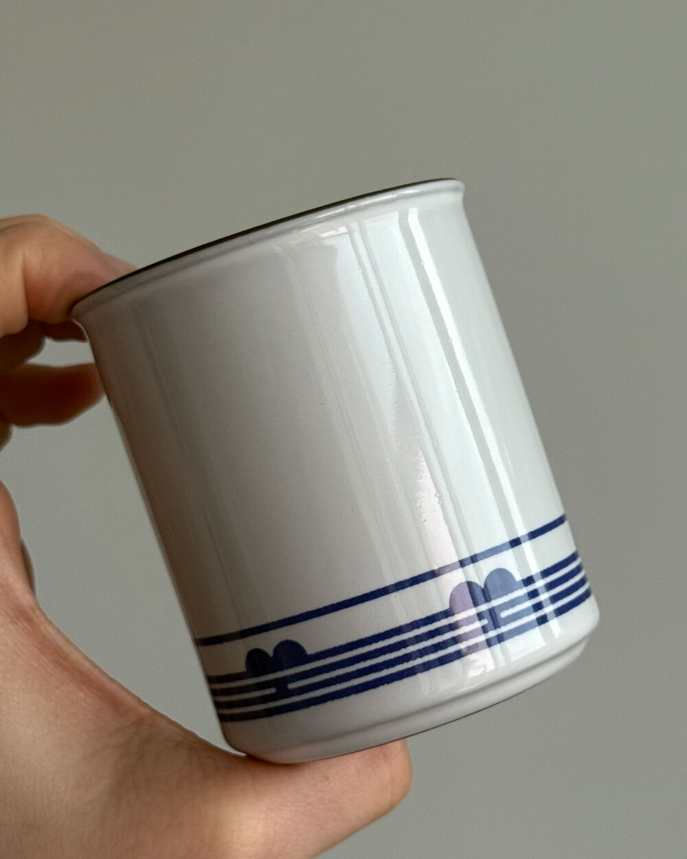 1970년도 생산되었던 영국 HORNSEA의 커피컵 세트입니다. 보기 드문 레어한 'Danube' 시리즈로, 블루 라인과 둥근 모양의 패턴으로 이루어진 차분하고 절제된 디자인입니다. 사용감이 보이지 않는 매우 훌륭한 컨디션으로 입고되었습니다.