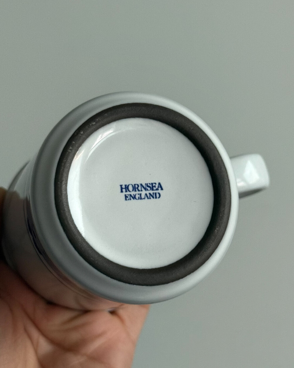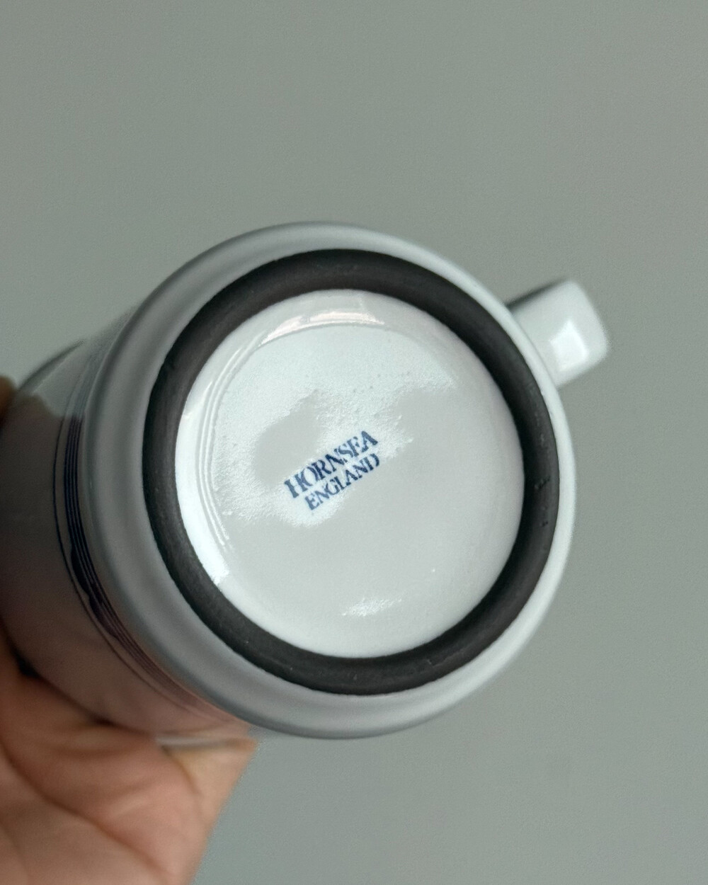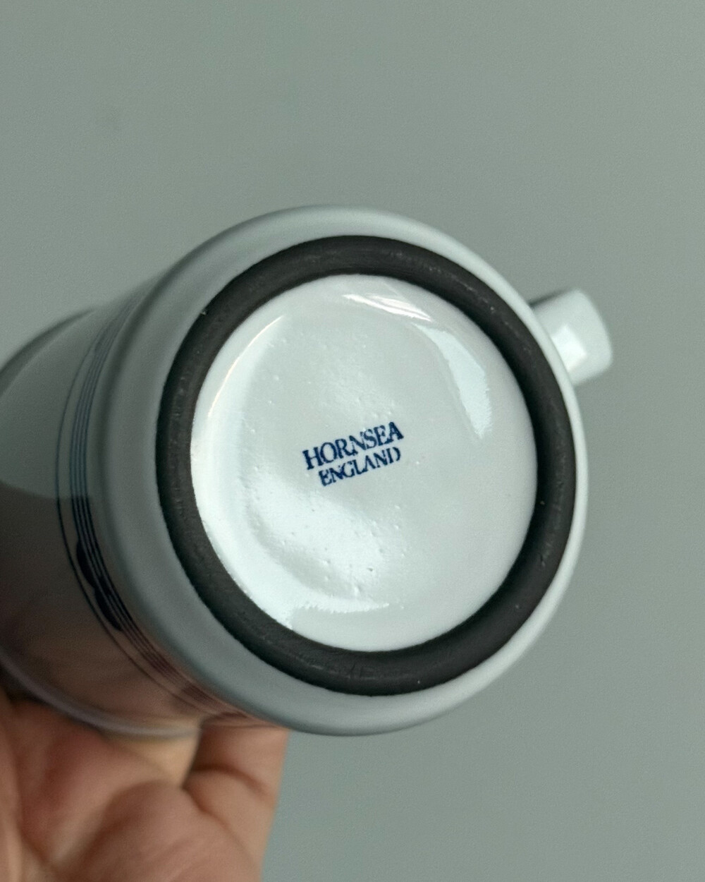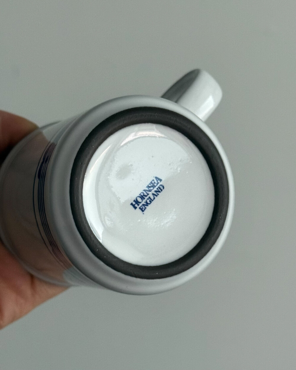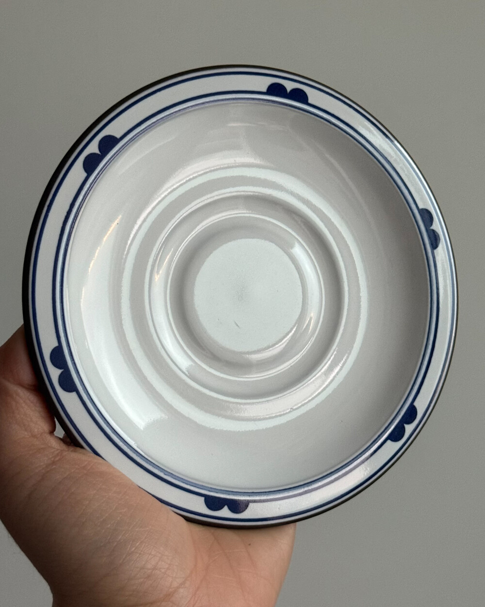 1970년도 생산되었던 영국 HORNSEA의 커피컵 세트입니다. 보기 드문 레어한 'Danube' 시리즈로, 블루 라인과 둥근 모양의 패턴으로 이루어진 차분하고 절제된 디자인입니다. 사용감이 보이지 않는 매우 훌륭한 컨디션으로 입고되었습니다.