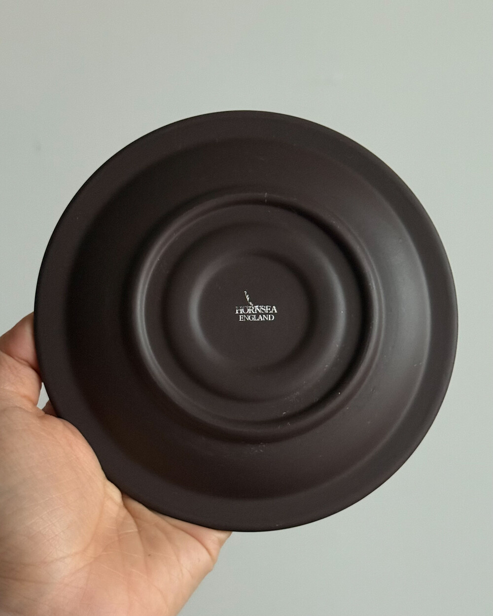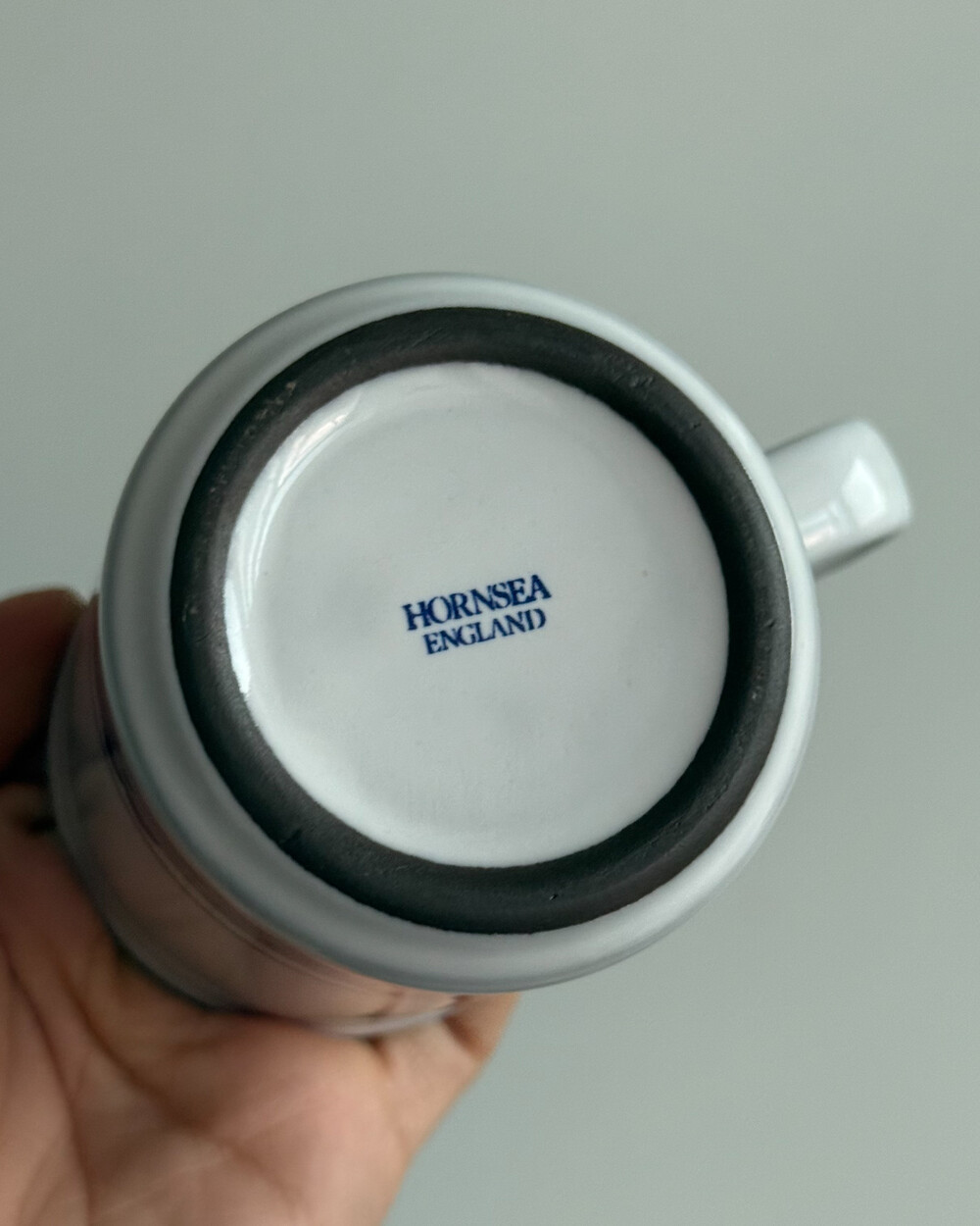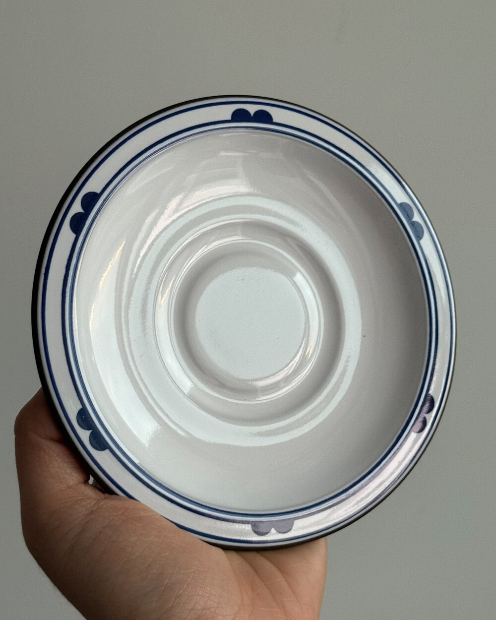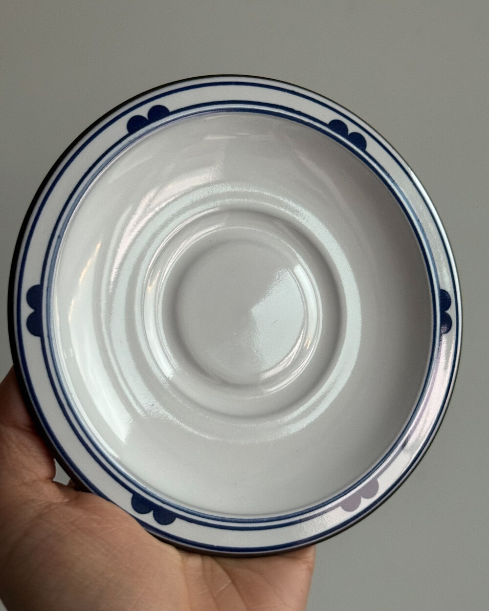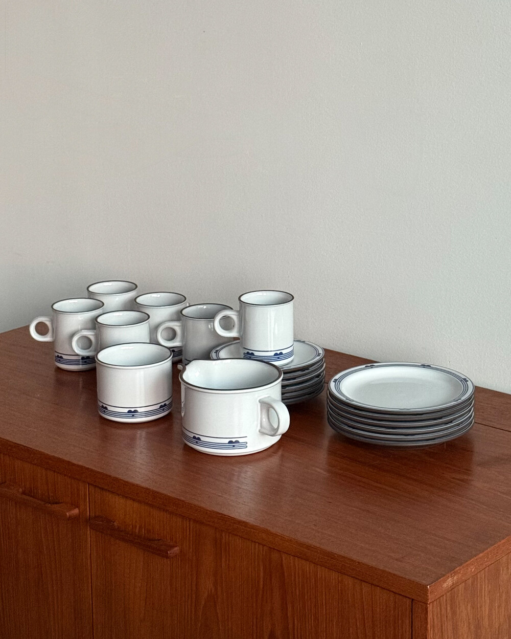 1970년도 생산되었던 영국 HORNSEA의 커피컵 세트입니다. 보기 드문 레어한 'Danube' 시리즈로, 블루 라인과 둥근 모양의 패턴으로 이루어진 차분하고 절제된 디자인입니다. 사용감이 보이지 않는 매우 훌륭한 컨디션으로 입고되었습니다.