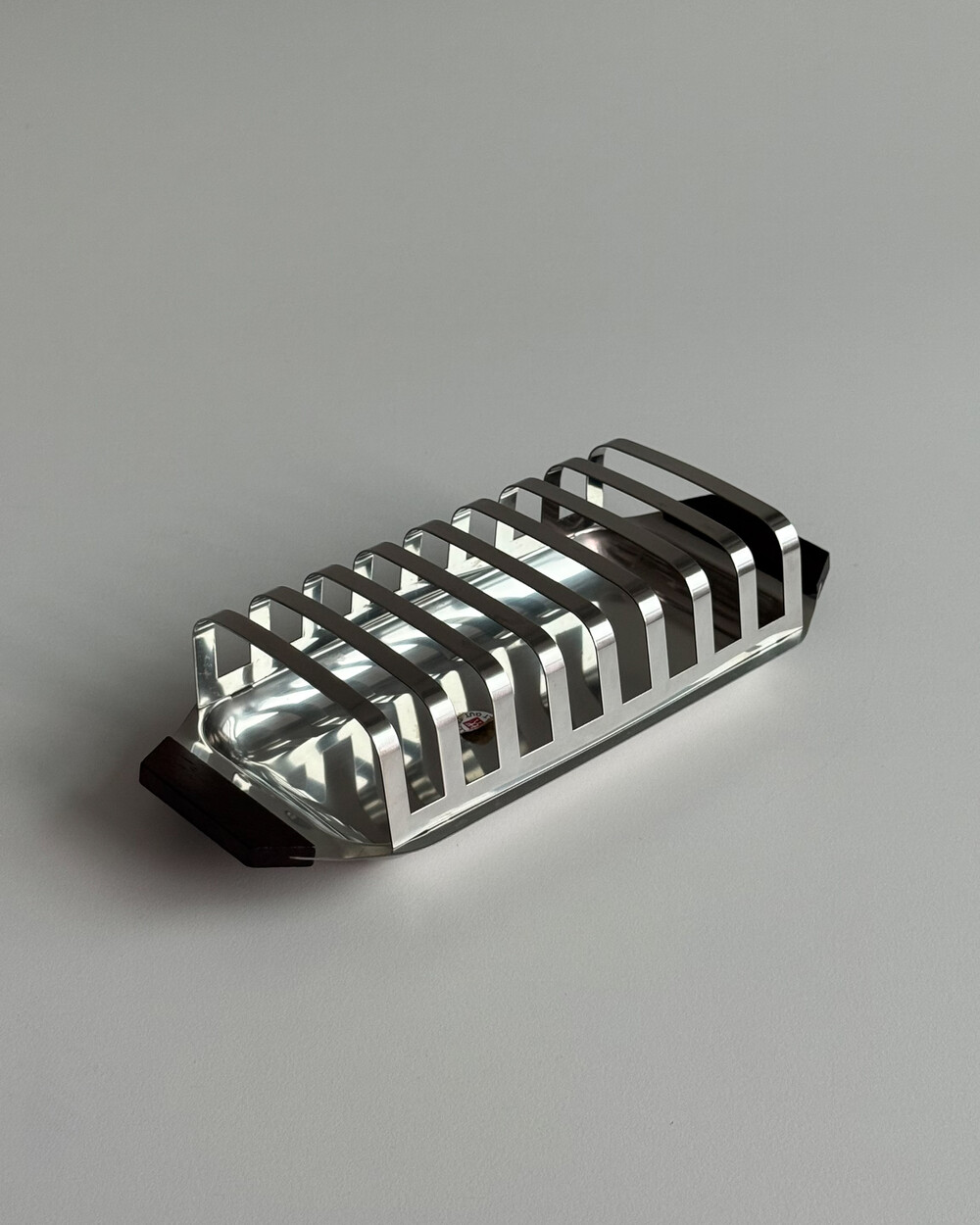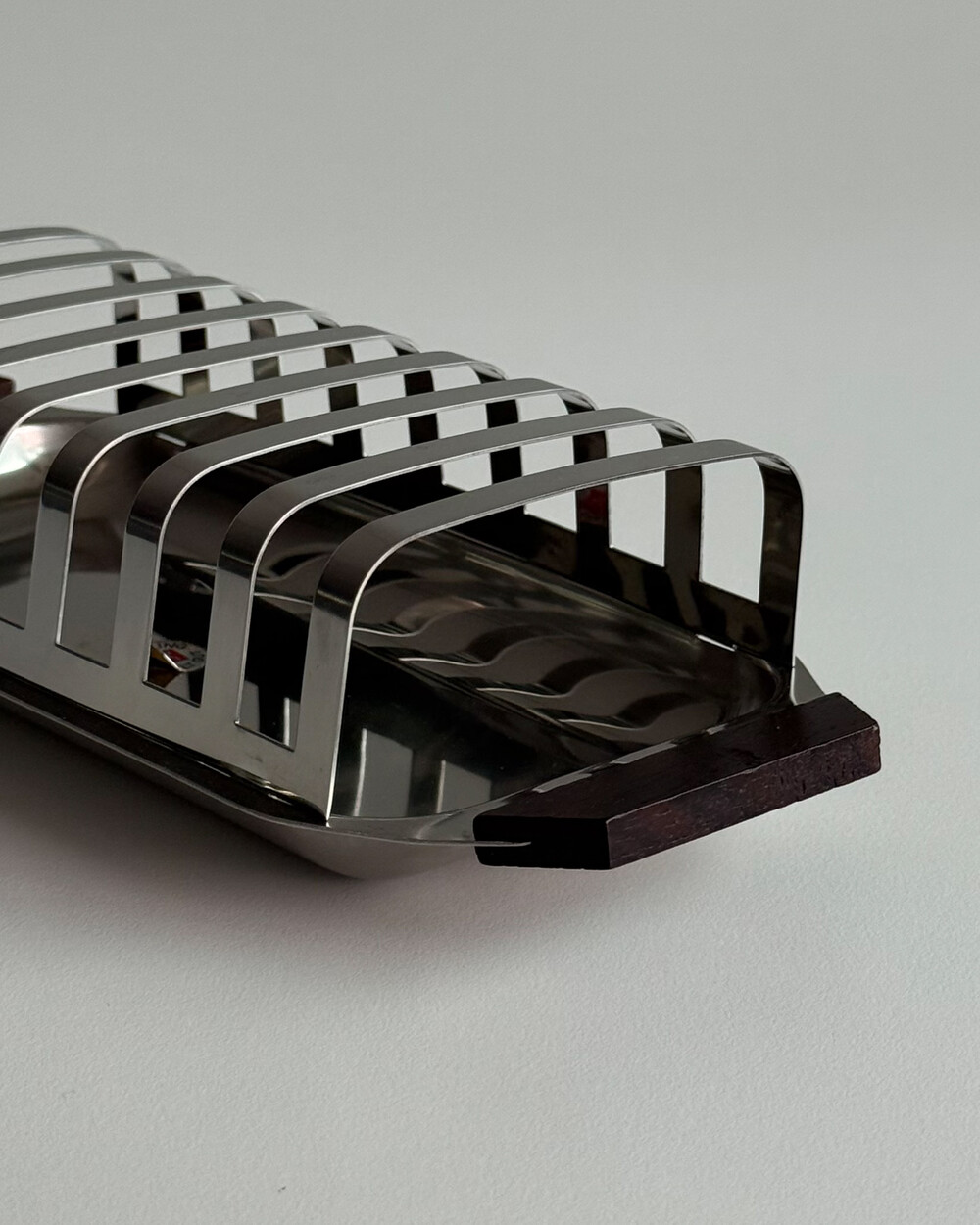 1970년대 생산되었던 ZWILLING 사의 토스트랙입니다. 클래식한 바 형태의 견고한 스테인리스 랙과 티크 우드 핸들로 구성되어 있습니다. 아침 식탁 위 토스트를 세련되게 진열할 수 있는 실용적이면서도 감각적인 아이템입니다. 토스트 랙 용도 뿐만 아니라 편지 홀더, 인테리어 소품 등으로 다양하게 활용하실 수 있습니다.