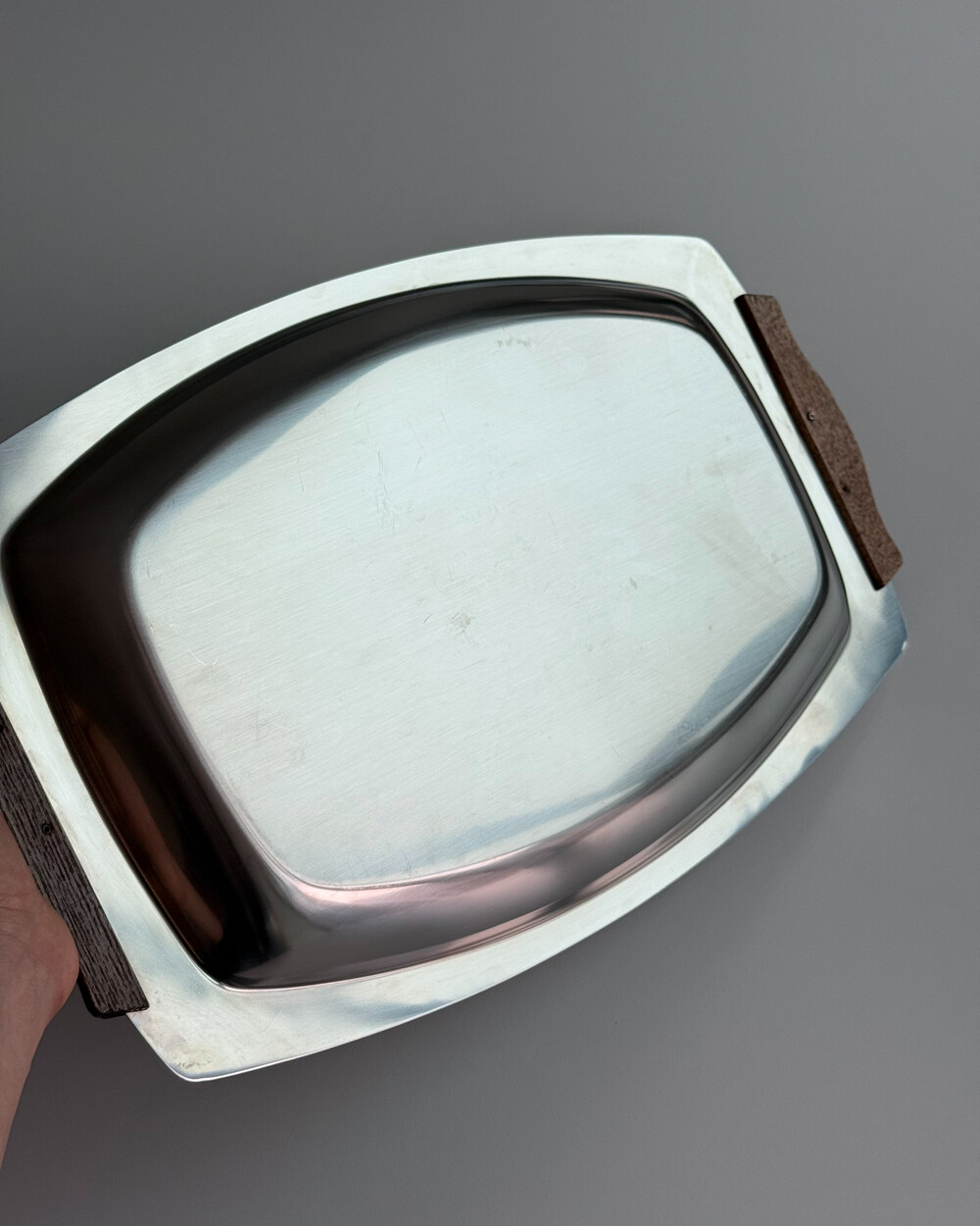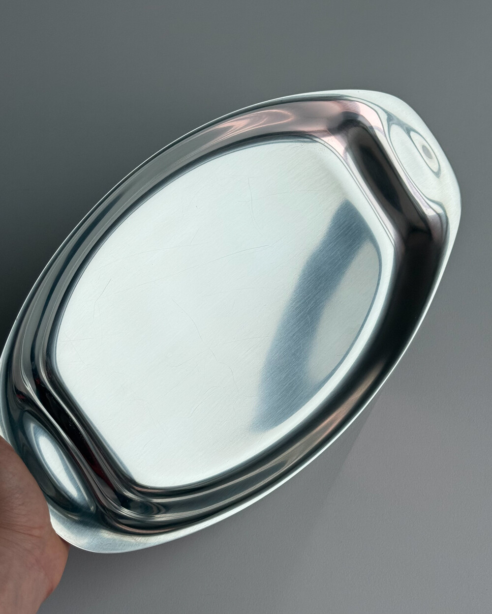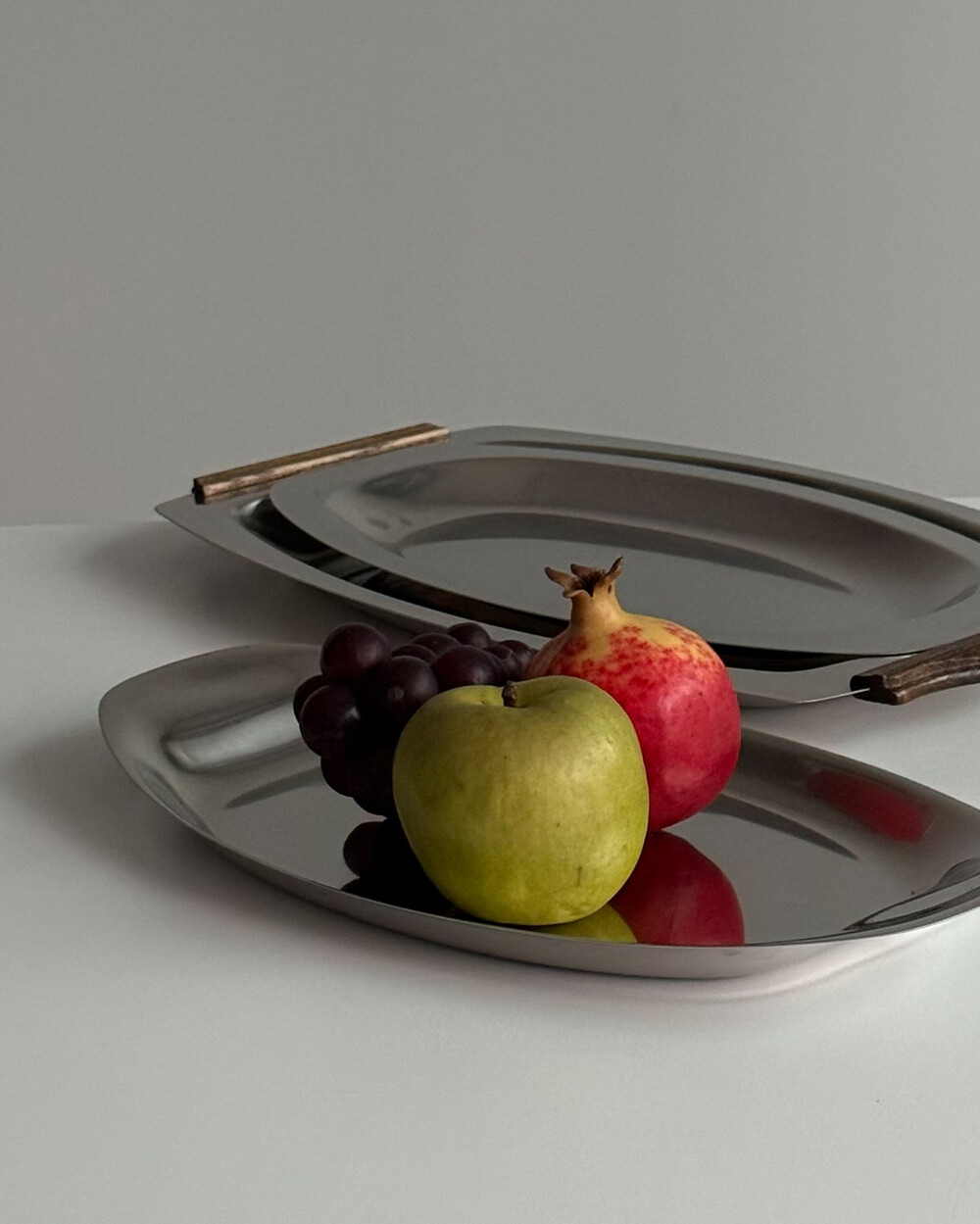 1970년대 독일에서 생산되었던 스테인리스 스틸 서빙 트레이 3종입니다. 고기류부터 치즈, 채소, 다양한 요리를 담기 좋은 넉넉한 사이즈(37~42cm)로 테이블 위에 클래식한 무드를 더해줍니다.