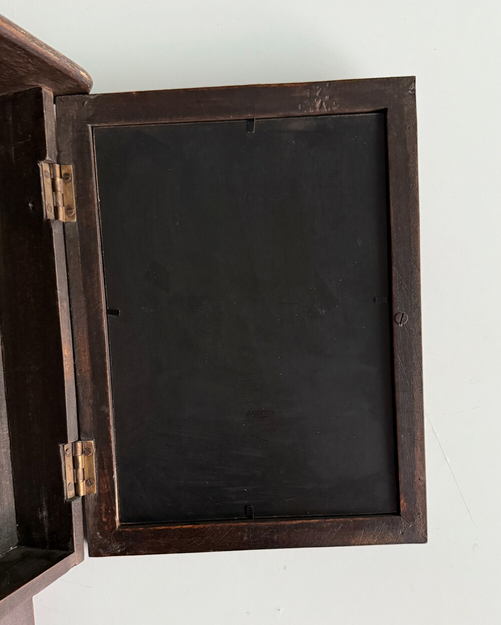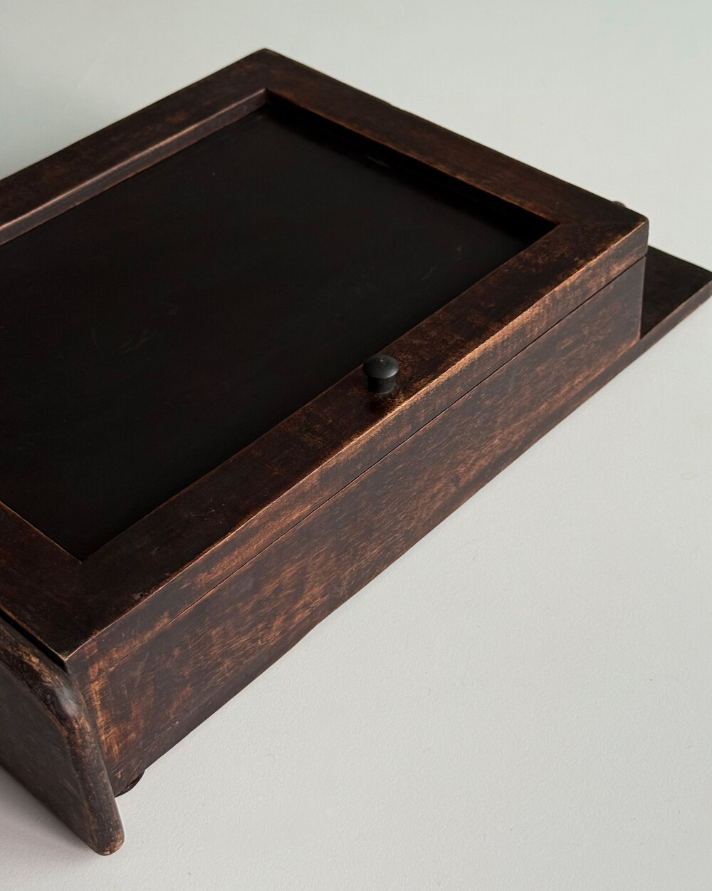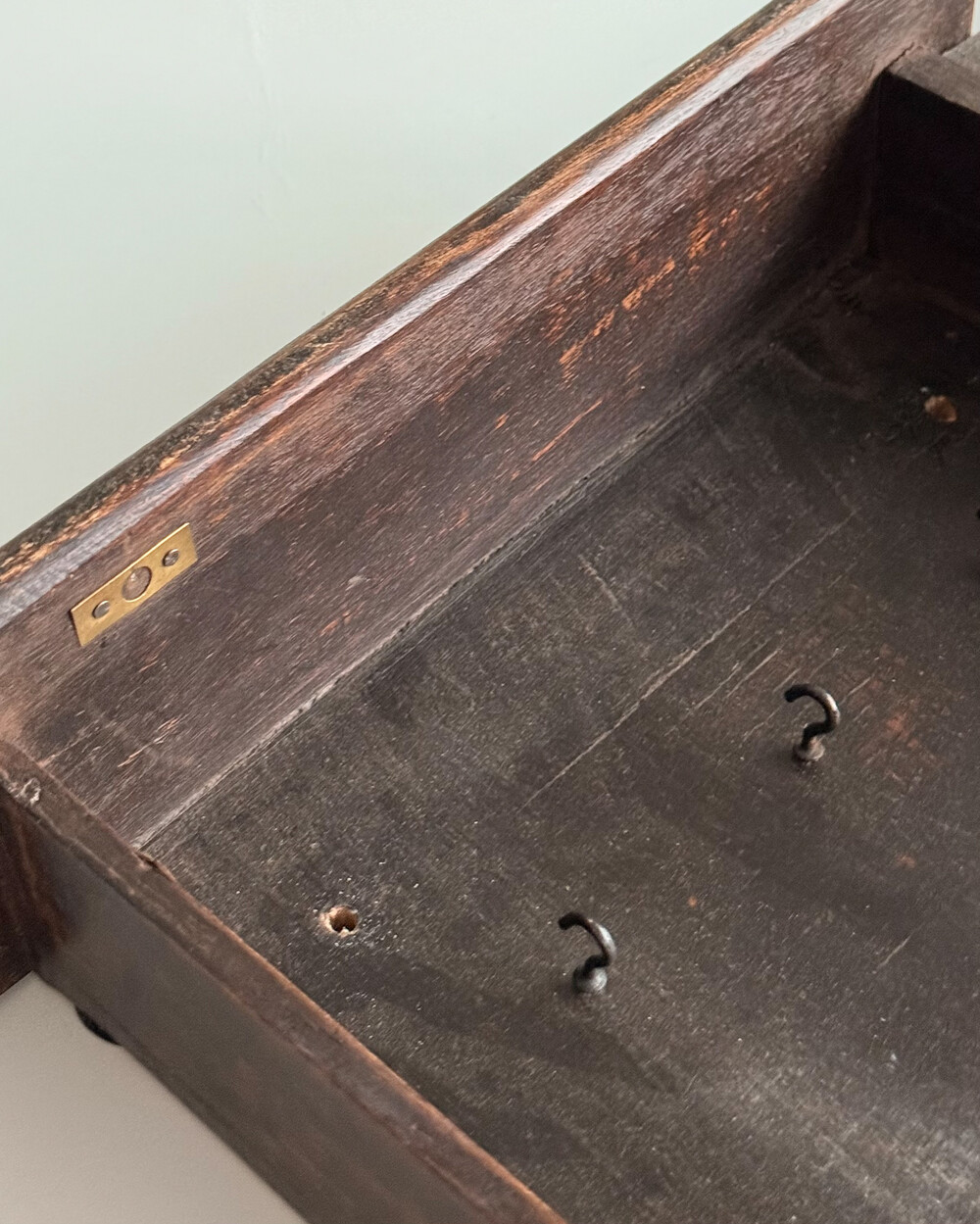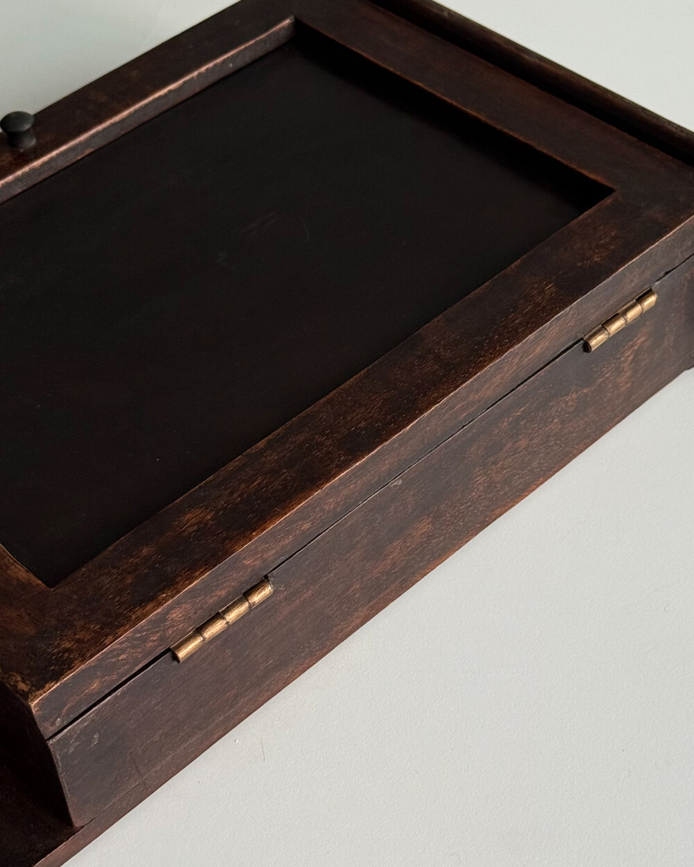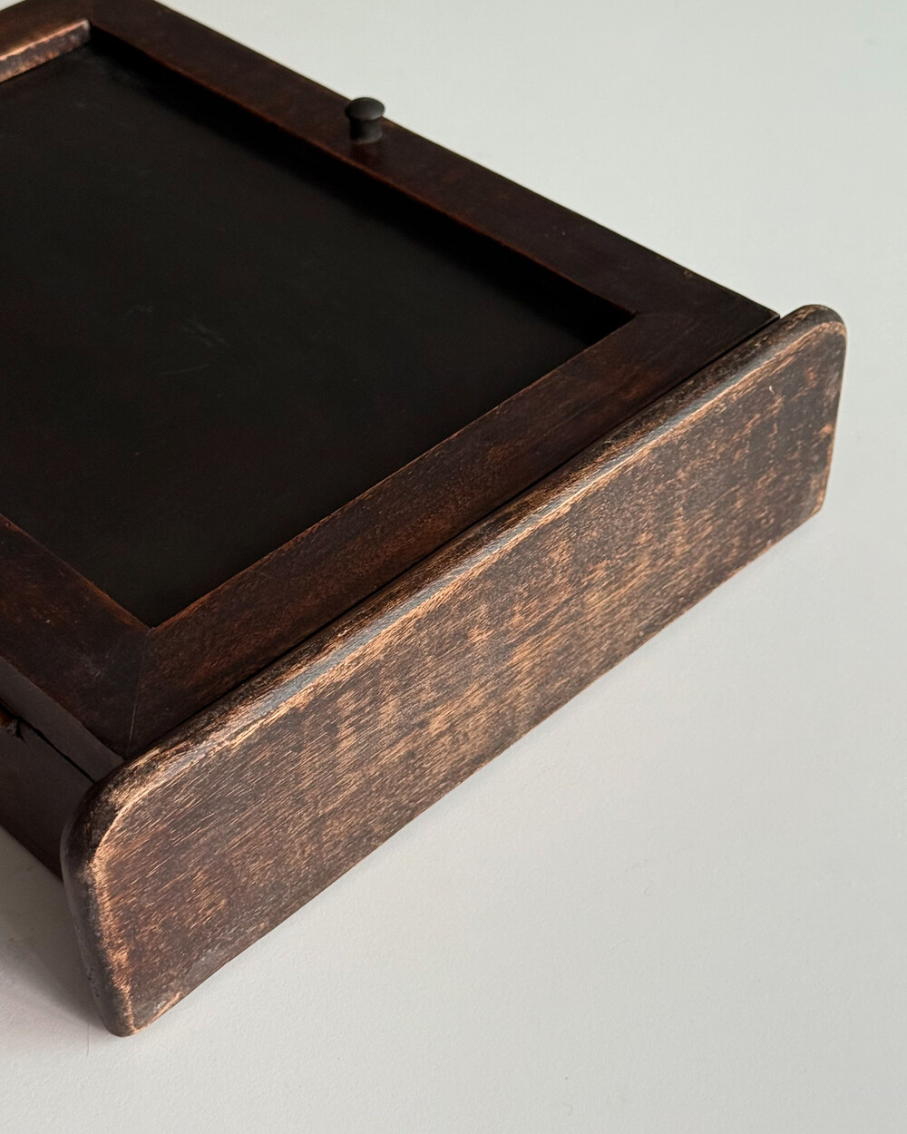 1970년대 서독에서 제작된 빈티지 열쇠 수납함입니다. 자연스러운 세월감이 뭍어있는 짙은 고동색 목재 프레임으로, 내부에는 8개의 열쇠 걸이, 하단에는 가방이나 소품용 금속 후크 3개로 구성되어 있습니다.