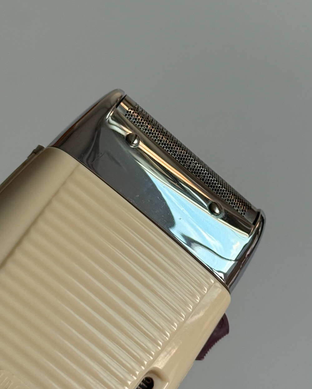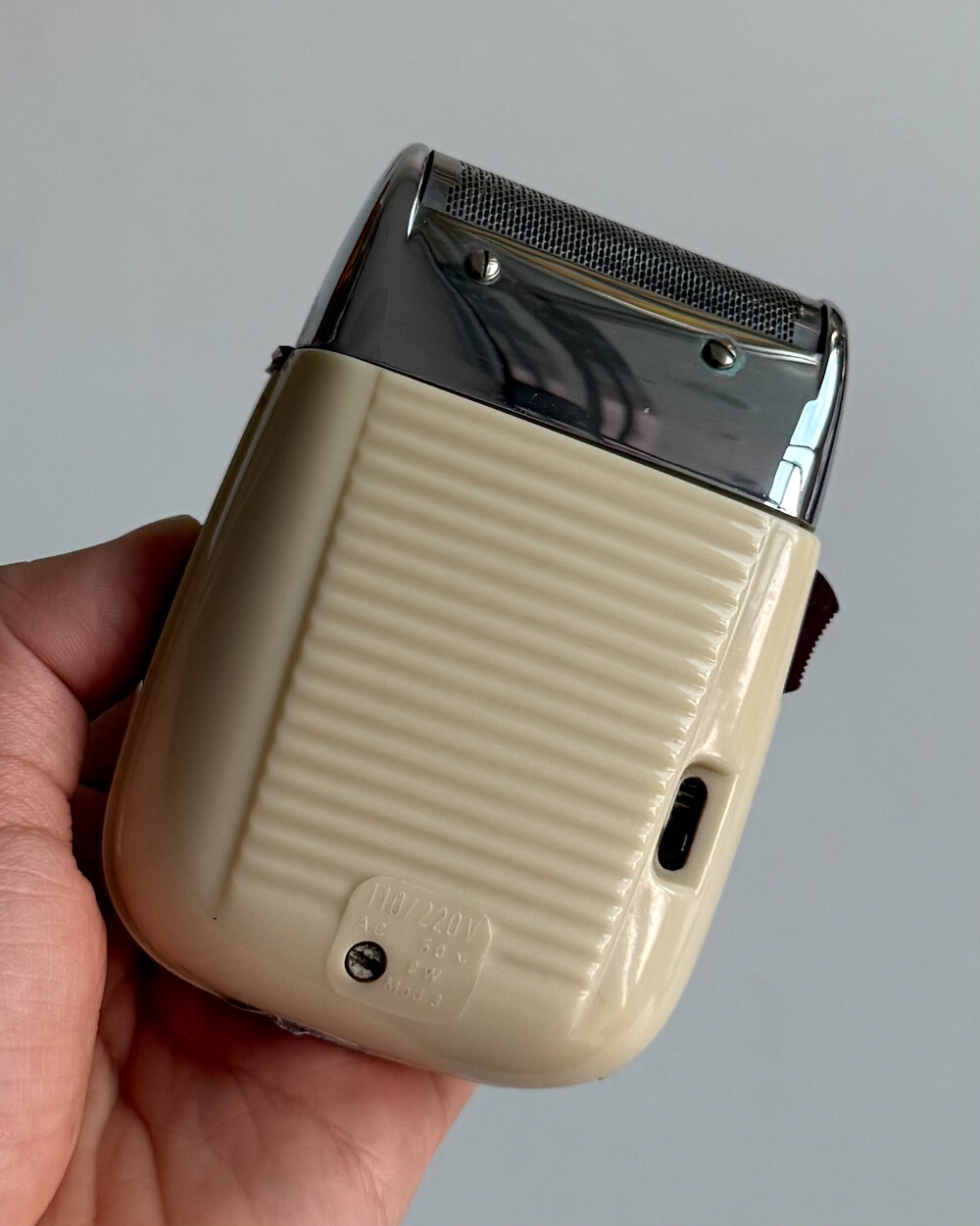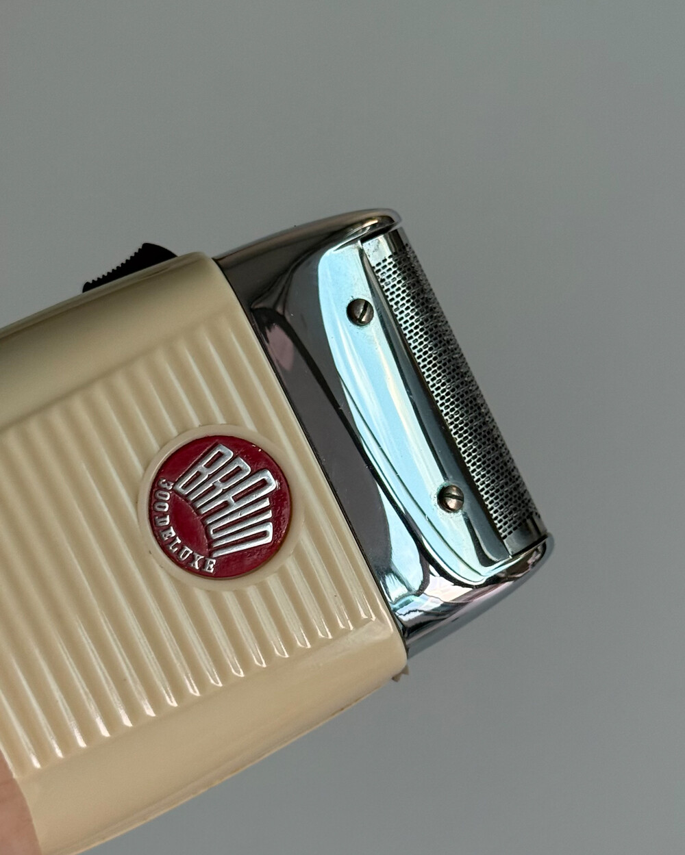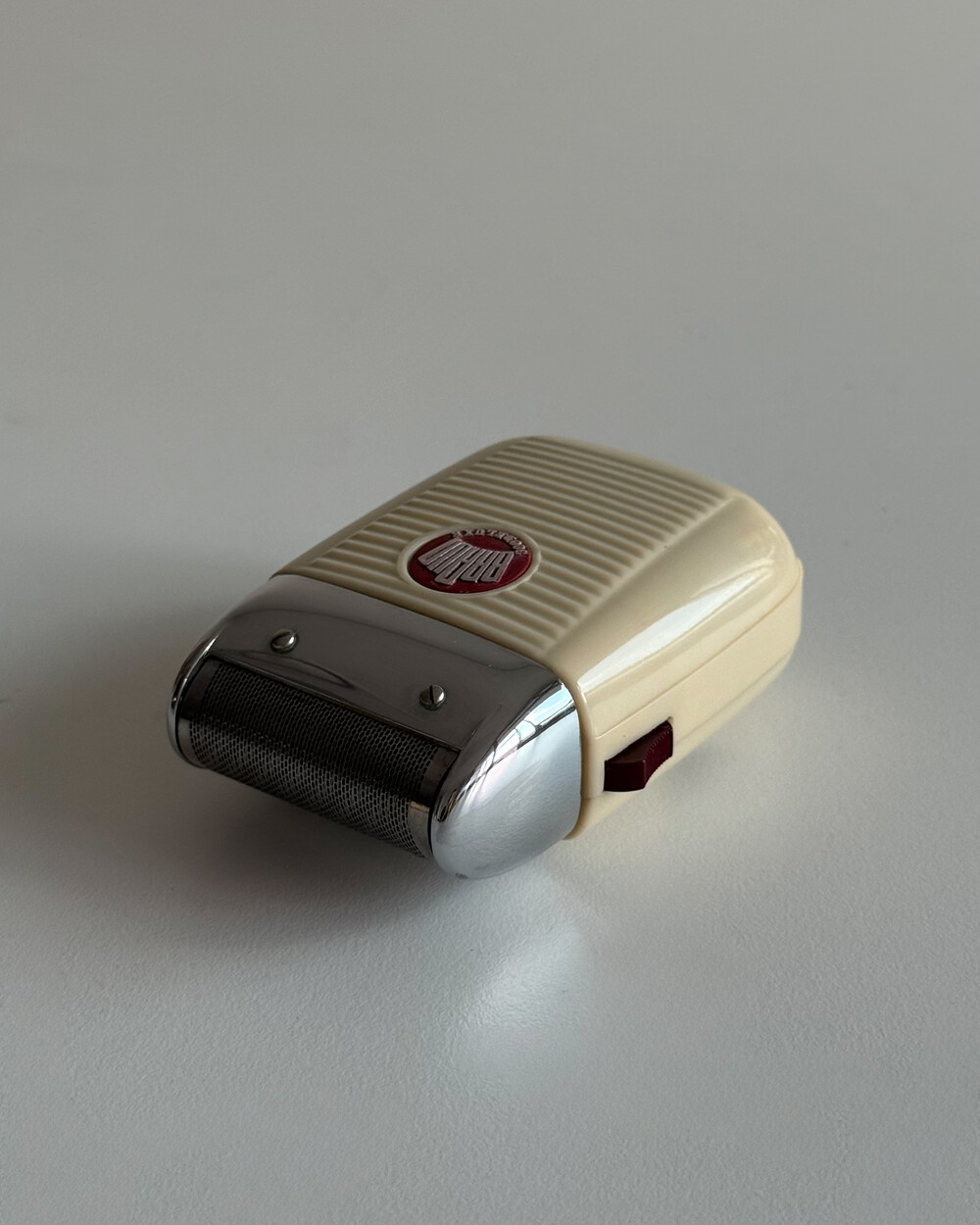 1953년 Artur Braun와 Bodo Fütterer에 의해 디자인된 브라운의 초기 면도기 모델 300 Deluxe 입니다. S50,S52와 같은 이전 모델에서 확연히 탈피한 첫 디자인으로 이후 브라운 전기면도기 디자인의 기준으로 자리 잡았습니다. 묵직한 그립감이 큰 특징이며, 미니멀 디자인 철학이 고스란히 담겨있는 제품으로, 하나의 전원 스위치만을 두어 직관적으로 사용할 수 있도록 설계했습니다.