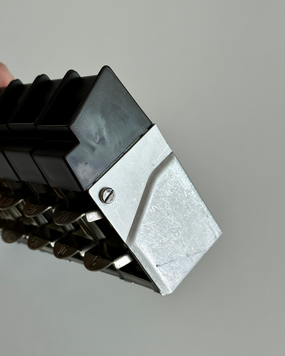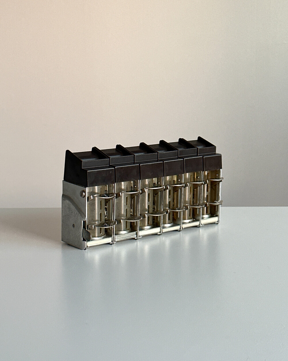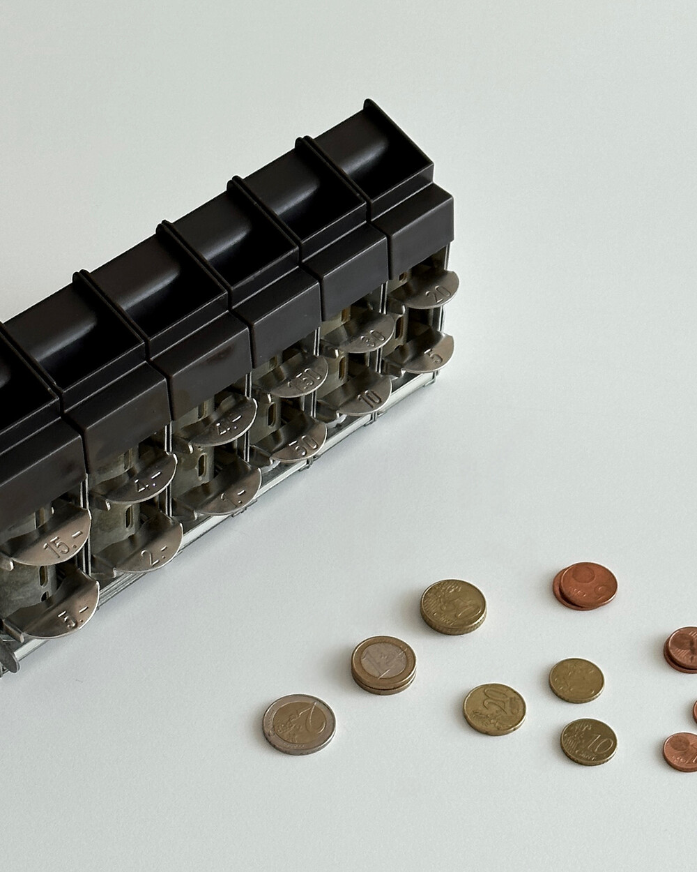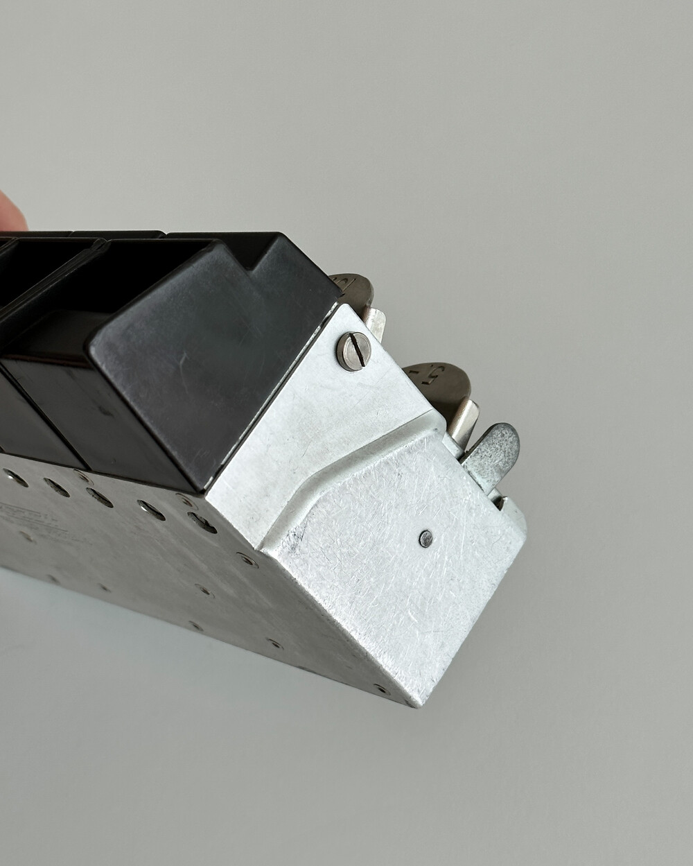 1960년대 서독일에서 생산되었던 빈티지 코인 디스펜서입니다. 상단 홀을 통해 동전을 넣을 수 있으며, 원하는 액수의 버튼을 누르면 하단으로 동전이 나오는 형태로 이루어져 있습니다. 당시 화폐였던 도이치 마르크(DM) 에 적합한 동전 규격으로 이루어져 실사용은 어려우나, 당시 시대를 잘 나타내주는 아이템으로 빈티지 소품으로 활용하기 좋습니다.