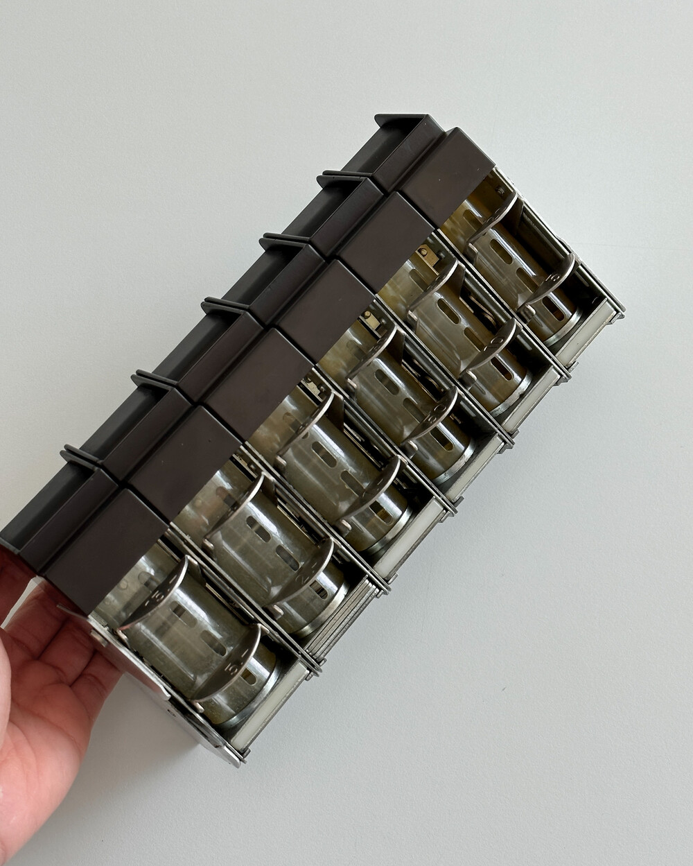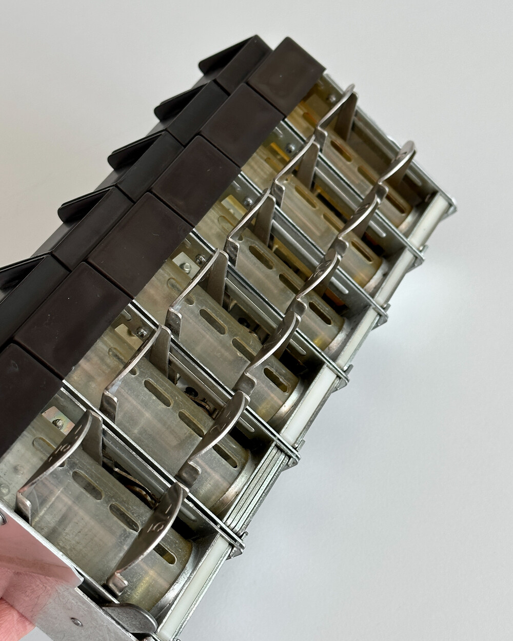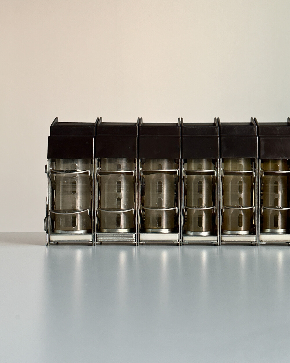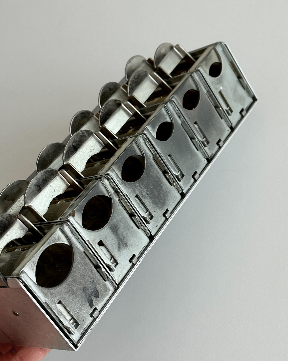 1960년대 서독일에서 생산되었던 빈티지 코인 디스펜서입니다. 상단 홀을 통해 동전을 넣을 수 있으며, 원하는 액수의 버튼을 누르면 하단으로 동전이 나오는 형태로 이루어져 있습니다. 당시 화폐였던 도이치 마르크(DM) 에 적합한 동전 규격으로 이루어져 실사용은 어려우나, 당시 시대를 잘 나타내주는 아이템으로 빈티지 소품으로 활용하기 좋습니다.