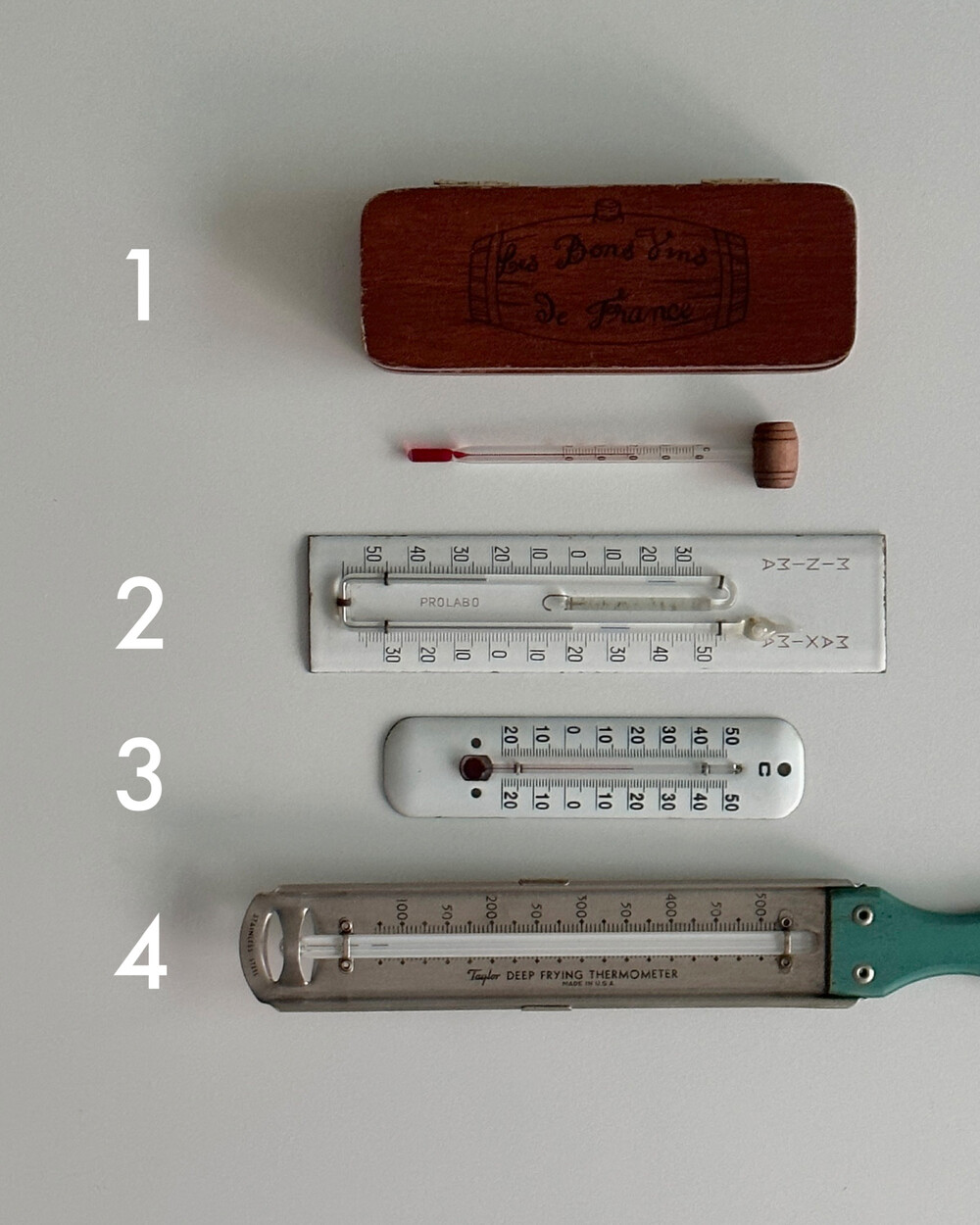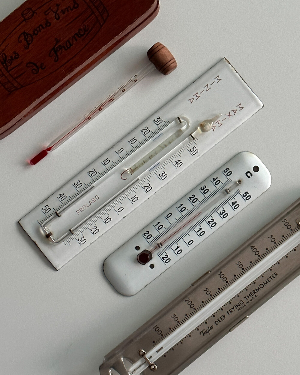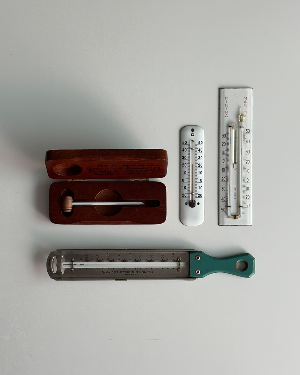 50~70년도 생산되었던 빈티지 온도계입니다. 와인 온도 측정, 실험실, 요리 등에서 사용되었던 다양한 형태의 온도계입니다. 빈티지한 공간의 소품으로 활용하시기에 좋습니다.