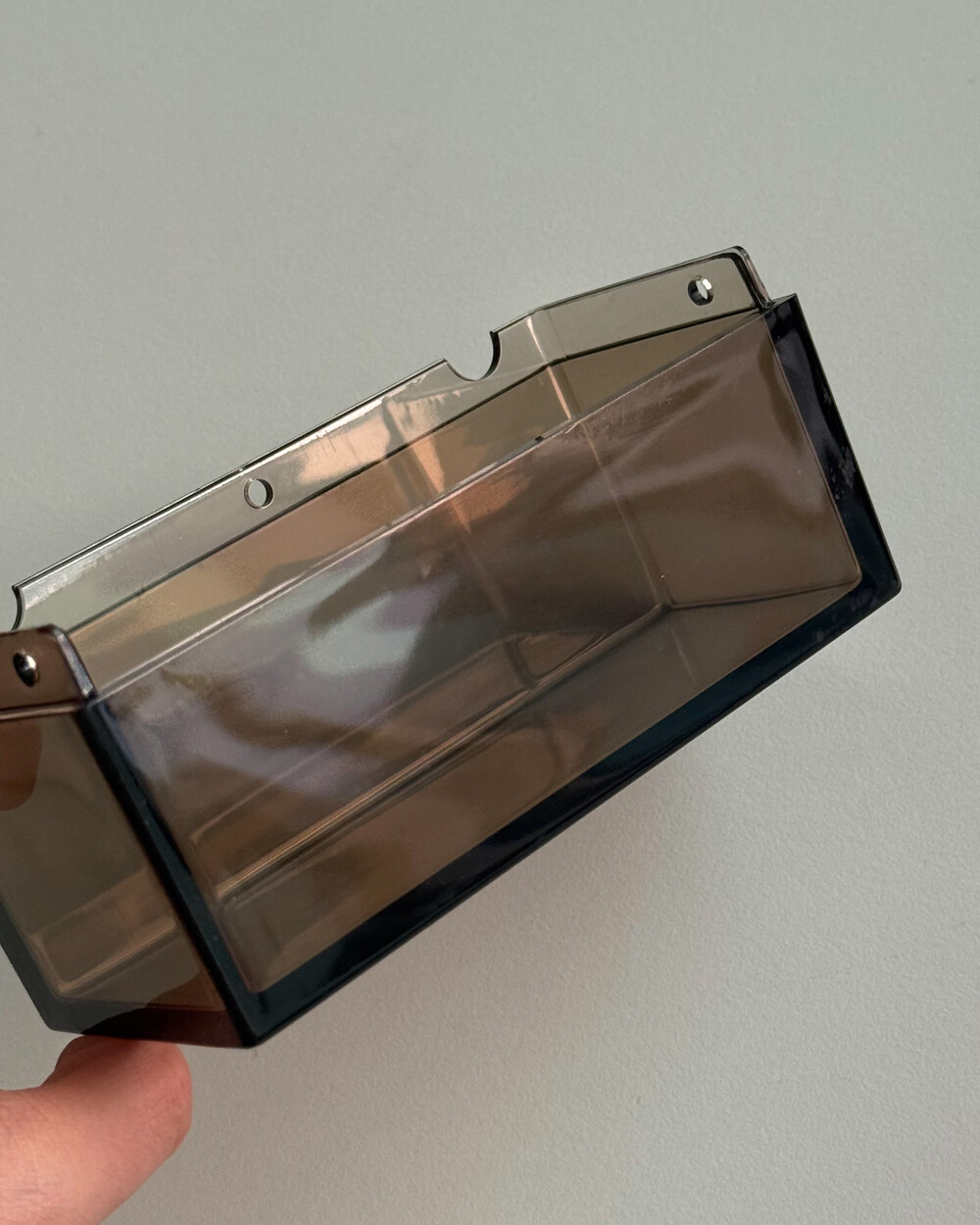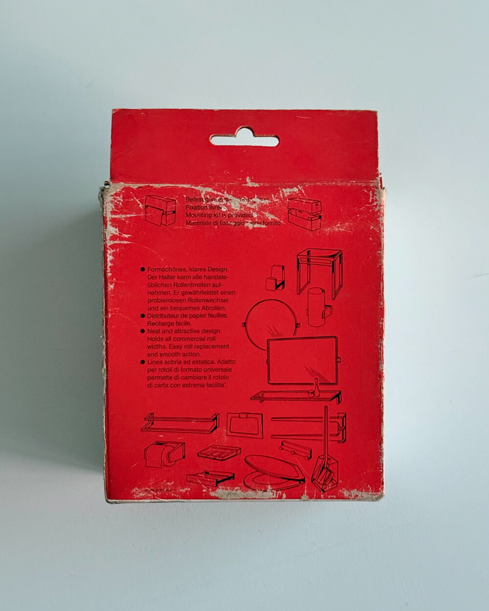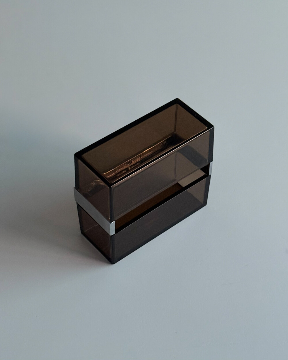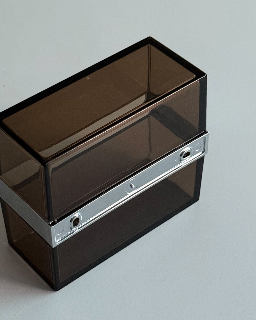 1970년대 프랑스 ALLIBERT에서 제작된 토일렛 페이퍼 디스펜서입니다. 벽에 고정하여 사용하는 구조로, 스모크 브라운 컬러의 반투명 플라스틱으로 제작되어 내부 잔량을 쉽게 확인할 수 있습니다. 간결한 직선 형태와 미드센추리 감각의 컬러가 특징으로, 욕실뿐 아니라 스튜디오나 상업 공간에서도 활용하기 좋습니다. 해당 제품은 대중적으로 잘 알려진 ‘ALLIBERT 미러’와 함께 소개된 동일 라인의 모델로, 현재는 보기 드문 아이템 중 하나입니다.