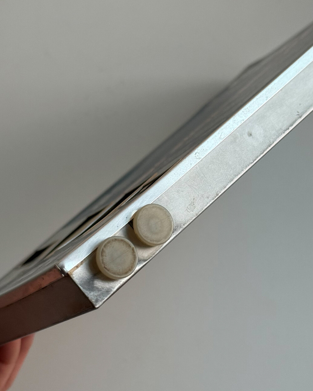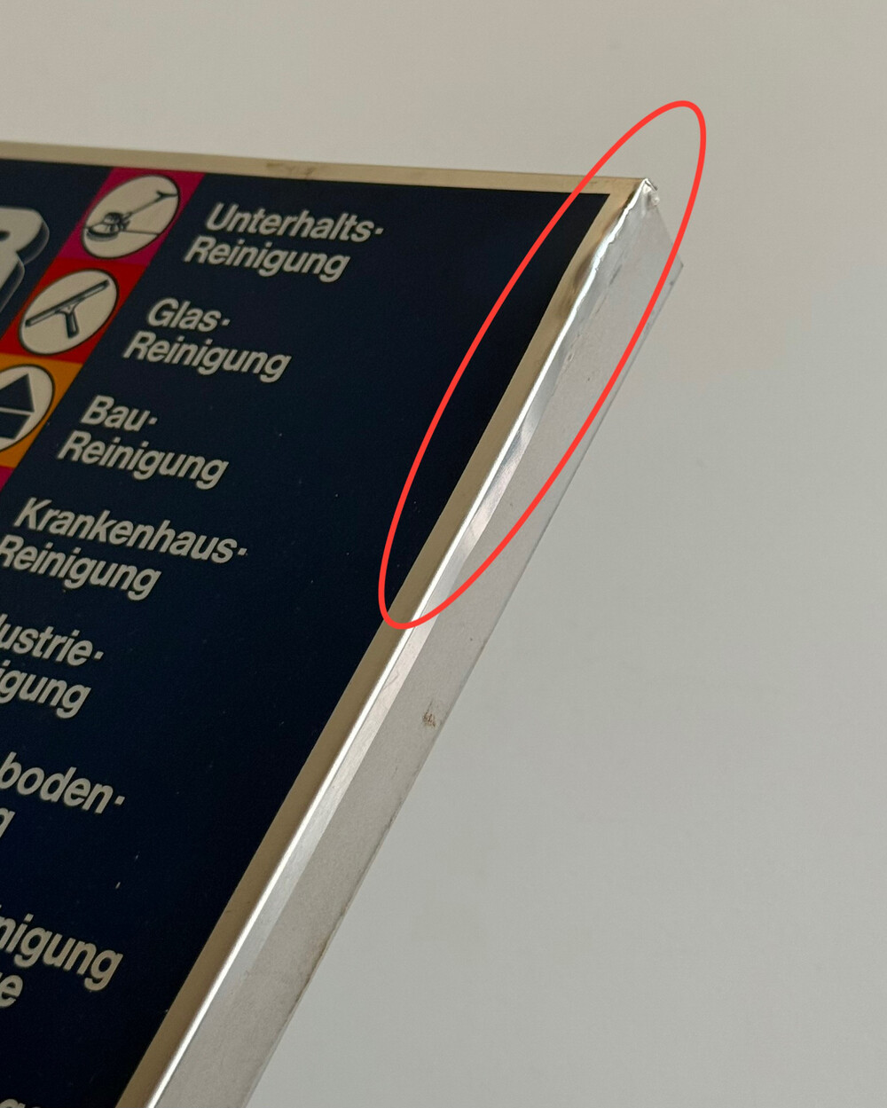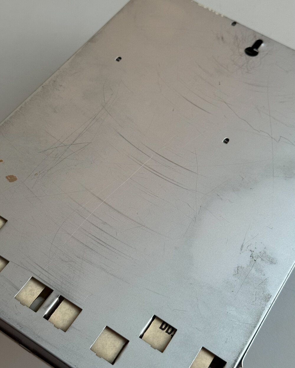 알루미늄 소재 특성상 모서리에 미세한 눌림과 사용감이 있습니다.