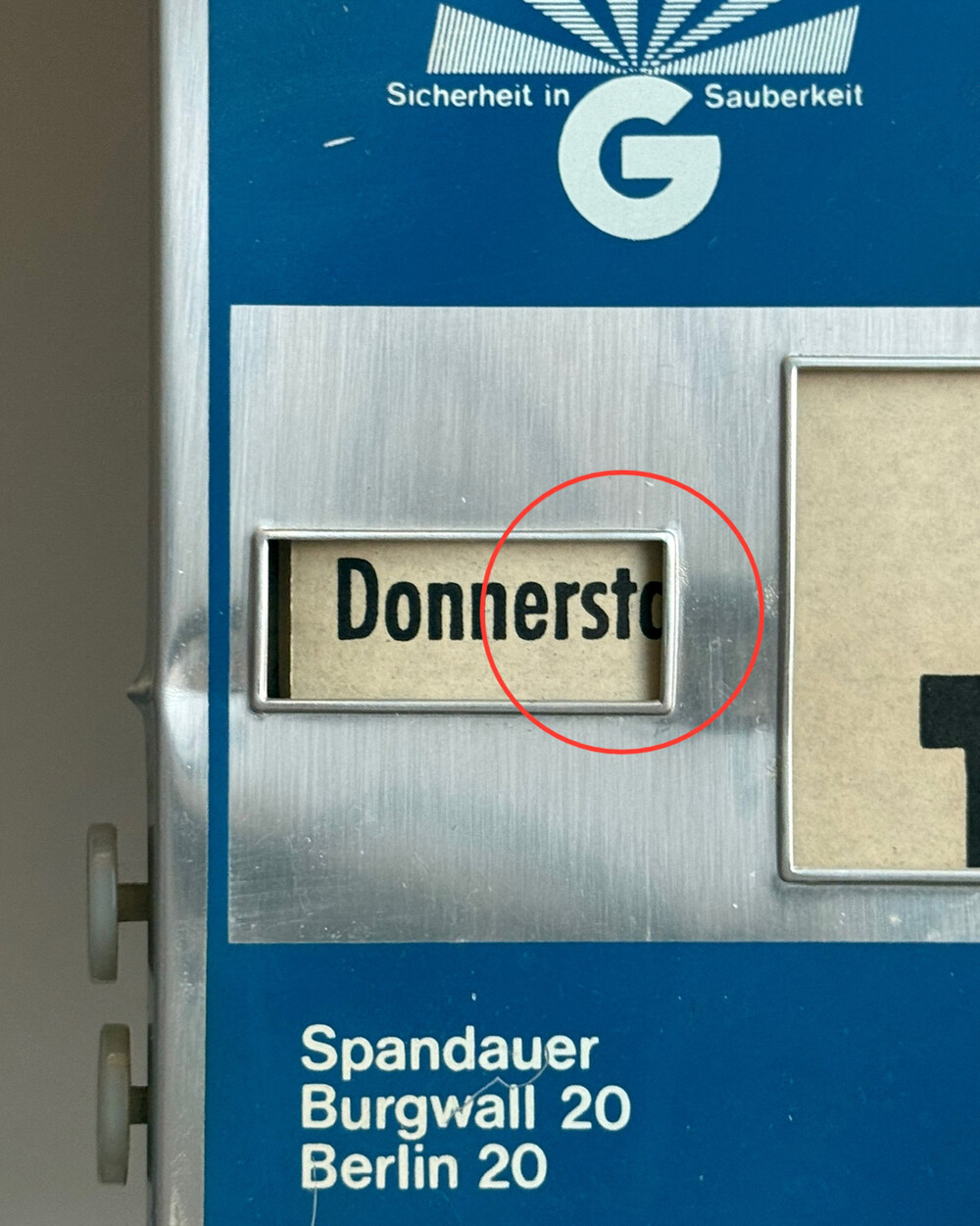 목요일(Donnerstag) 은 일부 가려져 나타납니다.