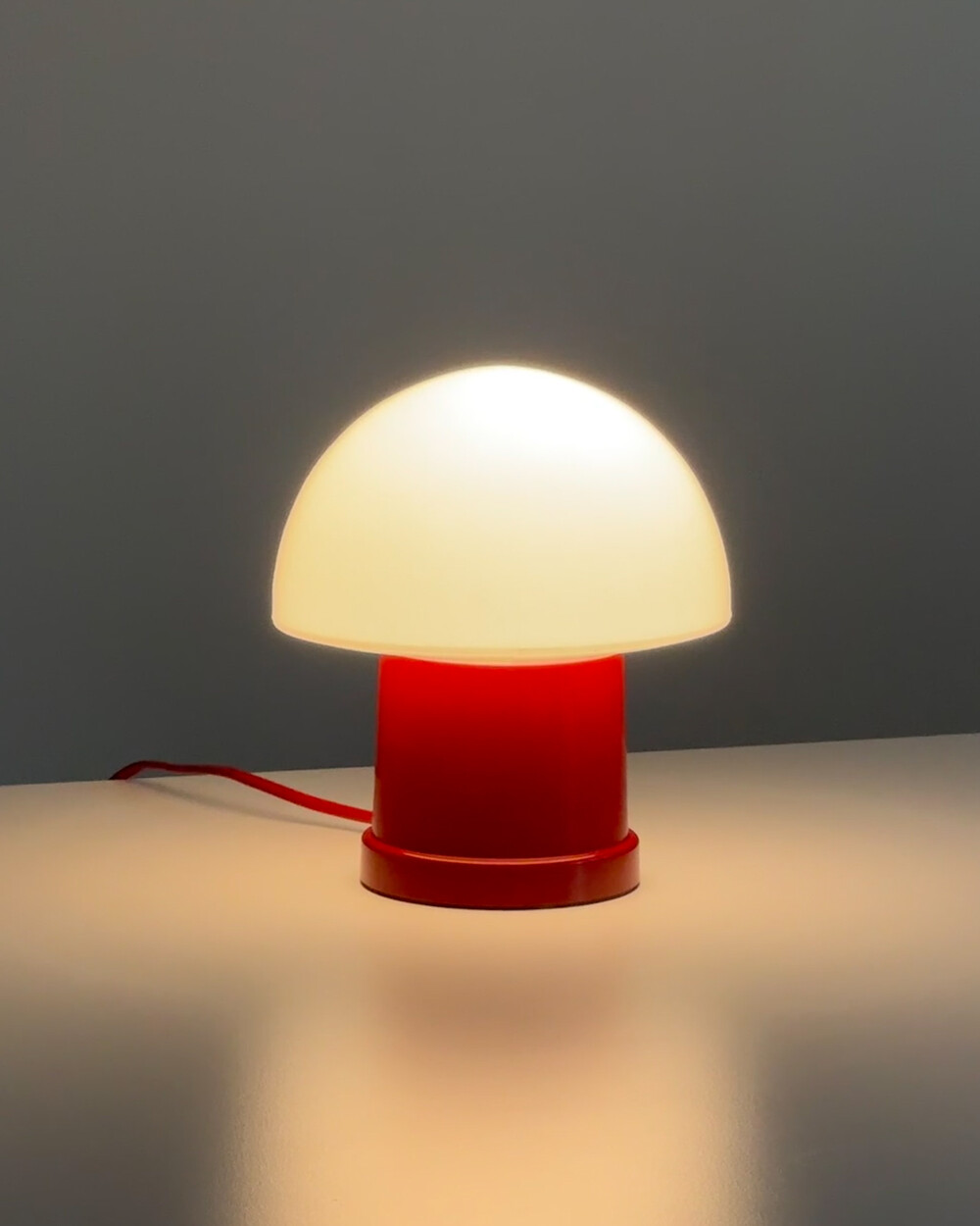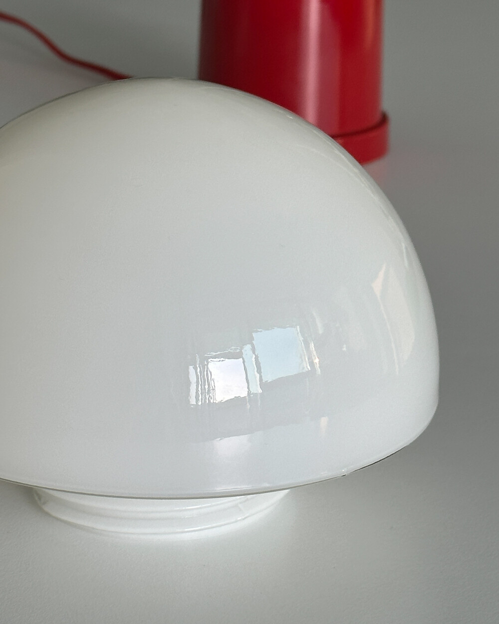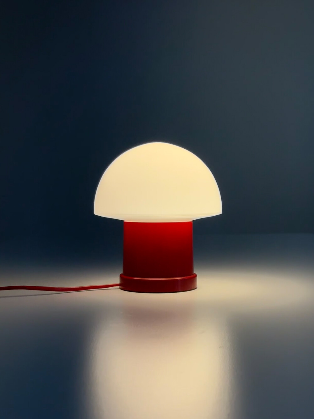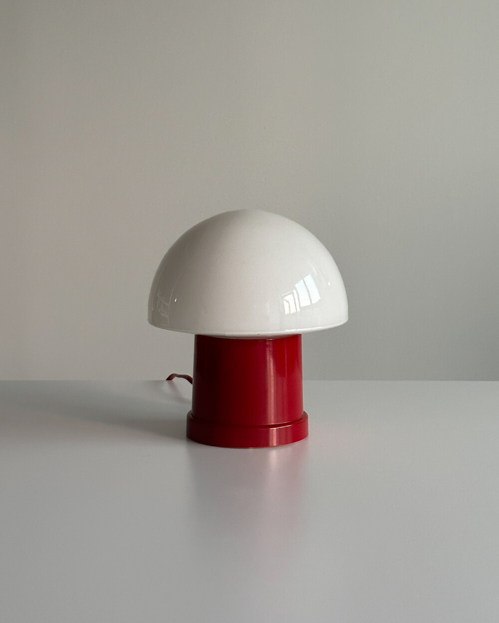 70년도 생산되었던 MASSIVE 사의 테이블 램프입니다. MASSIVE(Lustrerie Massive) 사는 1926년 설립된 벨기에의 전통있는 조명 회사로, 독창적인 디자인과 고품질 제품로 유명합니다. 포인트가 되어주는 레드 플라스틱 베이스와 머쉬룸 쉐이드 글라스로 이루어져있습니다. 침실 또는 거실에서 무드등으로 사용하기 적합하며, 공간에서 귀여운 포인트가 되어줍니다.