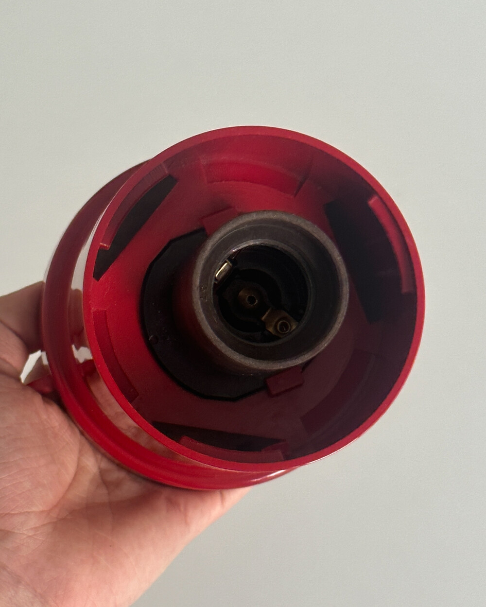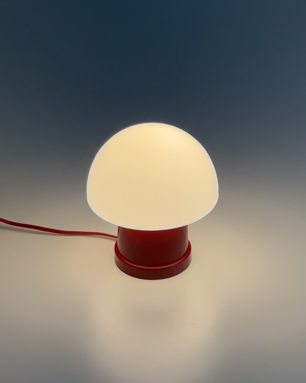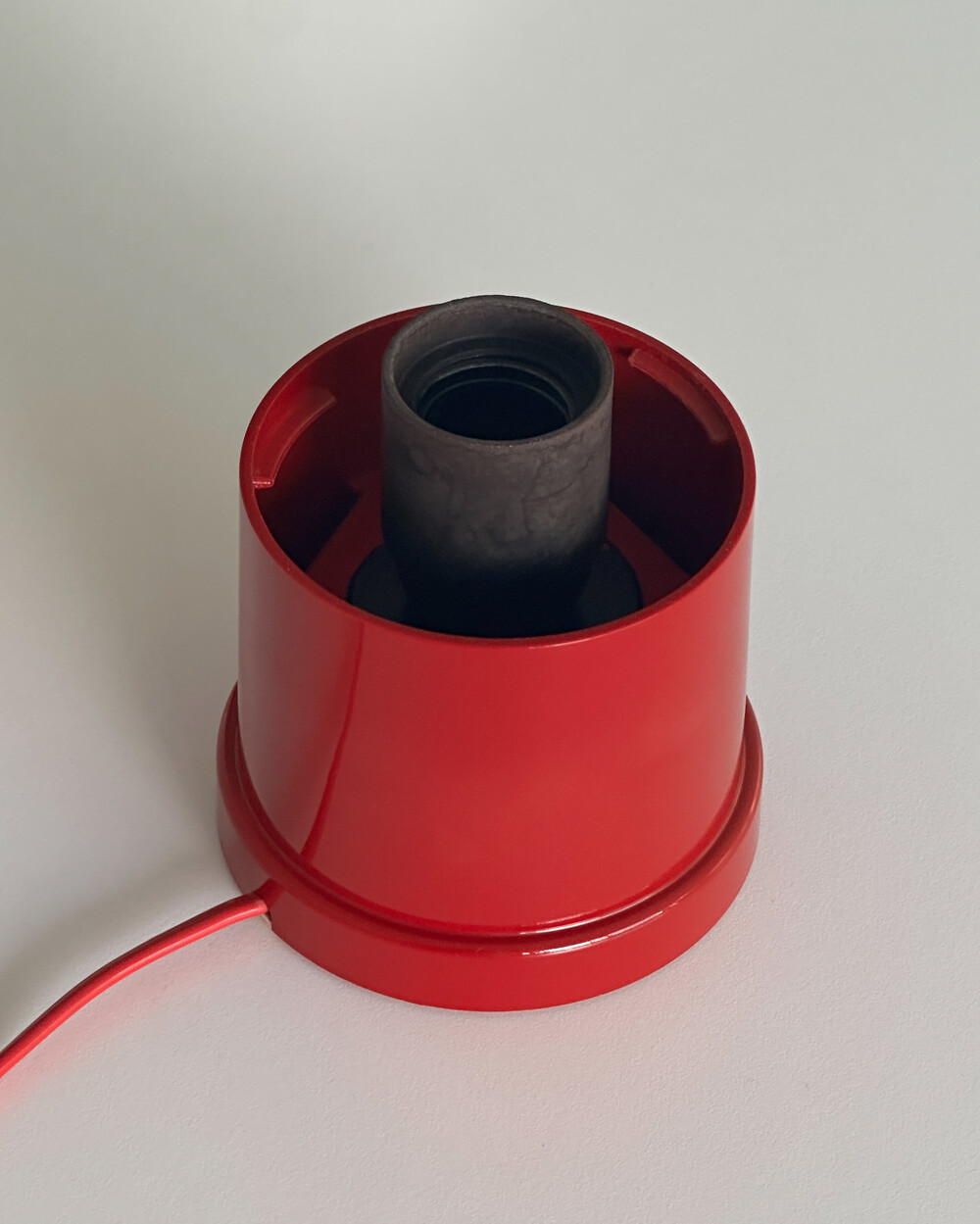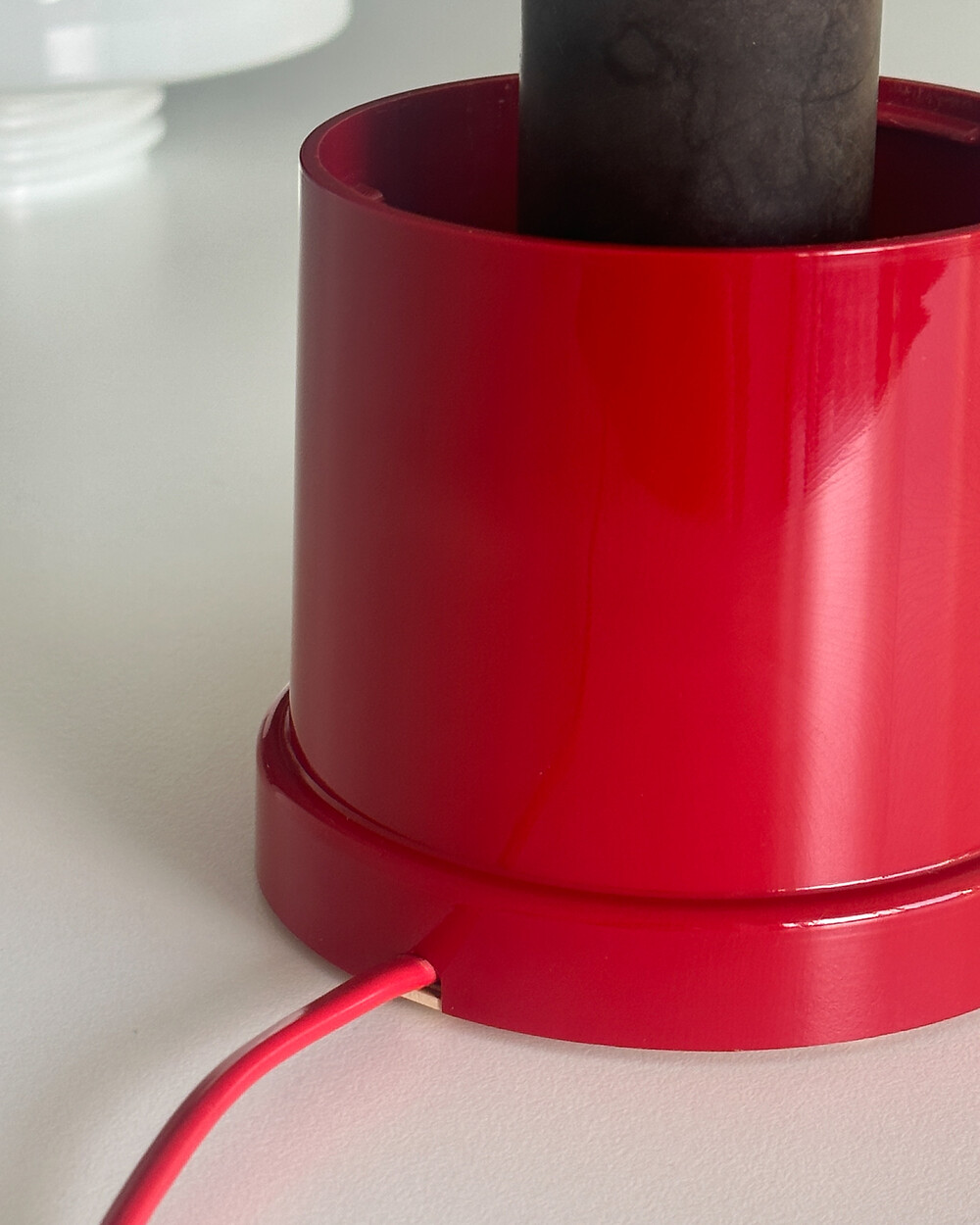 70년도 생산되었던 MASSIVE 사의 테이블 램프입니다. MASSIVE(Lustrerie Massive) 사는 1926년 설립된 벨기에의 전통있는 조명 회사로, 독창적인 디자인과 고품질 제품로 유명합니다. 포인트가 되어주는 레드 플라스틱 베이스와 머쉬룸 쉐이드 글라스로 이루어져있습니다. 침실 또는 거실에서 무드등으로 사용하기 적합하며, 공간에서 귀여운 포인트가 되어줍니다.
