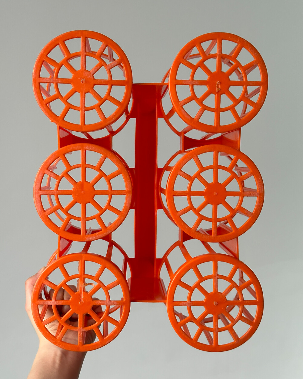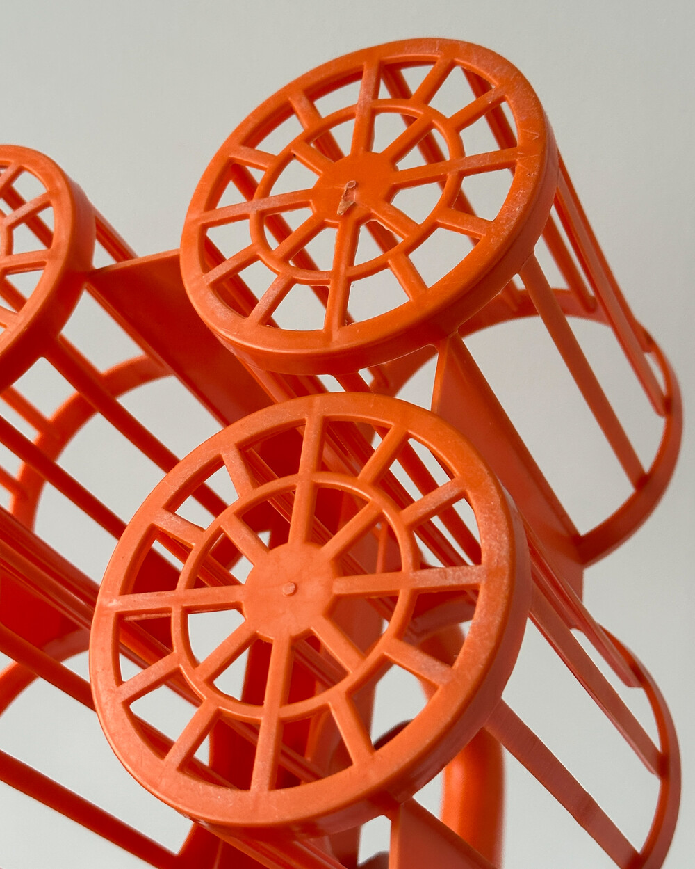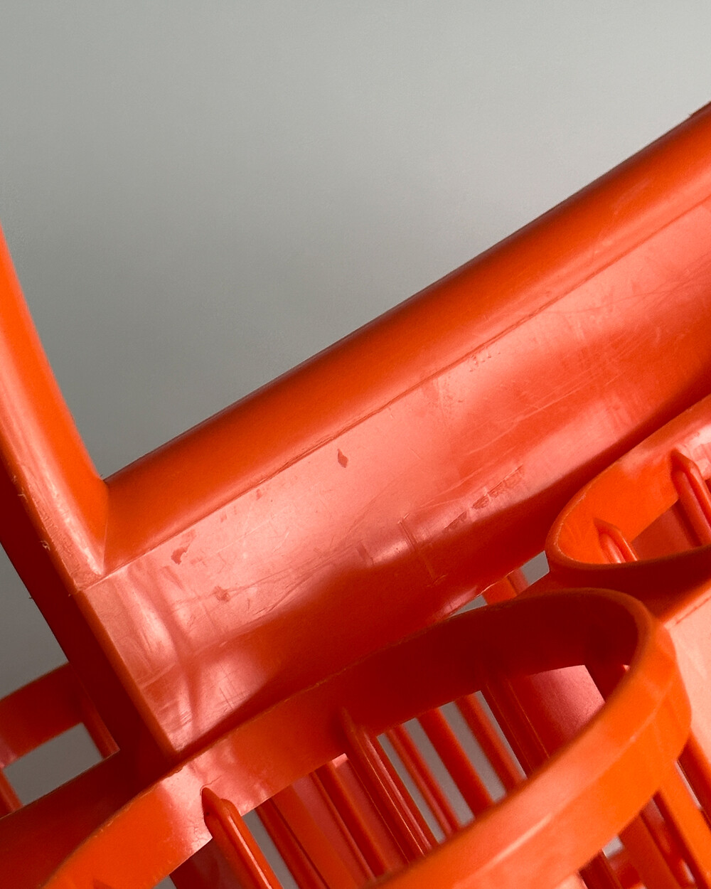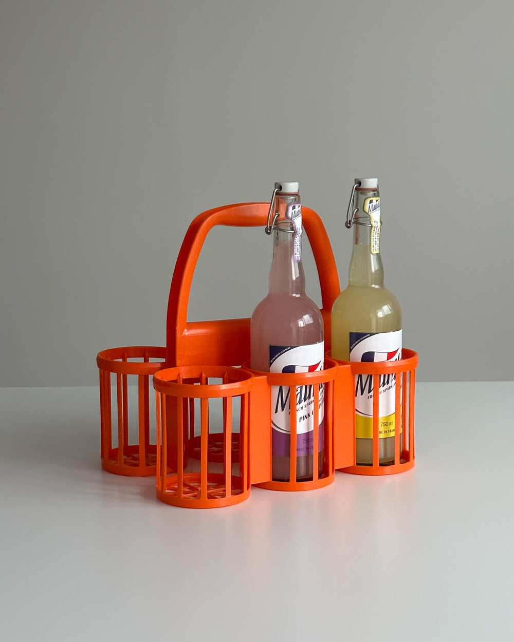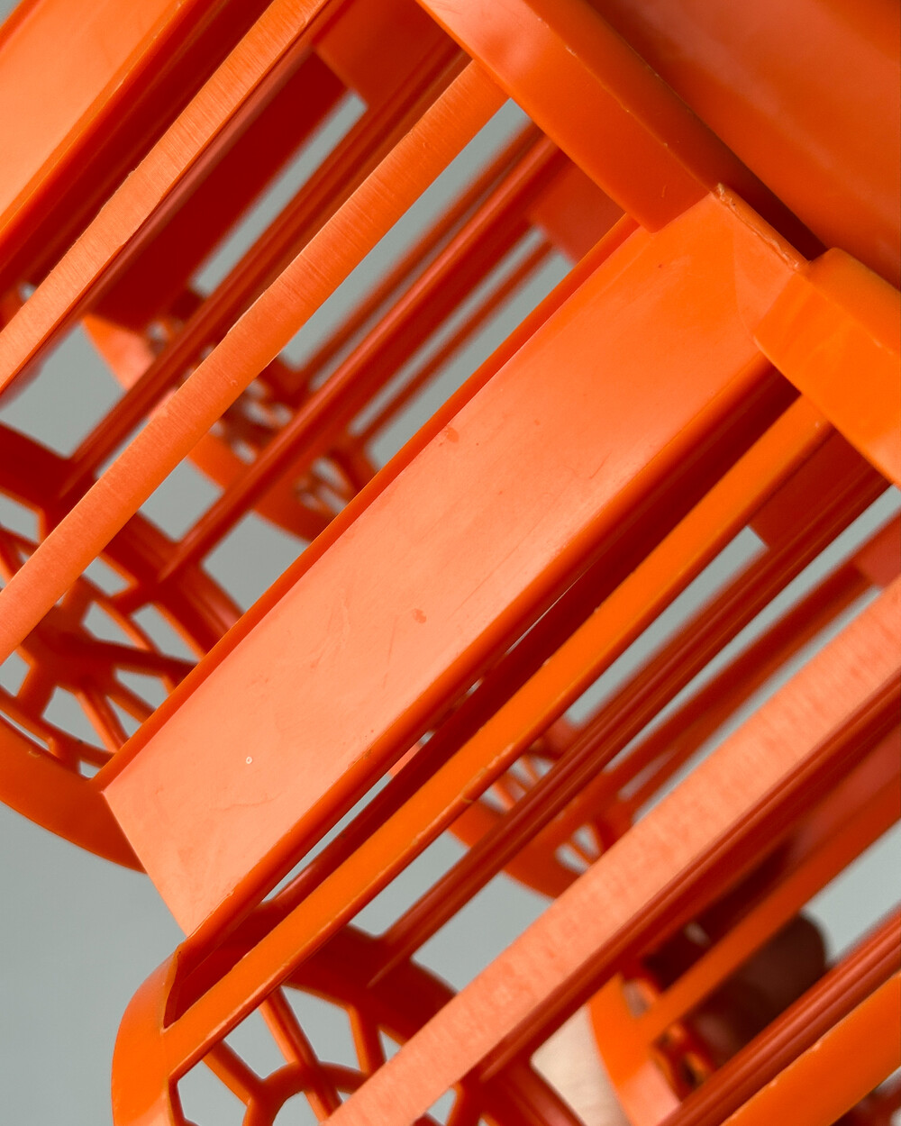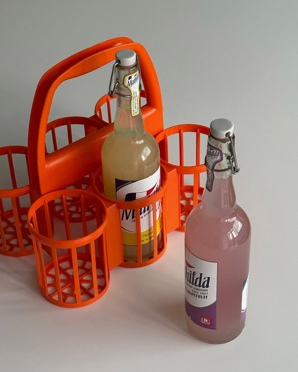60년도 생산되었던 빈티지 보틀 홀더입니다. 오렌지 컬러의 플라스틱 소재로 이루어져 있으며, 최대 6개의 보틀을 수납할 수 있습니다. 포인트 소품으로 활용하기에도 좋은 아이템입니다.