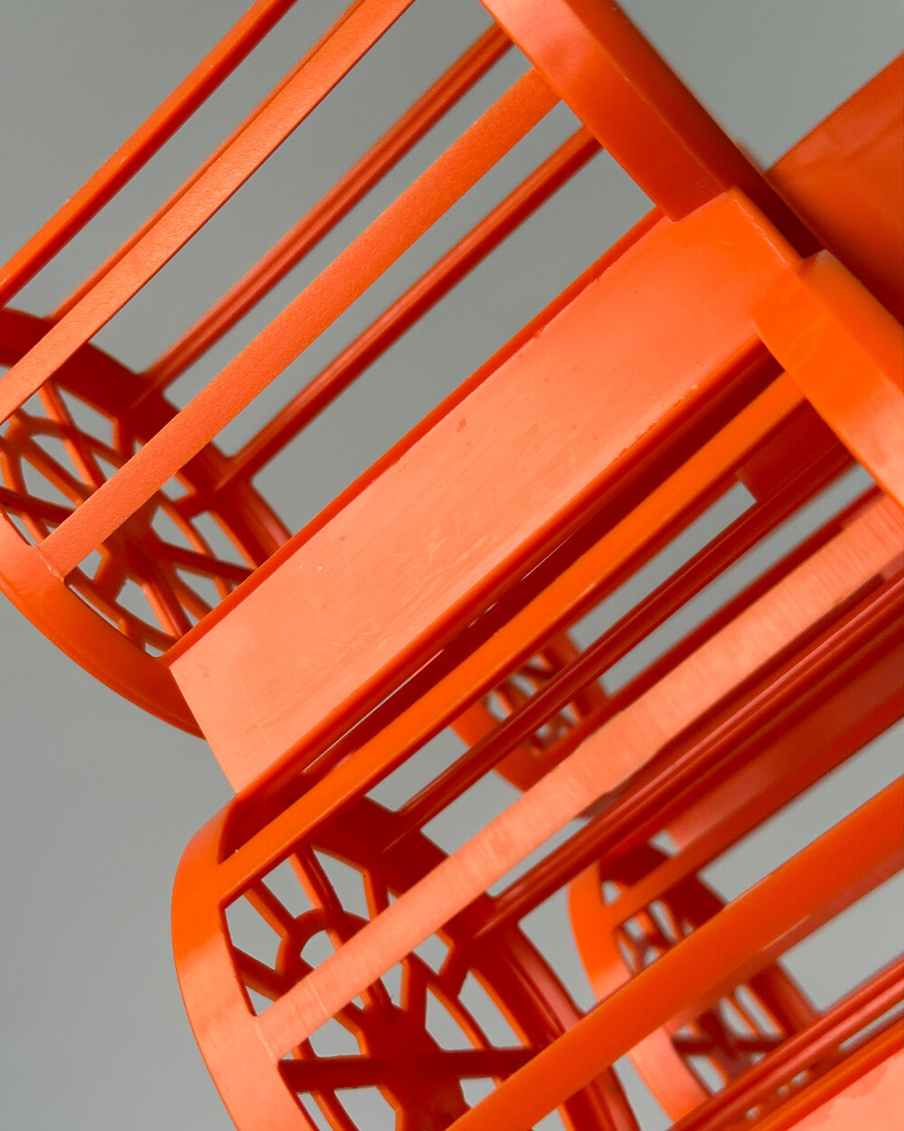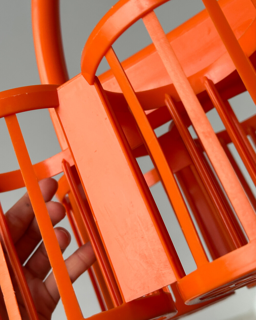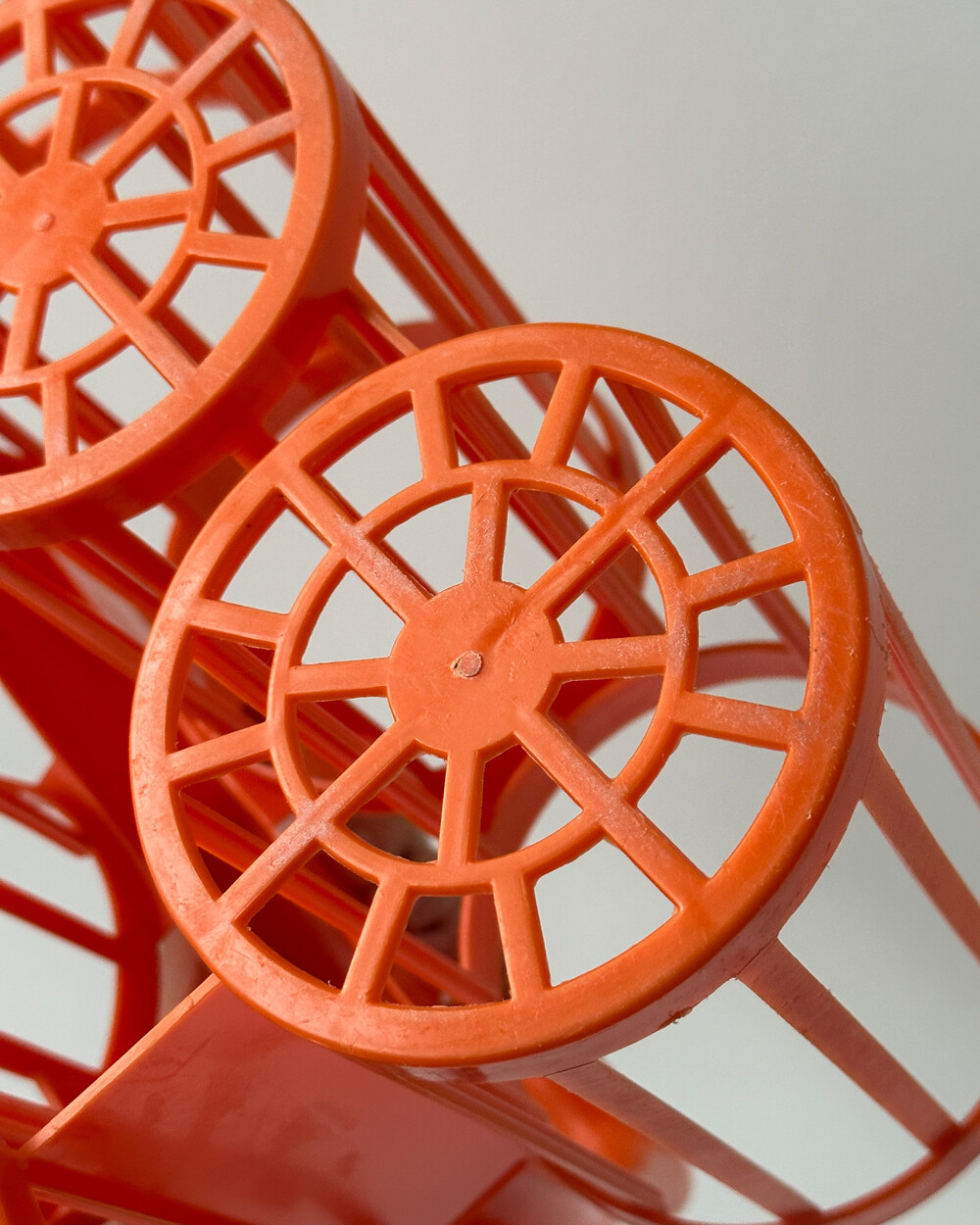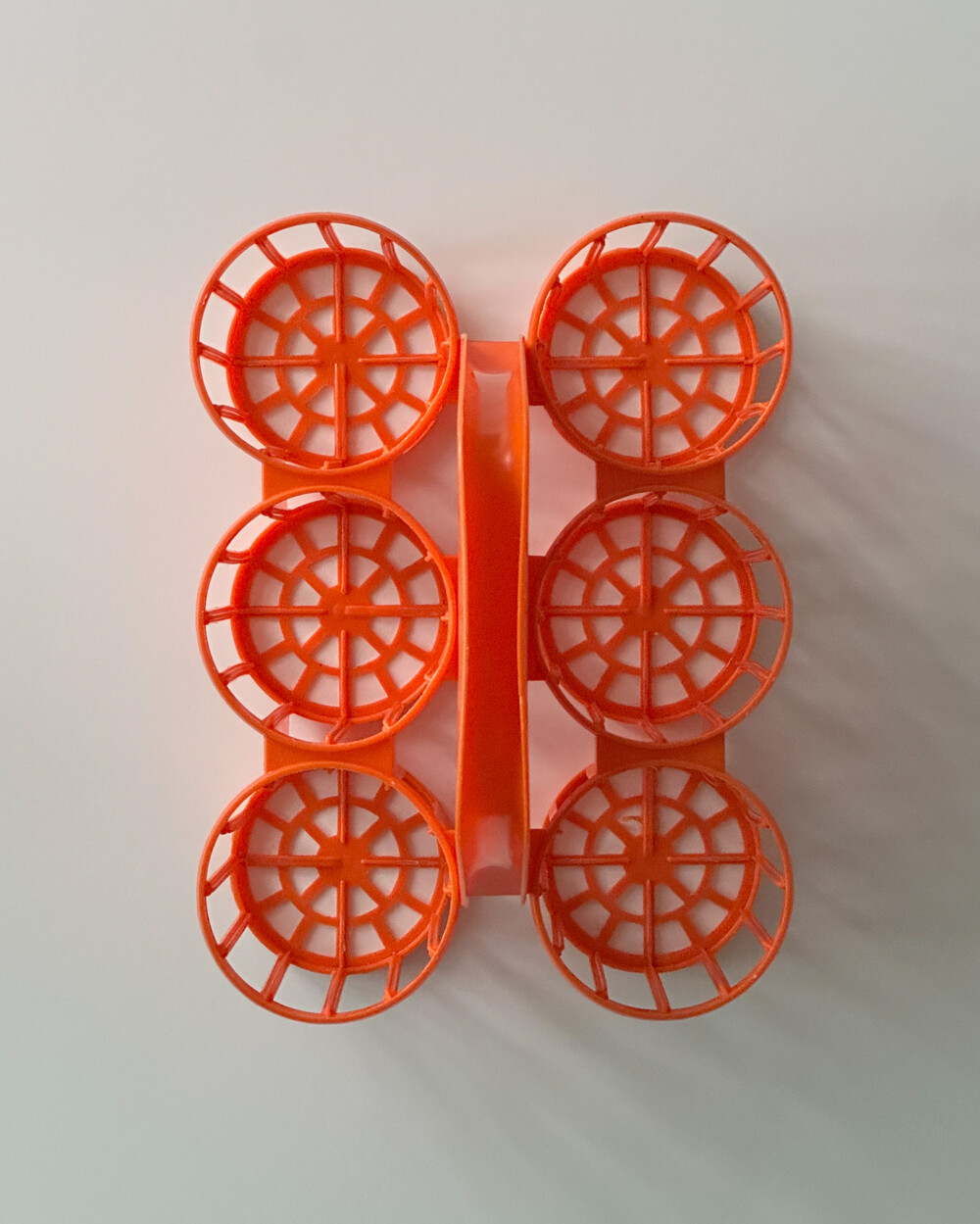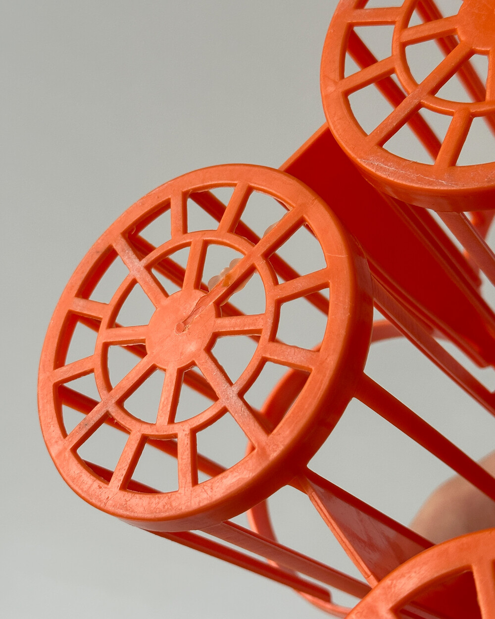 60년도 생산되었던 빈티지 보틀 홀더입니다. 오렌지 컬러의 플라스틱 소재로 이루어져 있으며, 최대 6개의 보틀을 수납할 수 있습니다. 포인트 소품으로 활용하기에도 좋은 아이템입니다.