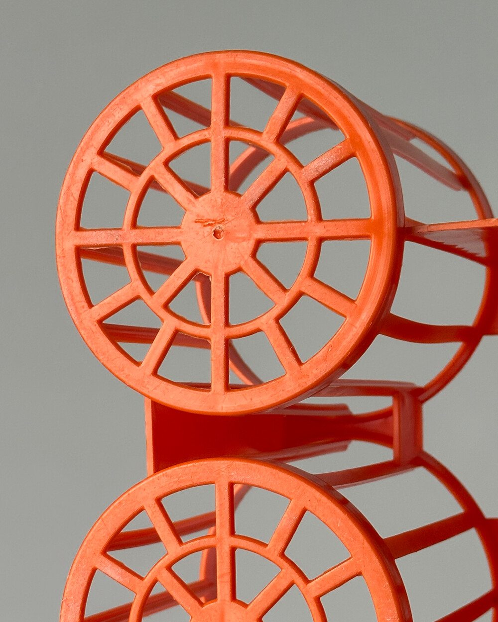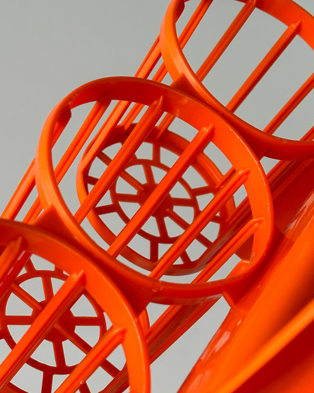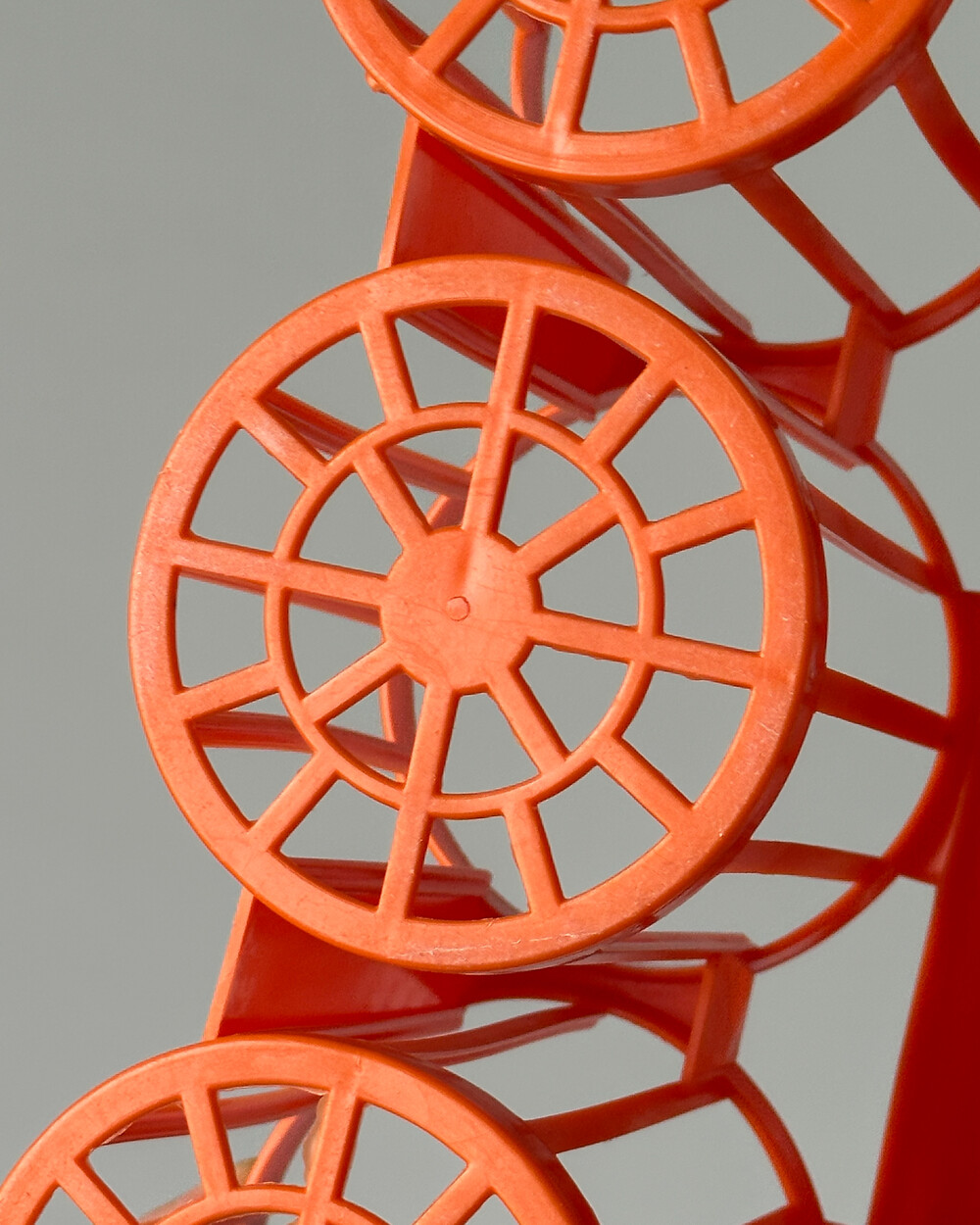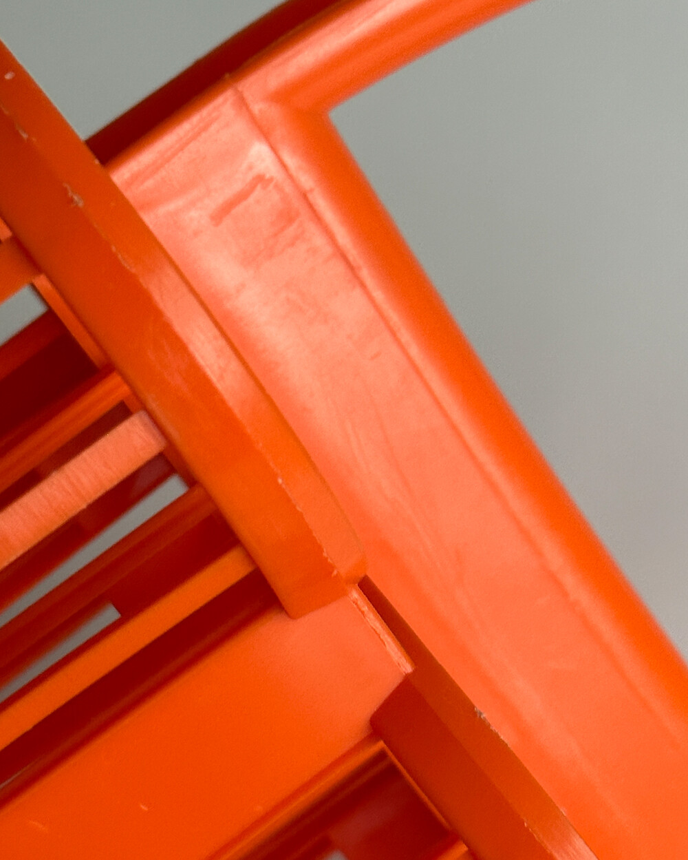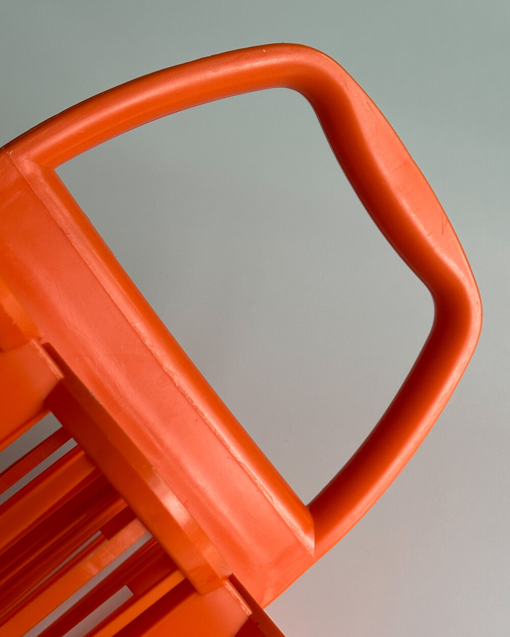60년도 생산되었던 빈티지 보틀 홀더입니다. 오렌지 컬러의 플라스틱 소재로 이루어져 있으며, 최대 6개의 보틀을 수납할 수 있습니다. 포인트 소품으로 활용하기에도 좋은 아이템입니다.