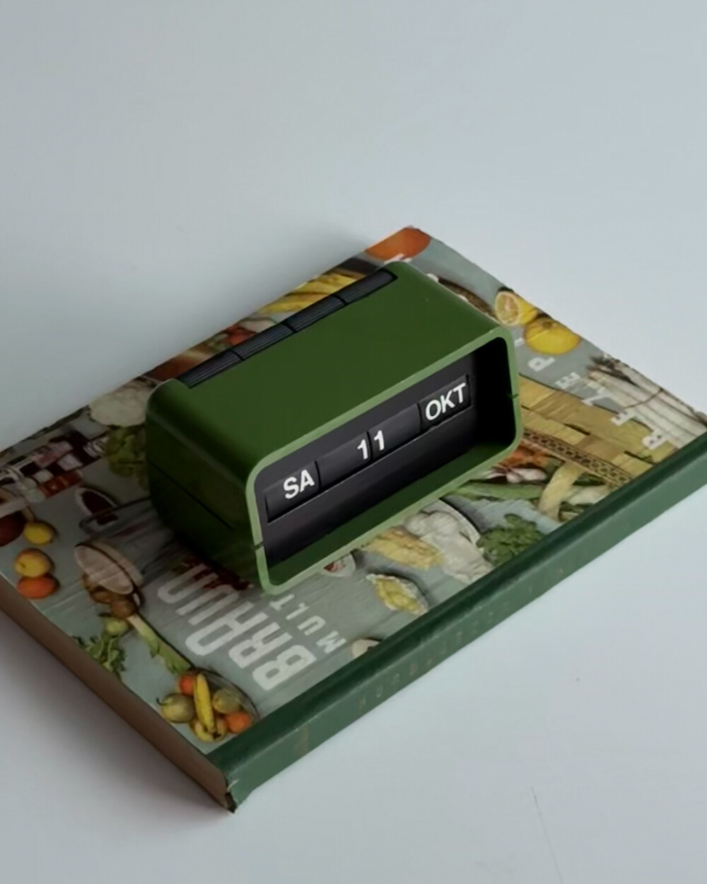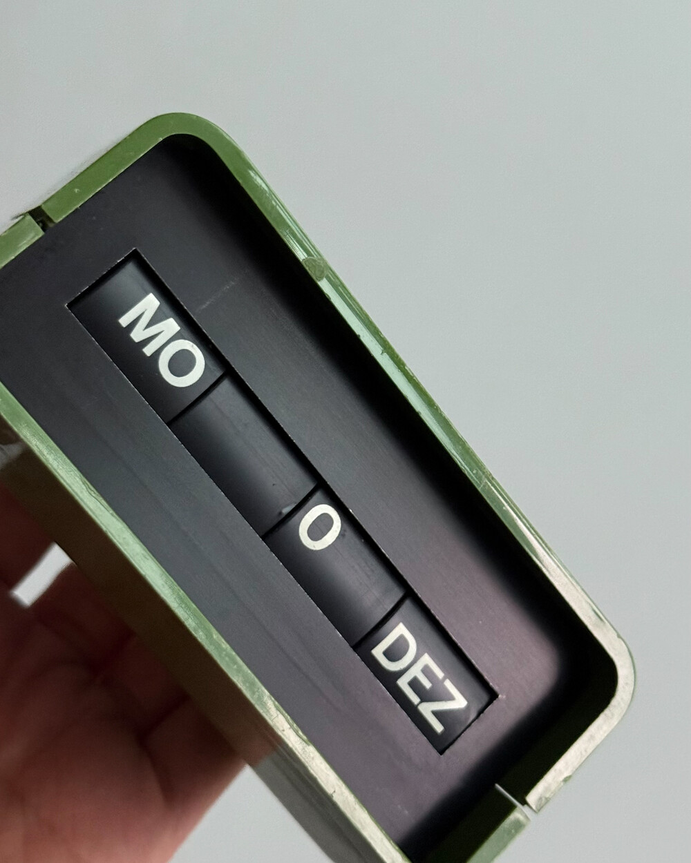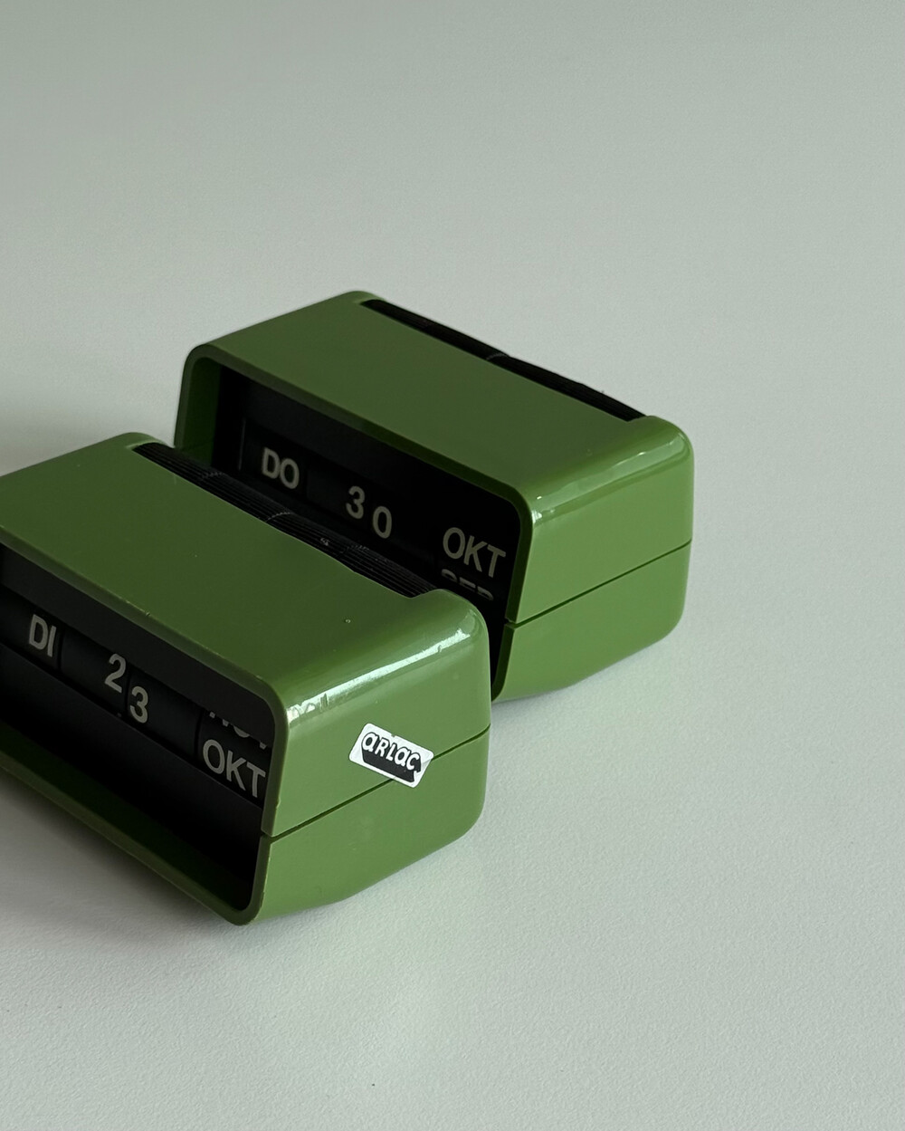 1970년대 독일 데스크용품회사인 Arlac에서 제작된 빈티지 퍼페추얼 데스크 캘린더 Dati 입니다. 배터리 없이 수동으로 넘겨가며 사용하는 만년 캘린더로, 상단에 있는 4개의 상단의 다이얼을 돌려 요일/일/월 을 설정할 수 있어 셋팅과 사용에 제한이 없습니다.