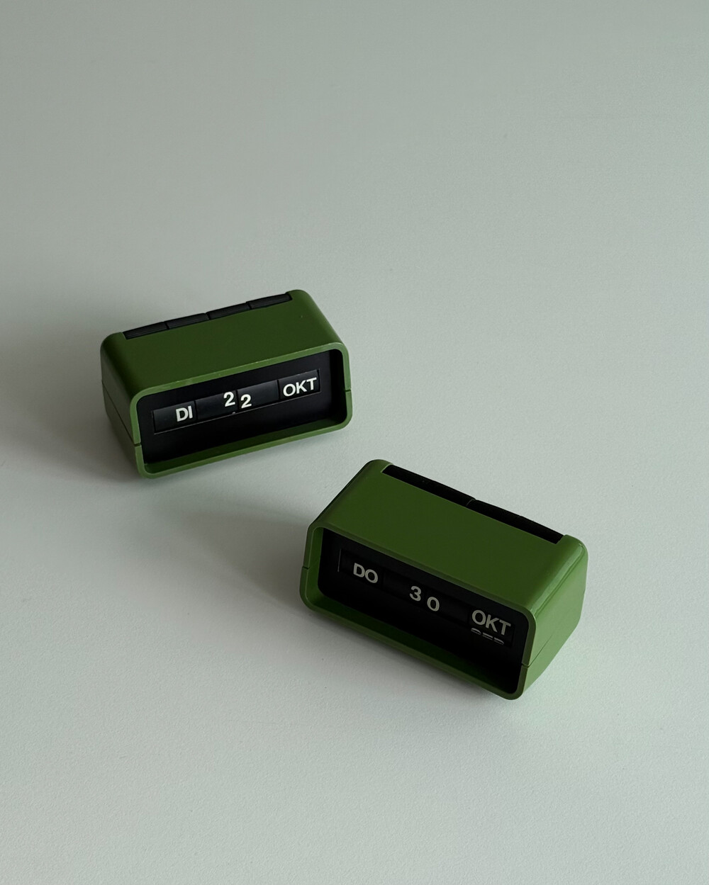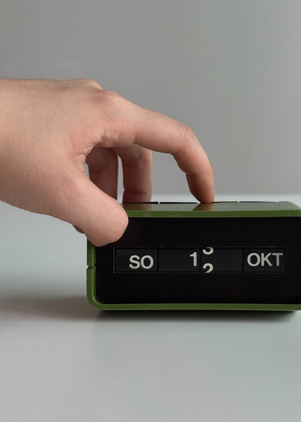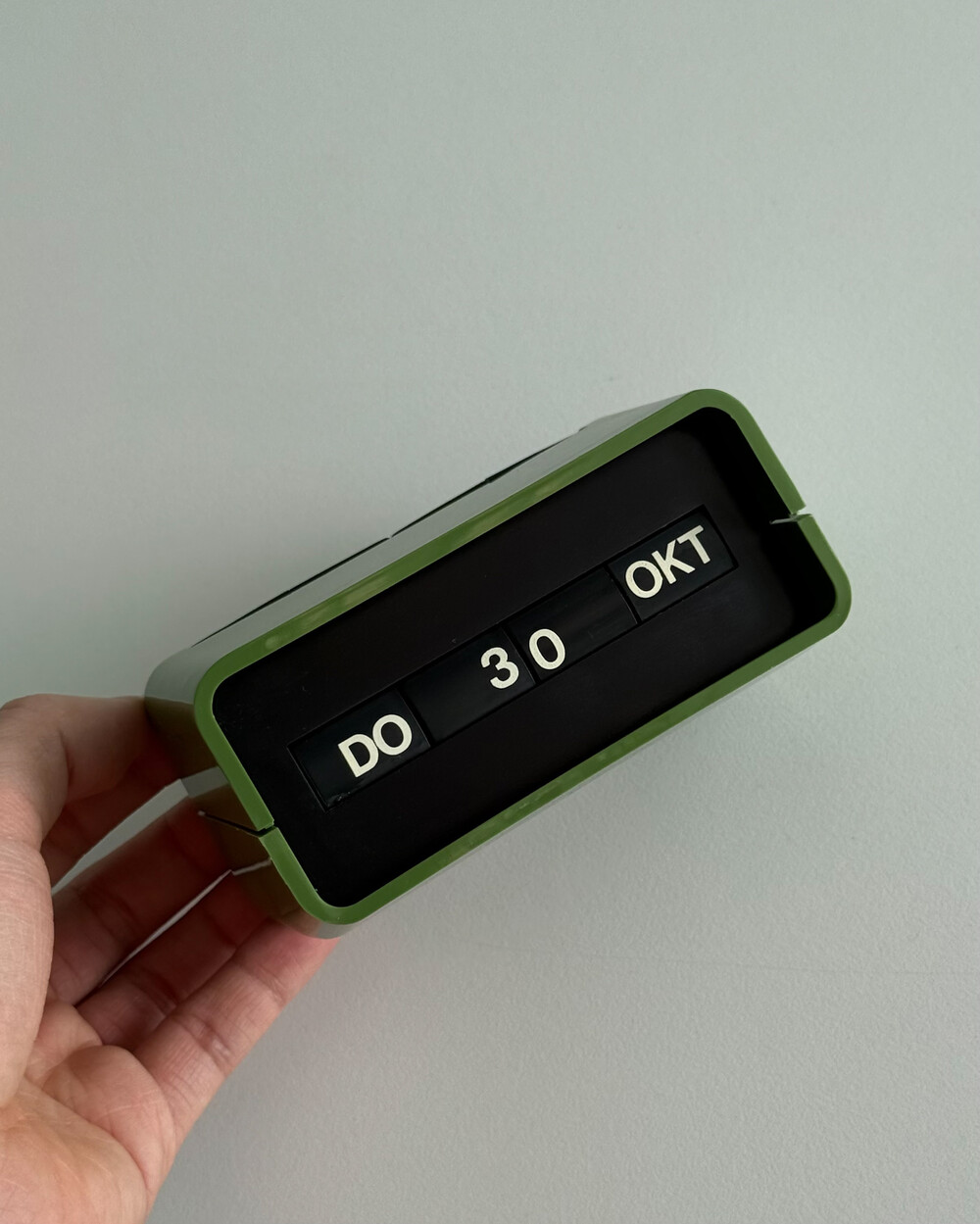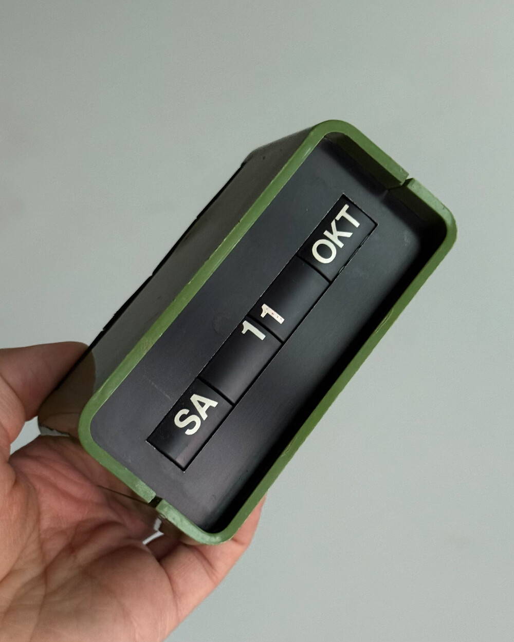 1970년대 독일 데스크용품회사인 Arlac에서 제작된 빈티지 퍼페추얼 데스크 캘린더 Dati 입니다. 배터리 없이 수동으로 넘겨가며 사용하는 만년 캘린더로, 상단에 있는 4개의 상단의 다이얼을 돌려 요일/일/월 을 설정할 수 있어 셋팅과 사용에 제한이 없습니다.