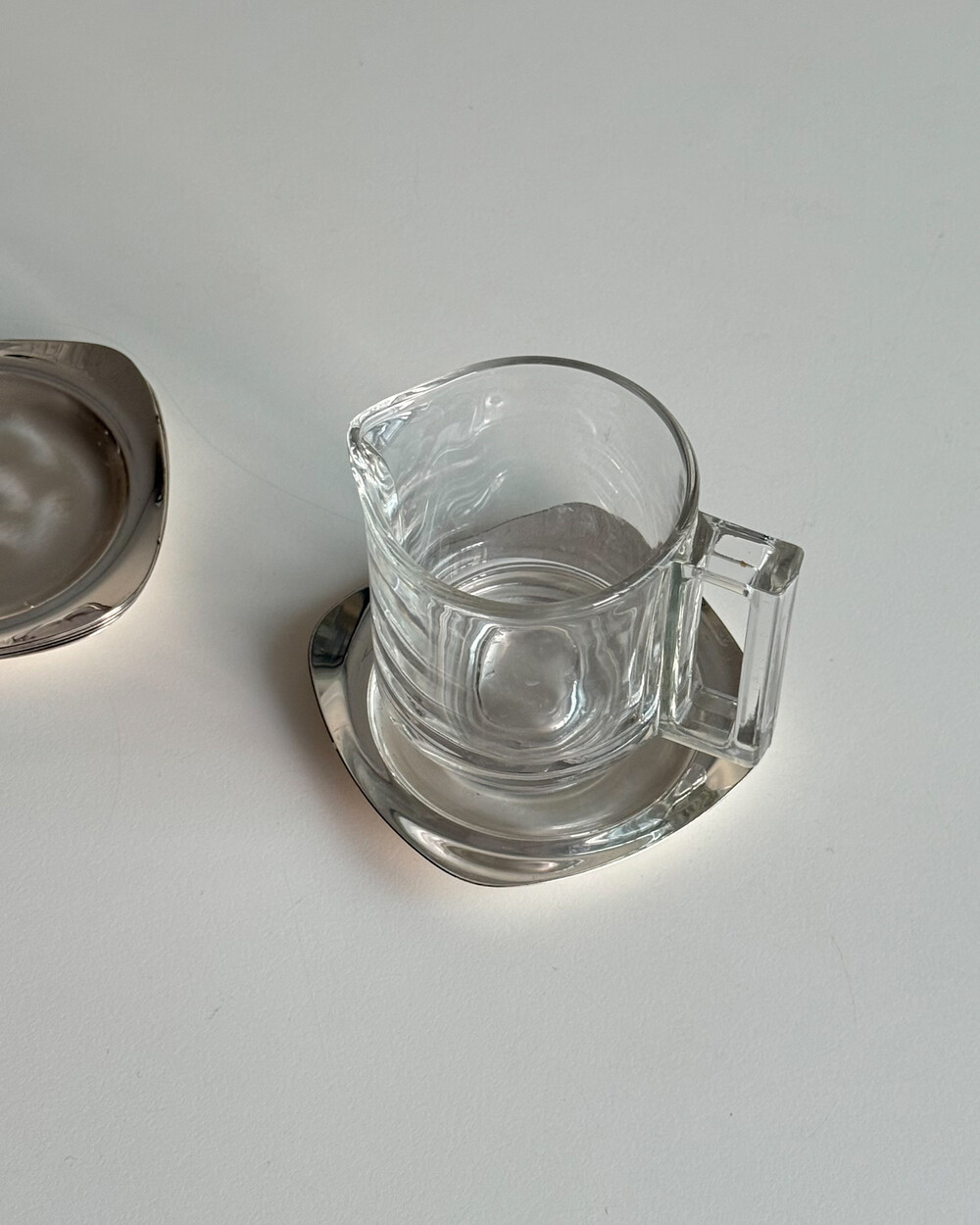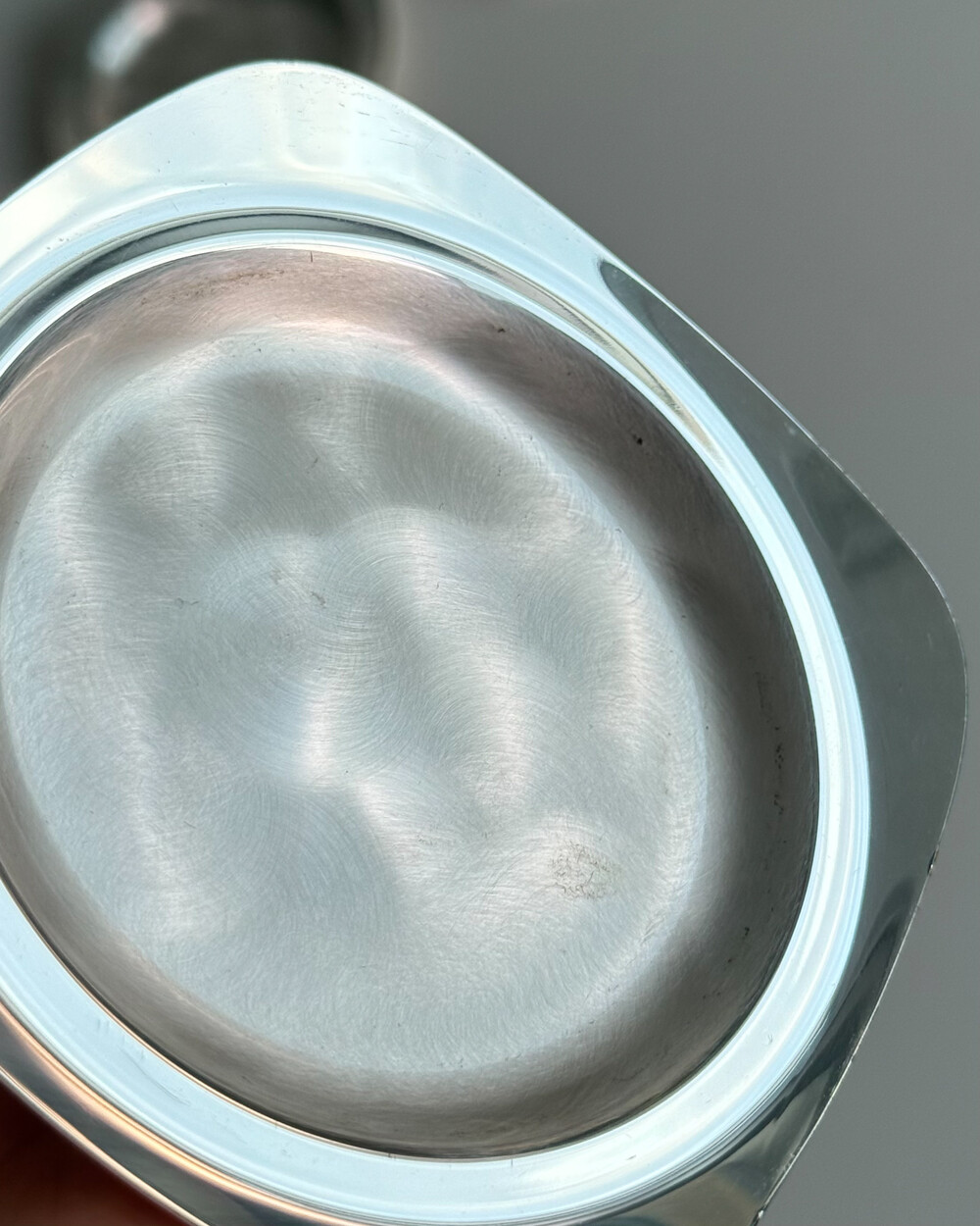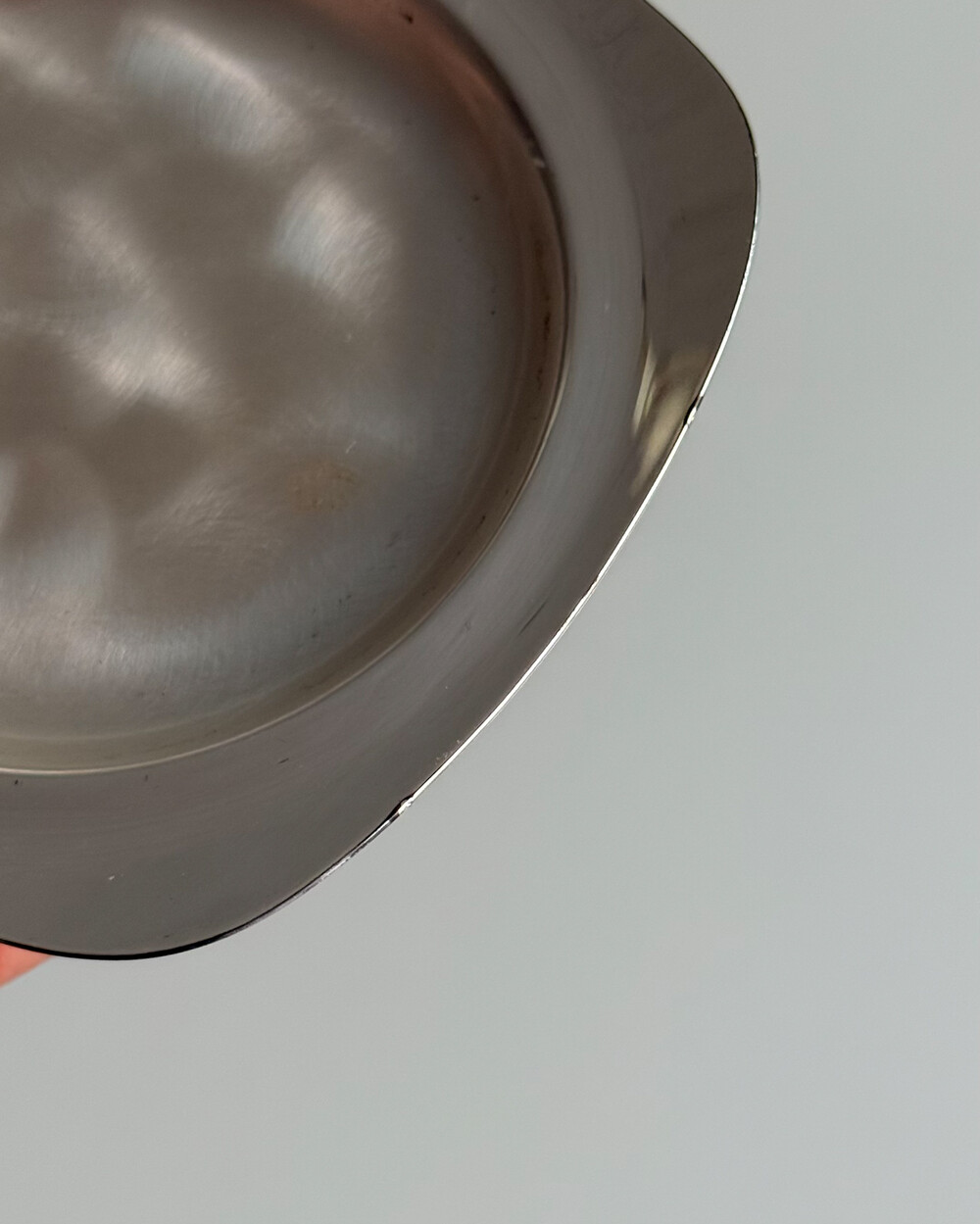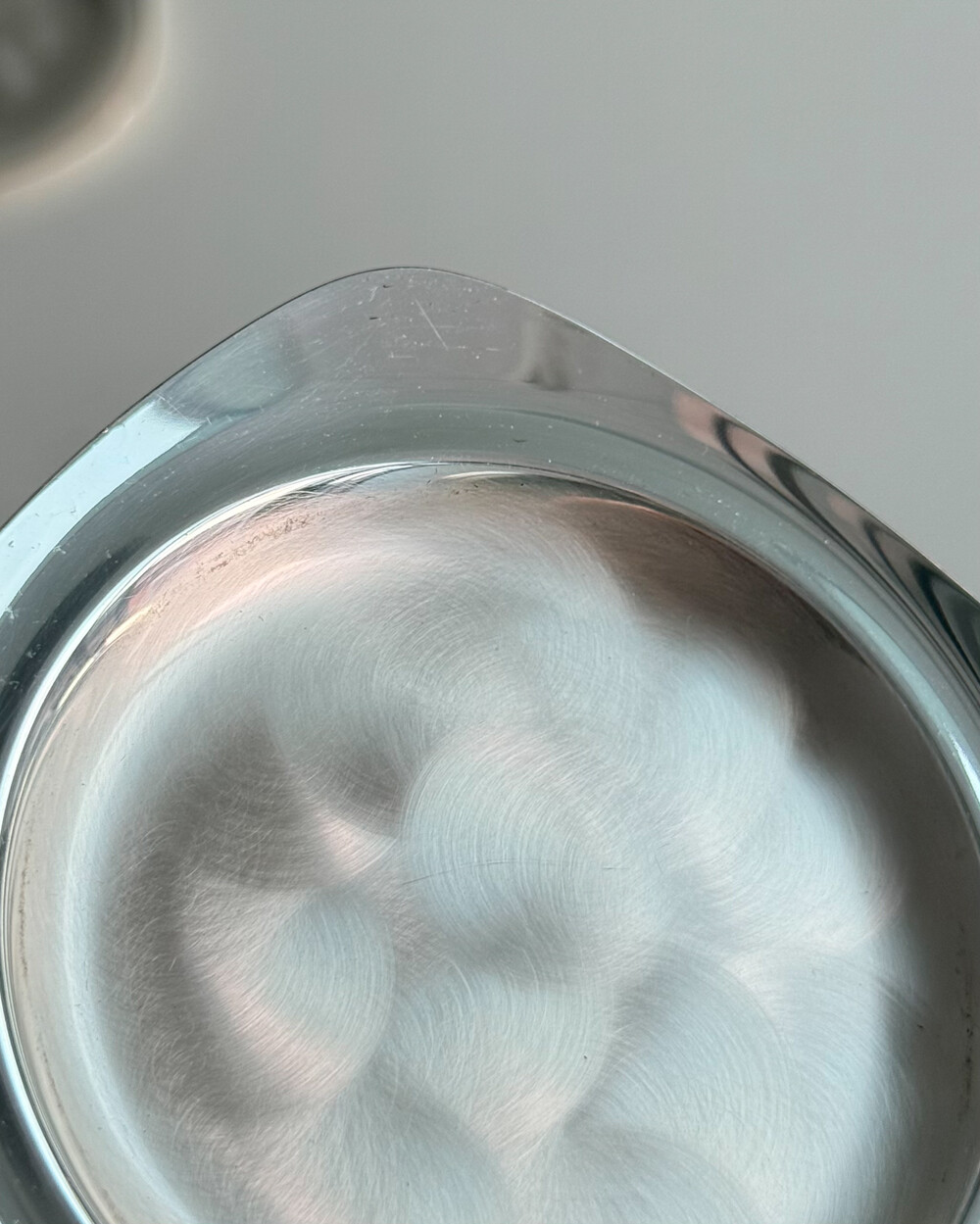 1970년도 WMF IKORA 라인의 코스터 세트 입니다. 중앙 부분의 독특한 질감 처리와 우아한 곡선미가 돋보이는 이 제품은 찻잔 받침, 액세서리 트레이, 또는 장식용 미니 접시 등 다양한 용도로 활용하기 좋습니다.
