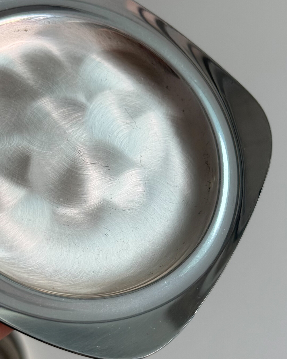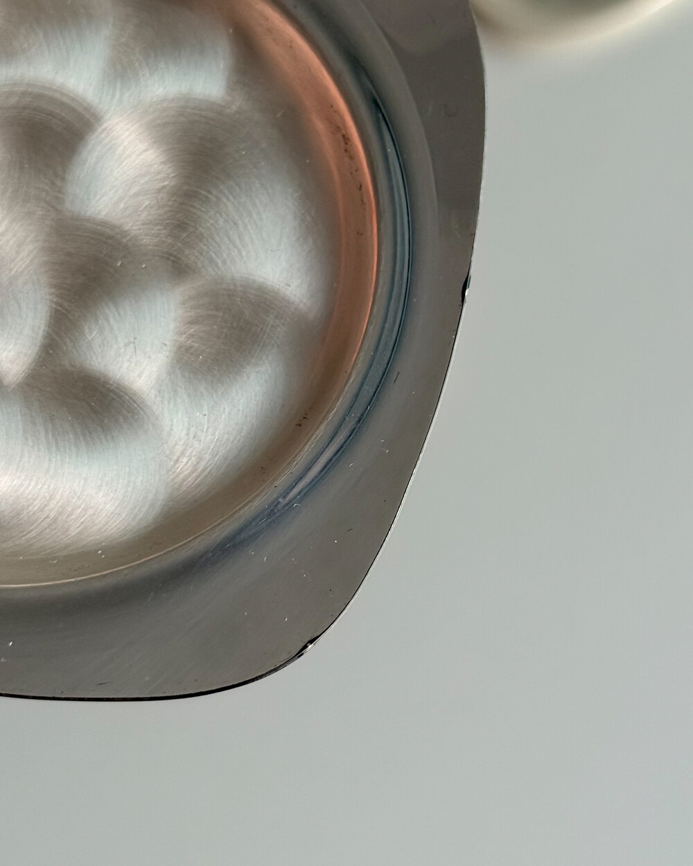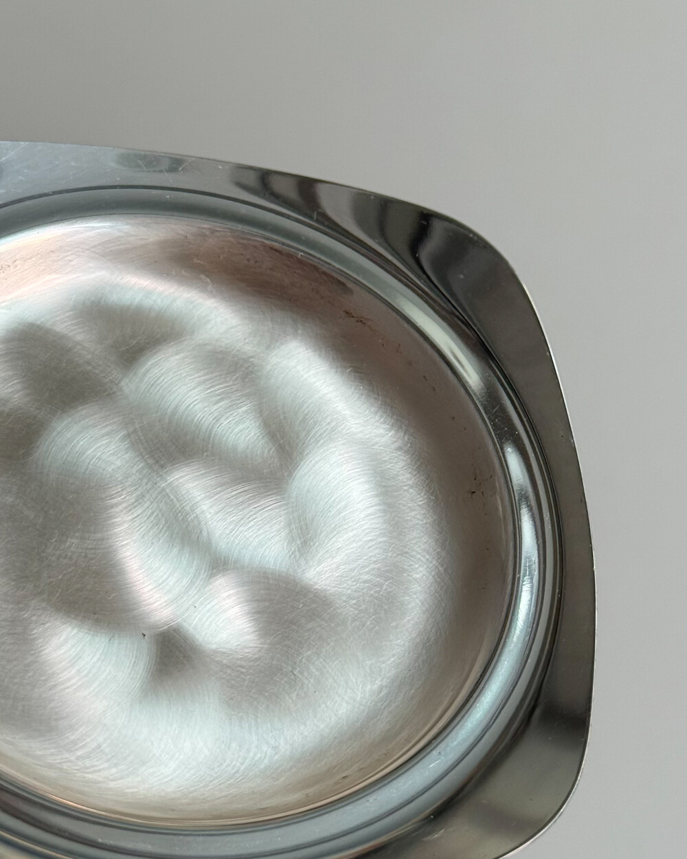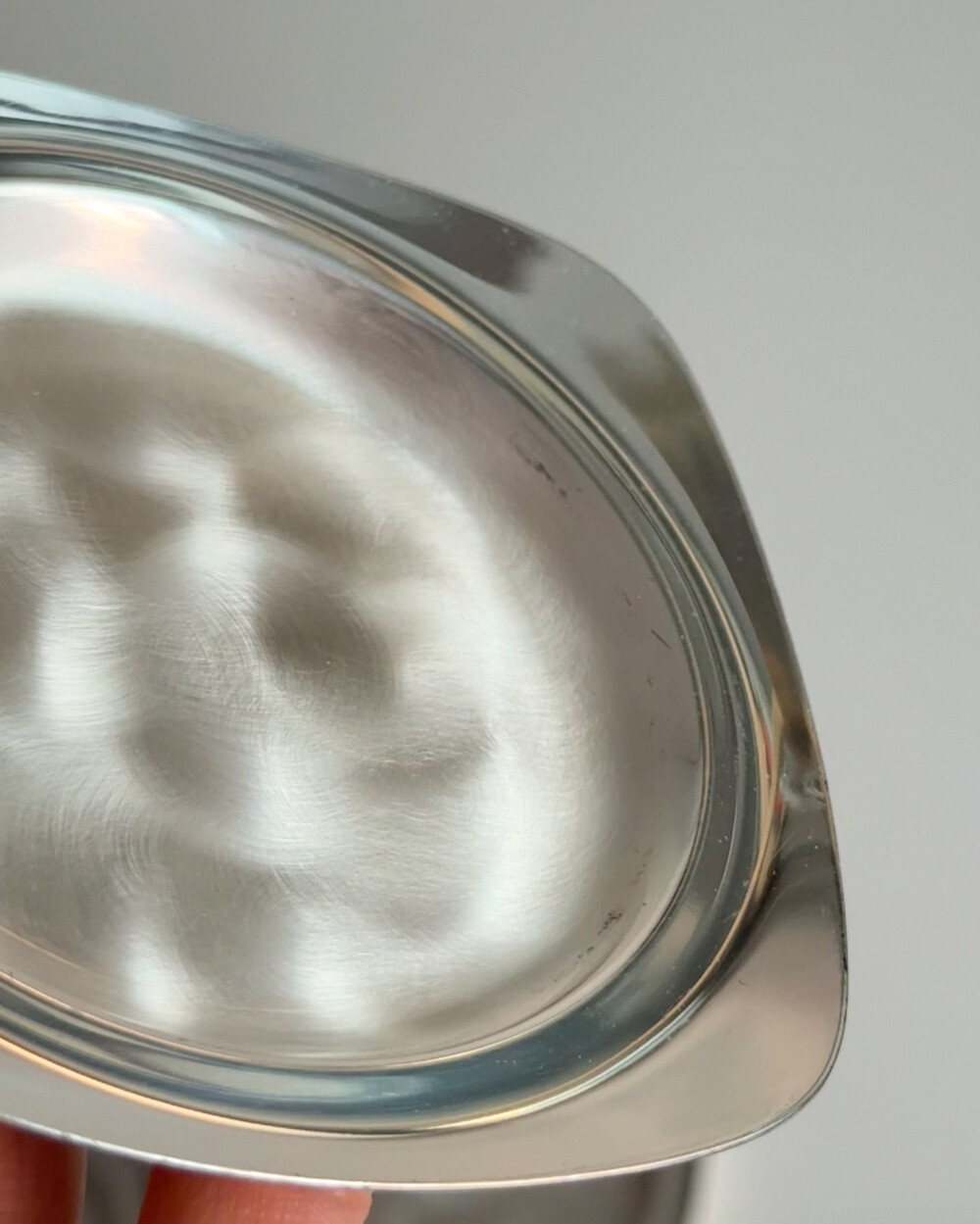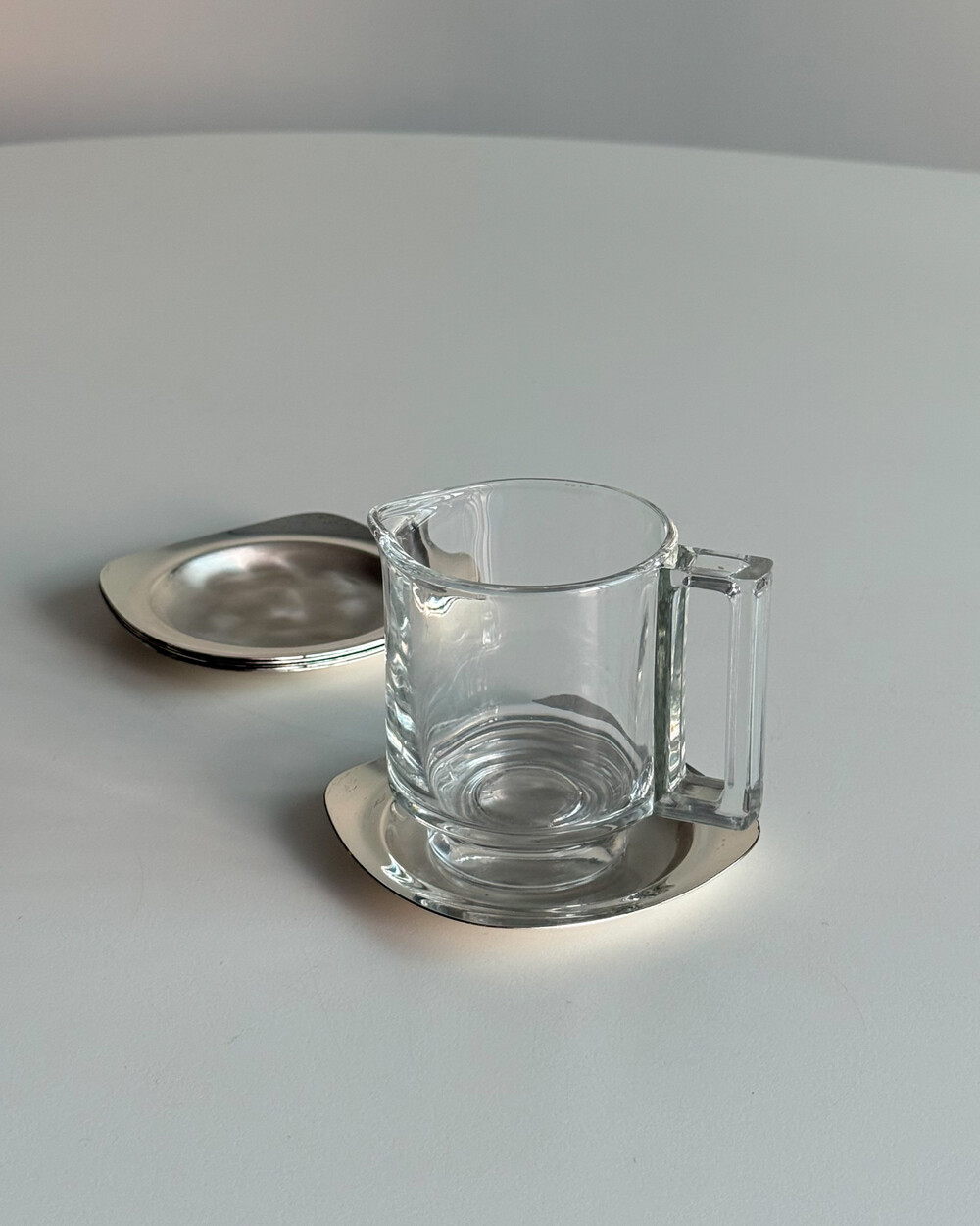 1970년도 WMF IKORA 라인의 코스터 세트 입니다. 중앙 부분의 독특한 질감 처리와 우아한 곡선미가 돋보이는 이 제품은 찻잔 받침, 액세서리 트레이, 또는 장식용 미니 접시 등 다양한 용도로 활용하기 좋습니다.