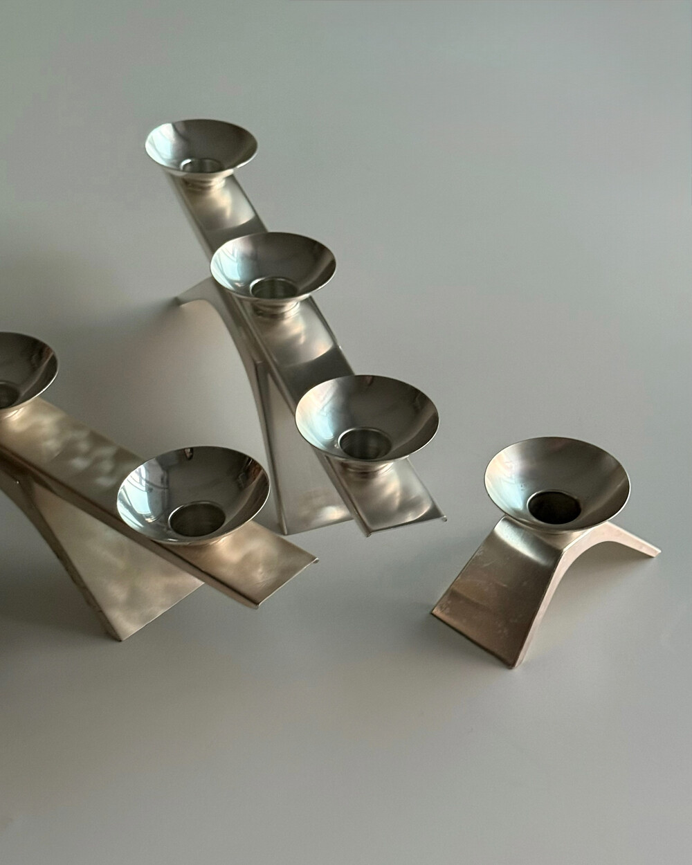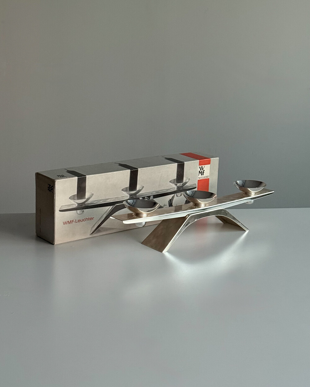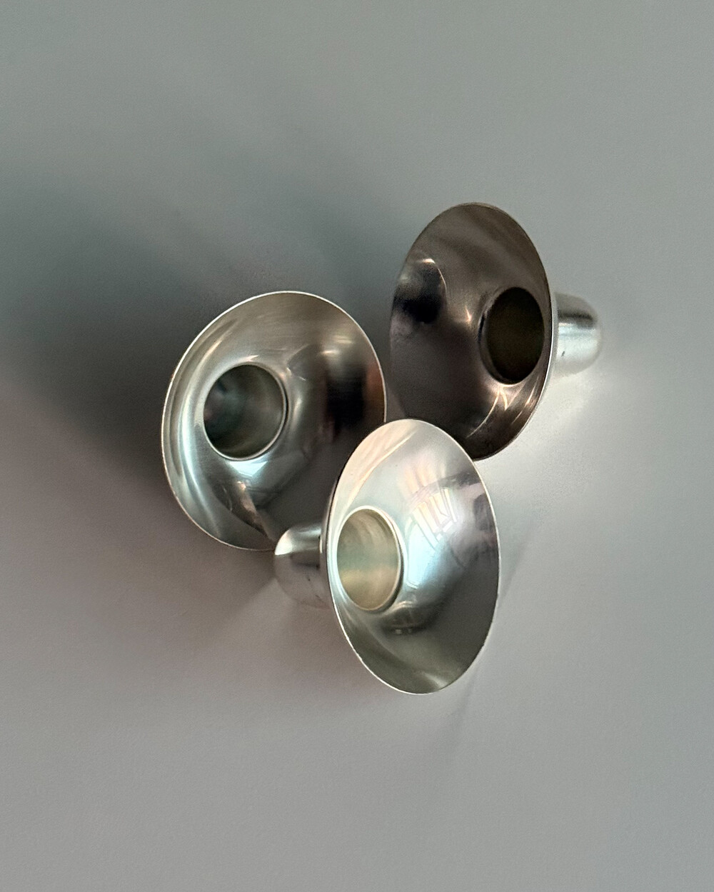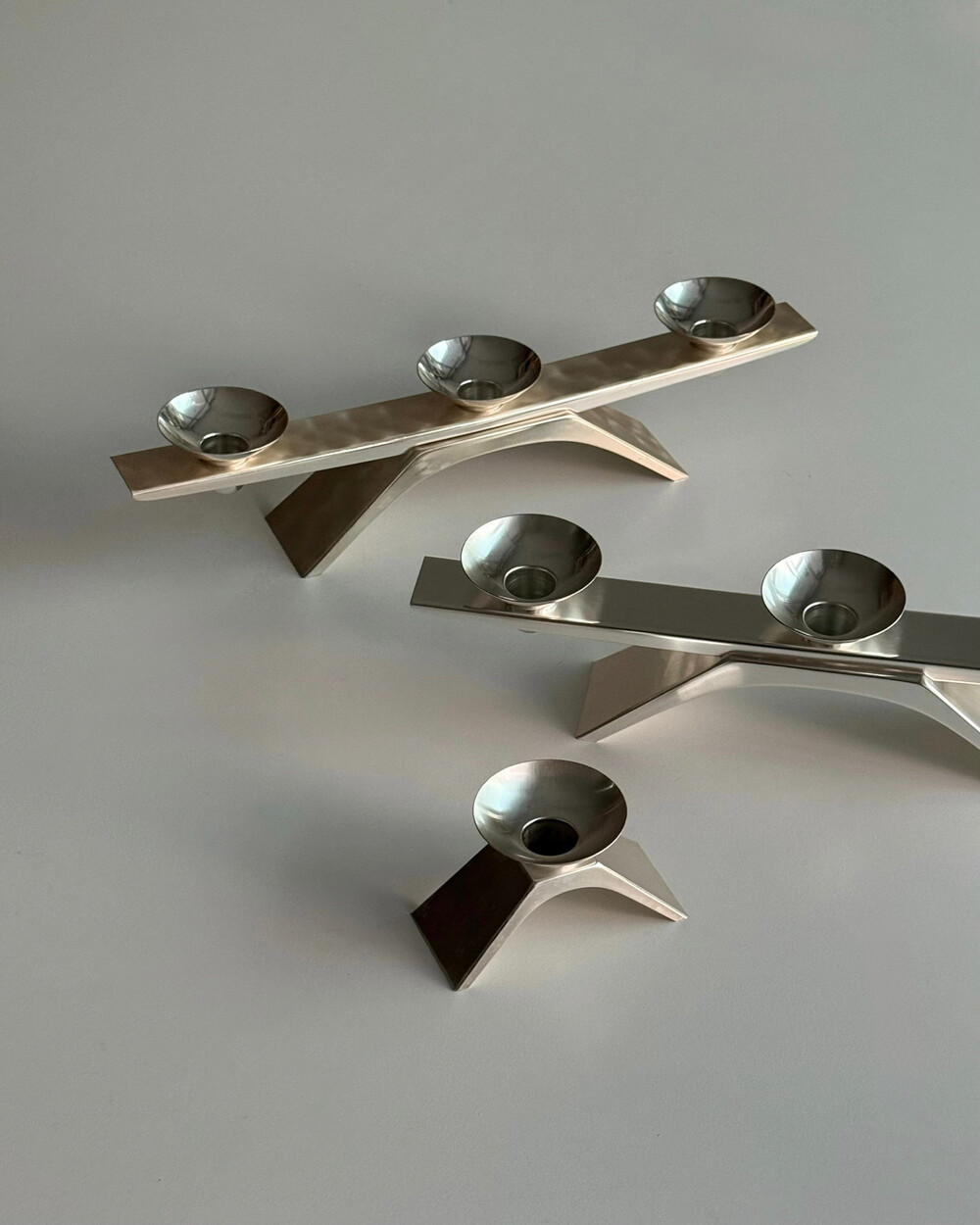 1970년대 독일 WMF에서 제작된 스테인리스 스틸 캔들 홀더입니다. 고급스러운 스테인리스 소재로, 공간에서 포인트가 되어주는 오브제입니다. 3구 2점과 1구 1점으로 입고되었습니다.