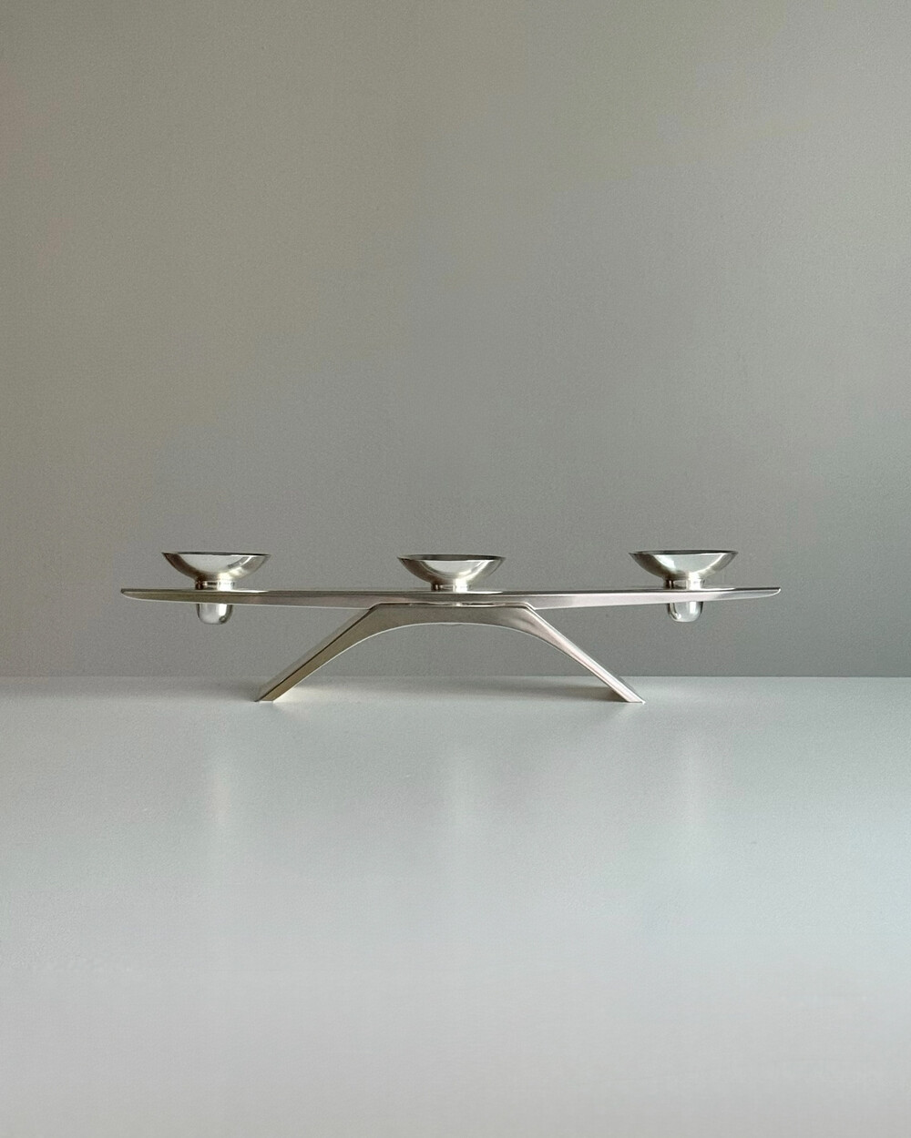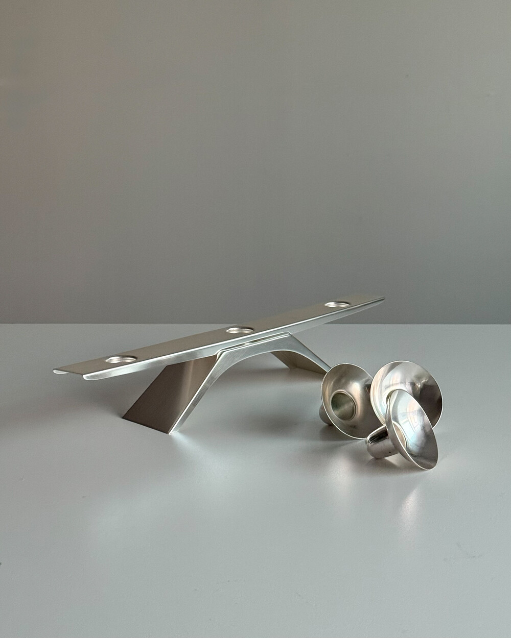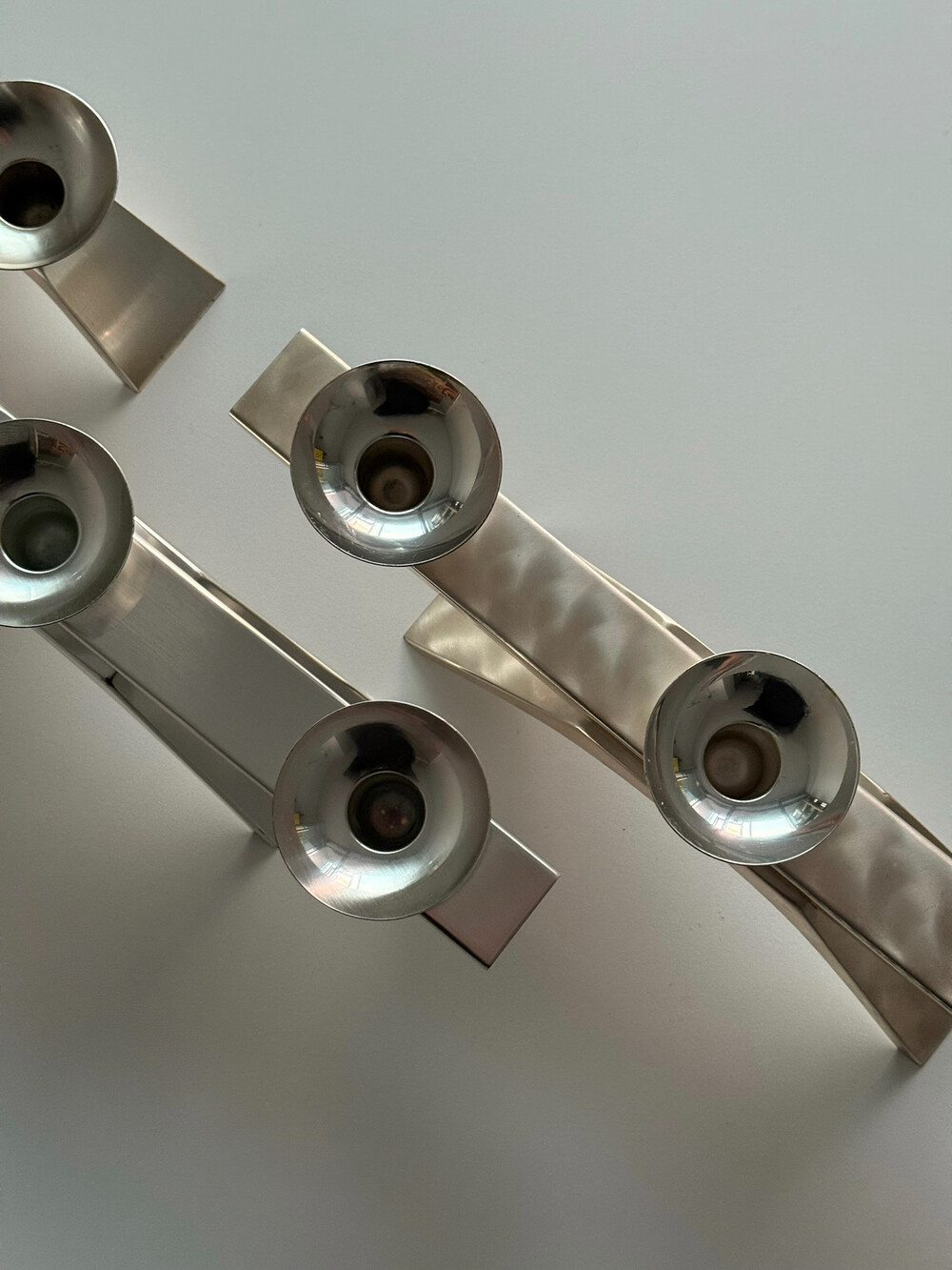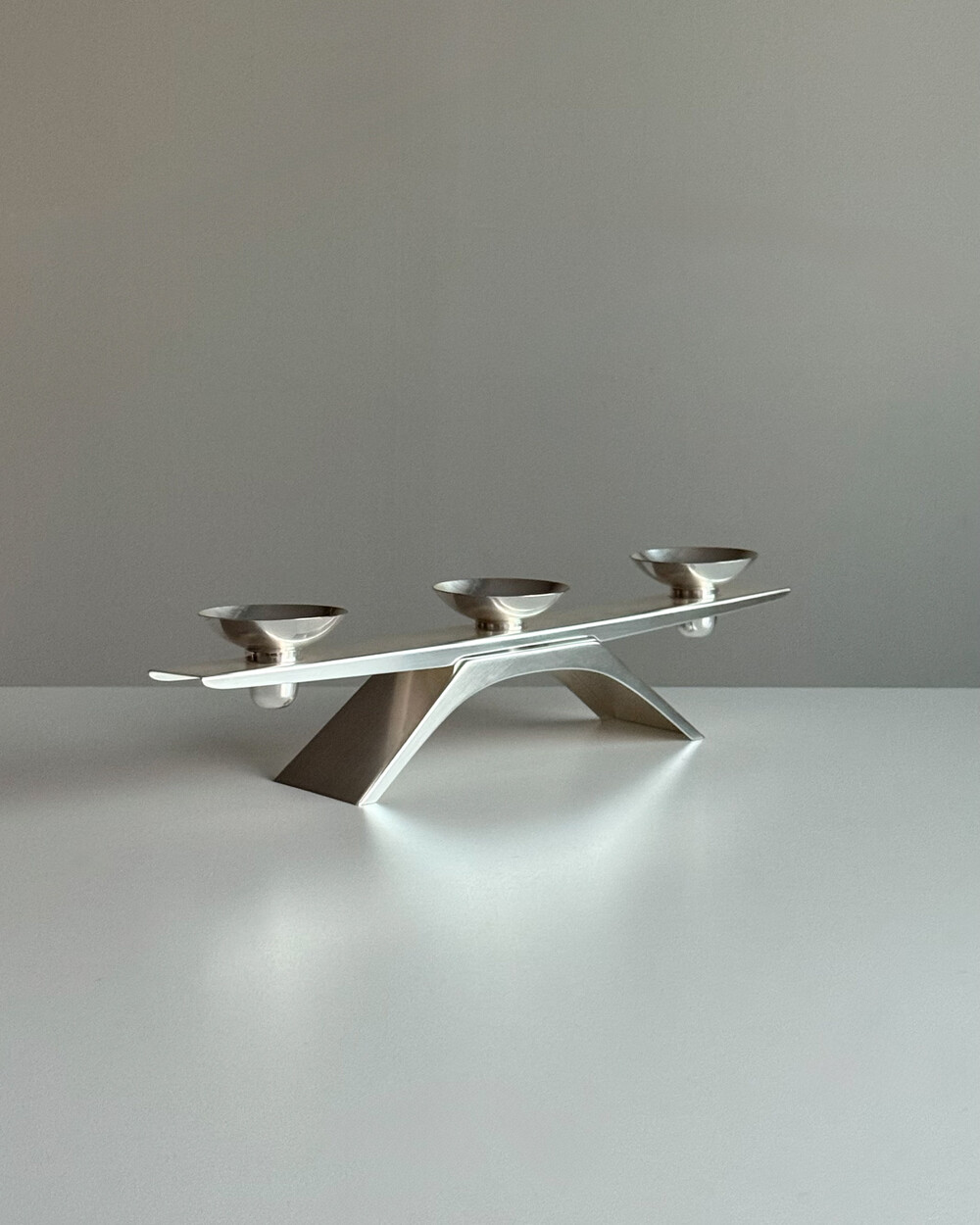 1970년대 독일 WMF에서 제작된 스테인리스 스틸 캔들 홀더입니다. 고급스러운 스테인리스 소재로, 공간에서 포인트가 되어주는 오브제입니다. 3구 2점과 1구 1점으로 입고되었습니다.