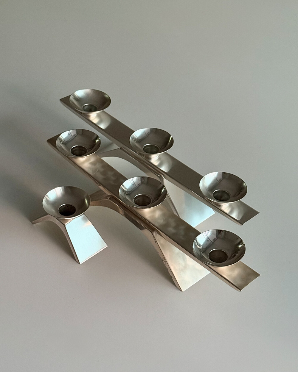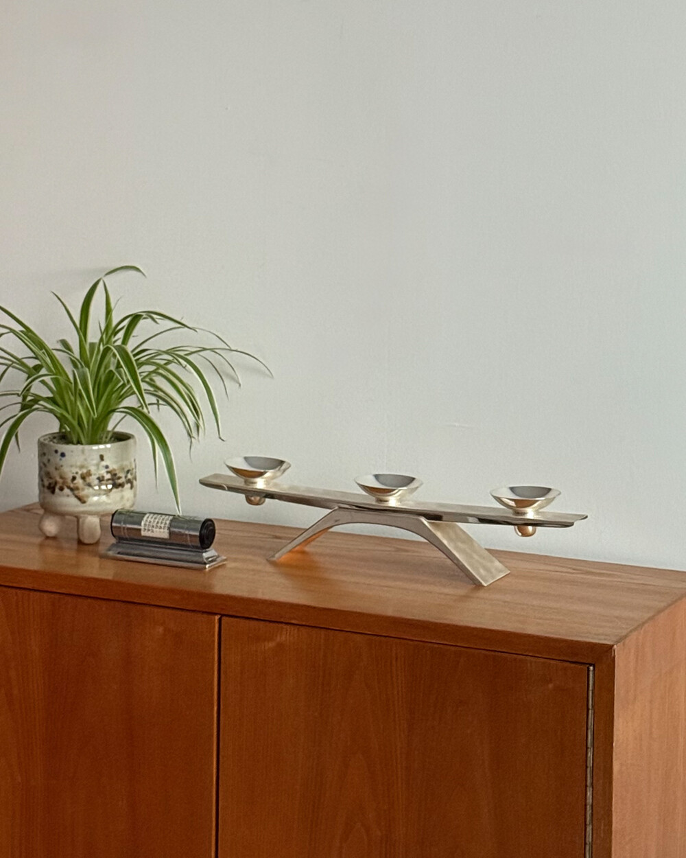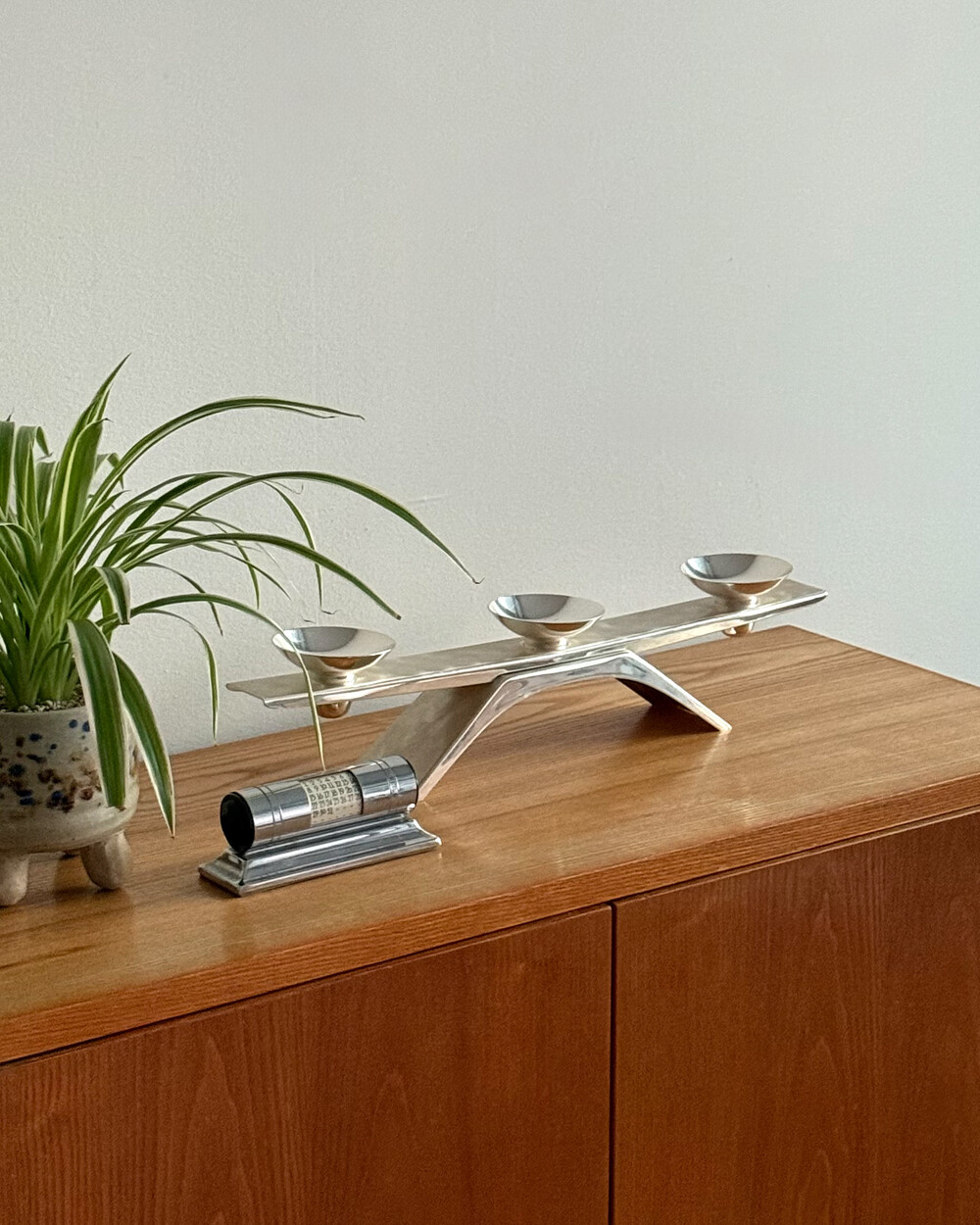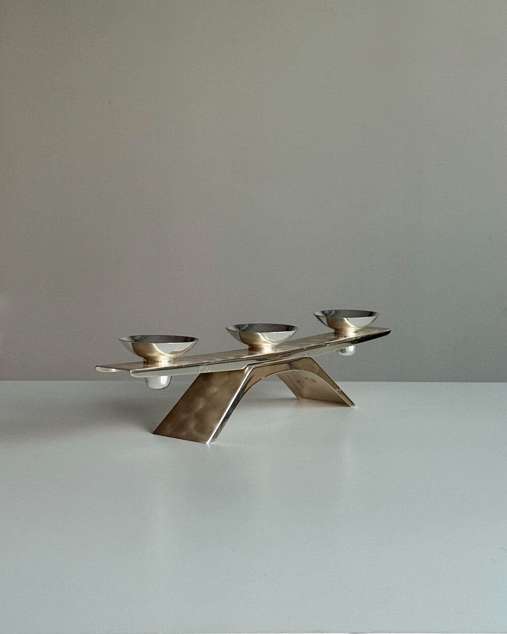 1970년대 독일 WMF에서 제작된 스테인리스 스틸 캔들 홀더입니다. 고급스러운 스테인리스 소재로, 공간에서 포인트가 되어주는 오브제입니다. 3구 2점과 1구 1점으로 입고되었습니다.