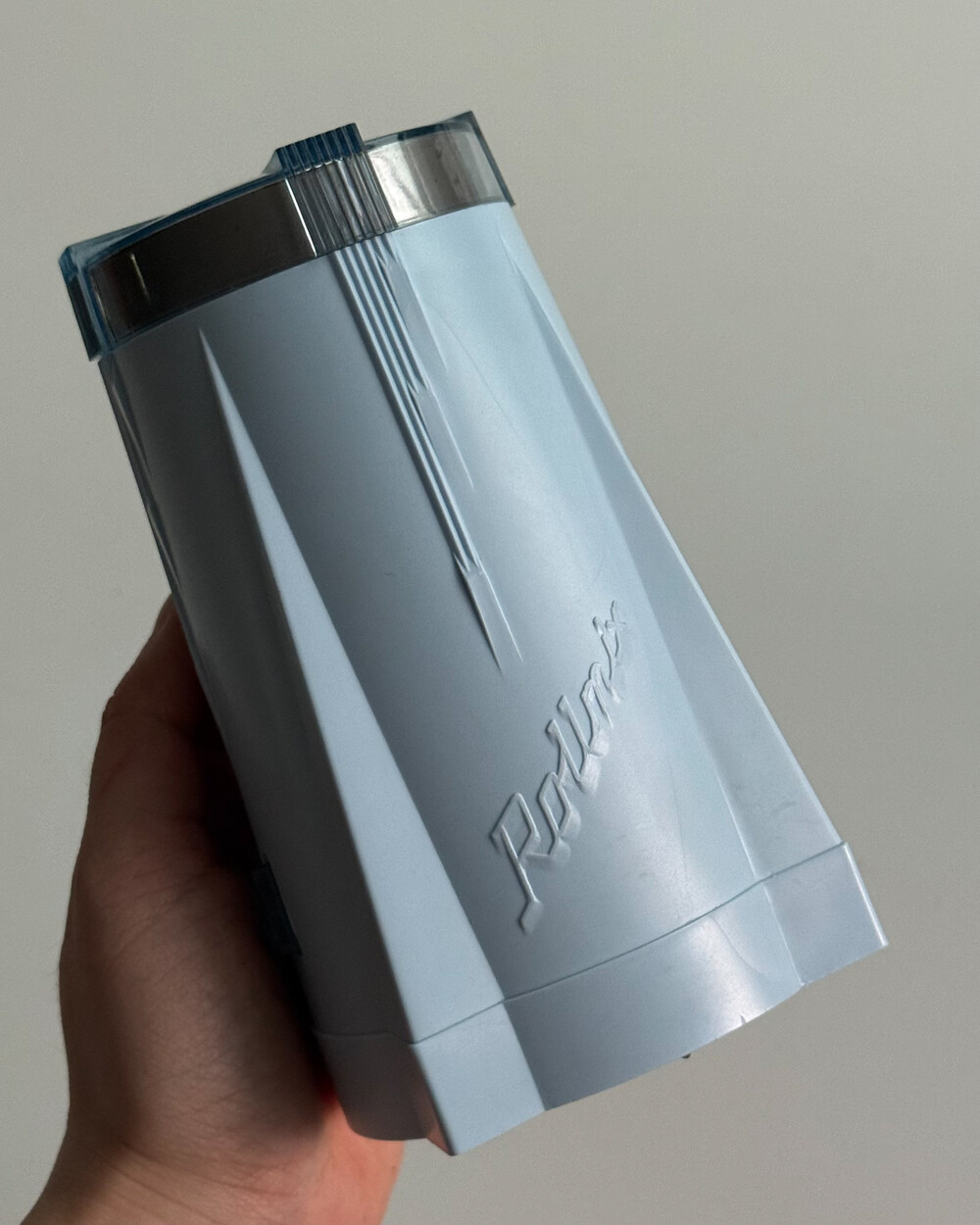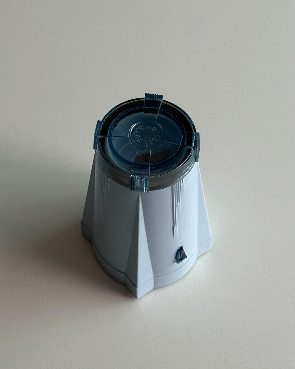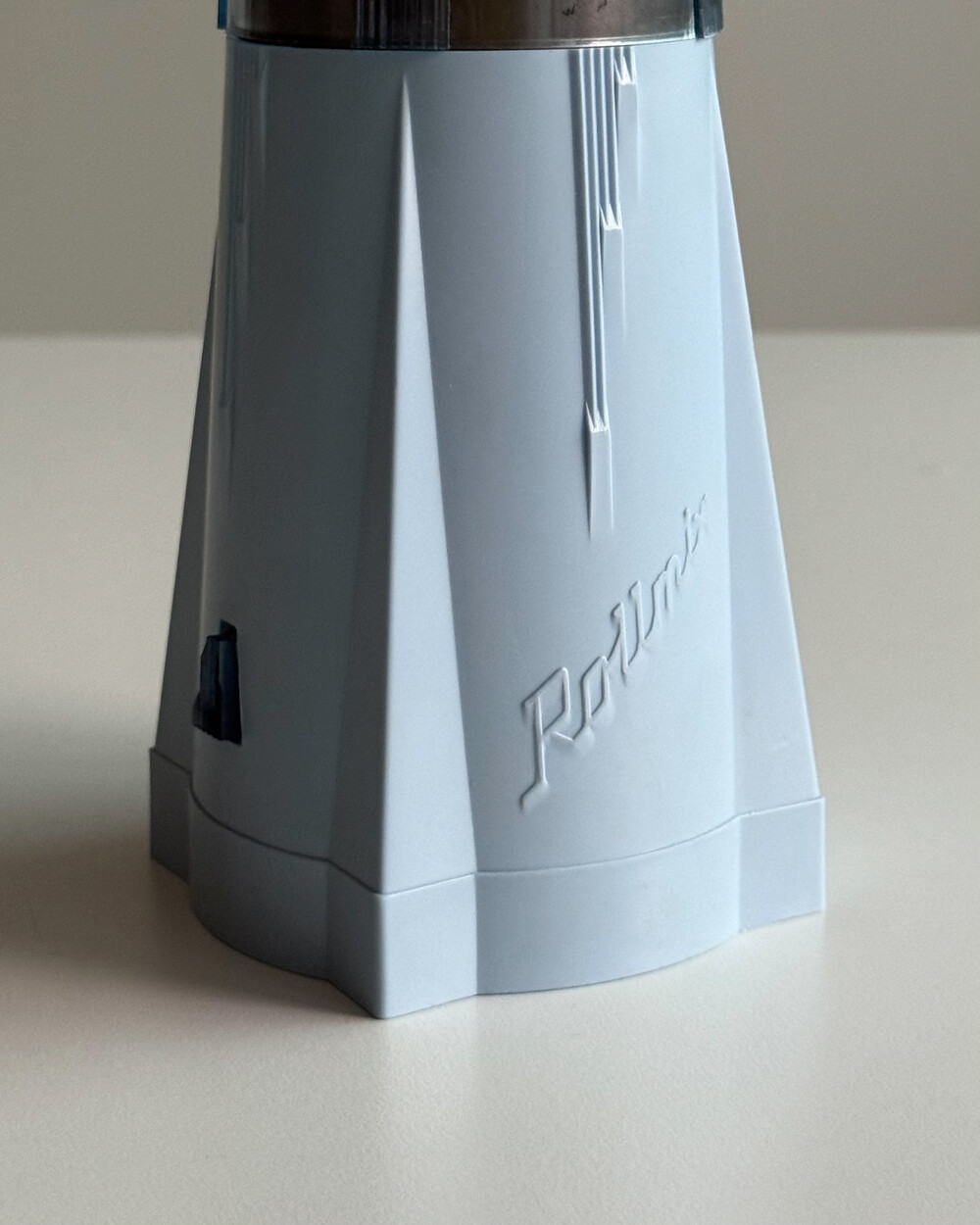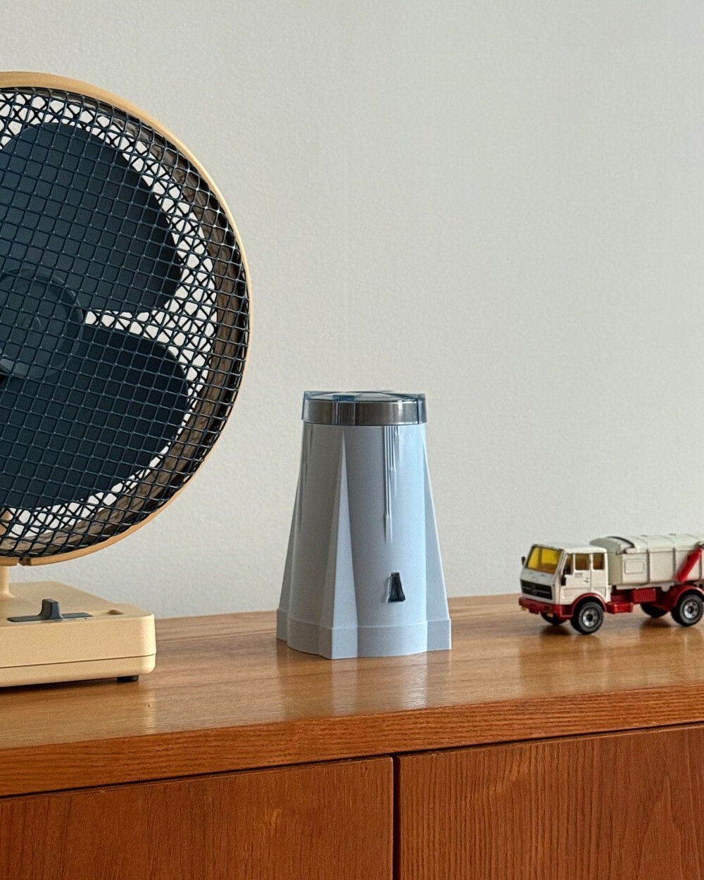 1970년대 프랑스에서 제작된 어린이용 전동 커피 그라인더 장난감입니다. 1960년대 후반~ 1970년대 중반 당시 유럽은 작동하는 미니 가전 장난감이 크게 유행한 시기로, 실제로 소량의 원두를 안전하게 분쇄할 수 있는 어린이용 제품으로 설계되었습니다. 당시 토이 가전의 레트로한 매력이 살아 있어, 공간에 놓는 것만으로도 시대적 분위기를 전해줍니다.
