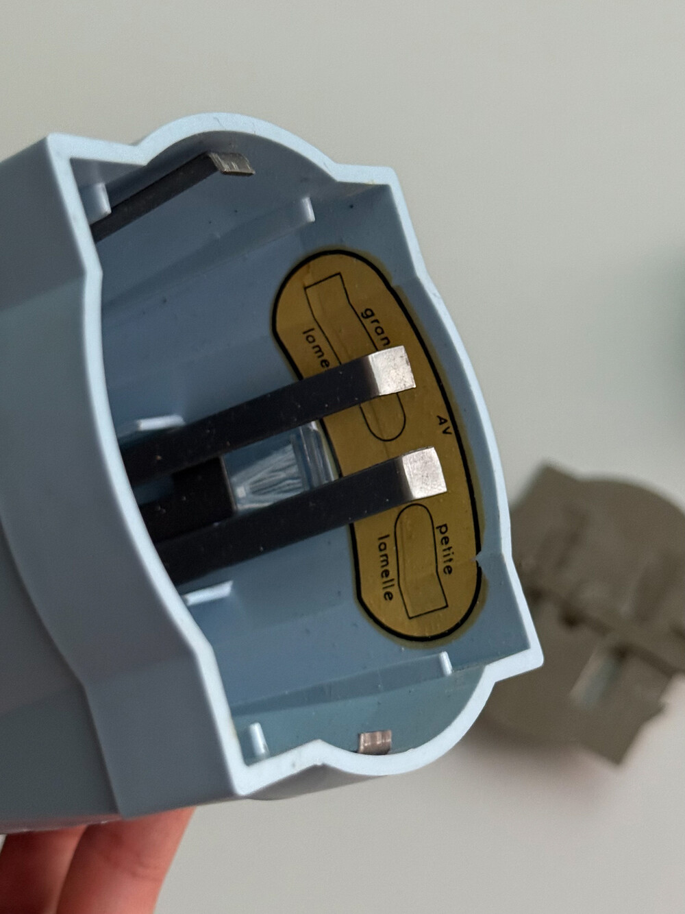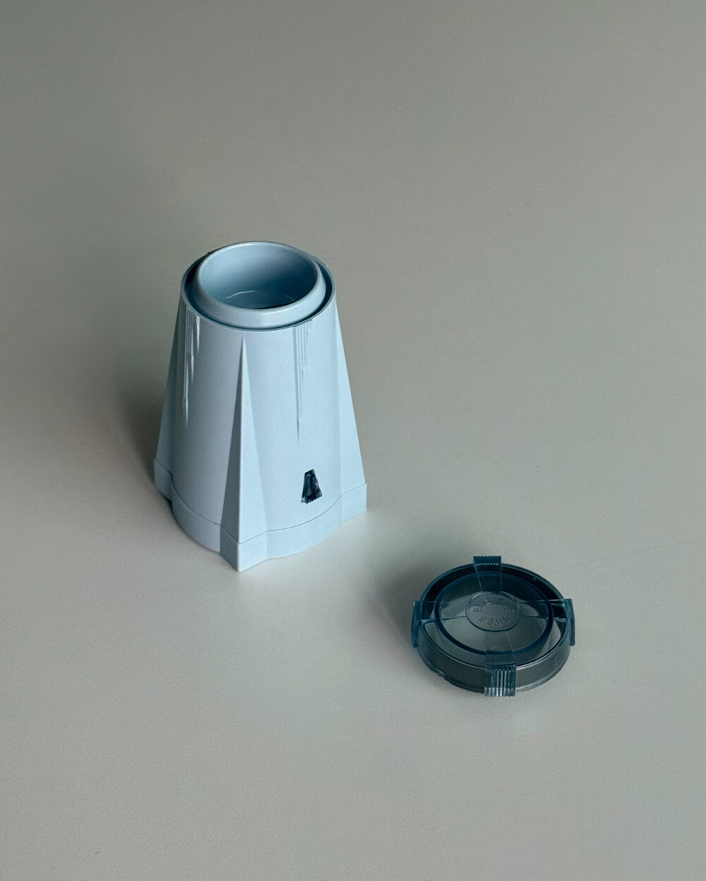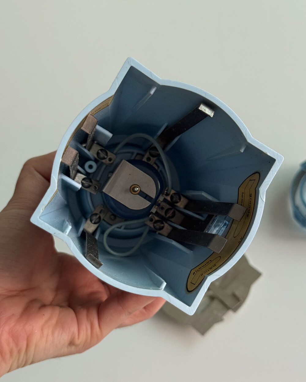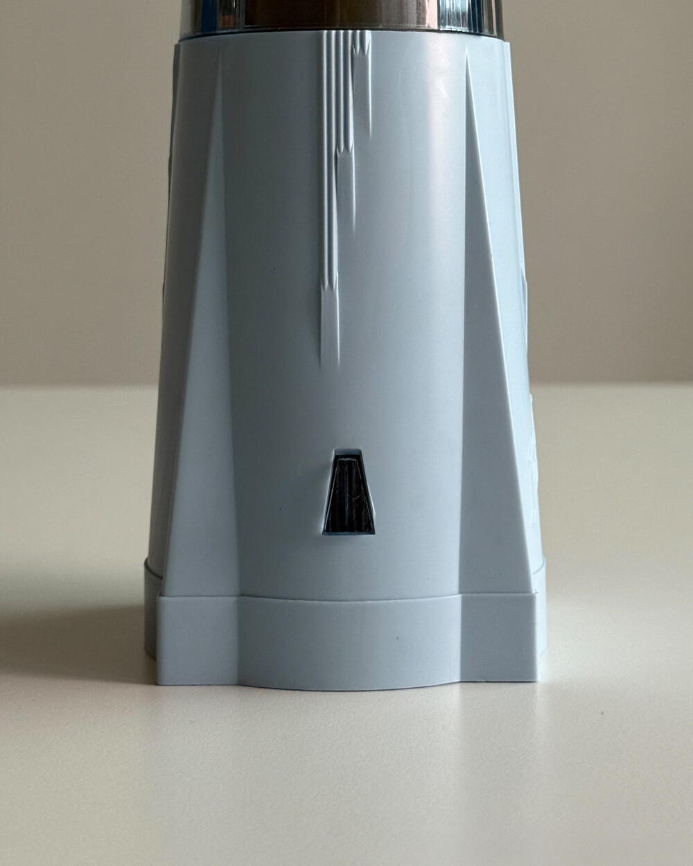1970년대 프랑스에서 제작된 어린이용 전동 커피 그라인더 장난감입니다. 1960년대 후반~ 1970년대 중반 당시 유럽은 작동하는 미니 가전 장난감이 크게 유행한 시기로, 실제로 소량의 원두를 안전하게 분쇄할 수 있는 어린이용 제품으로 설계되었습니다. 당시 토이 가전의 레트로한 매력이 살아 있어, 공간에 놓는 것만으로도 시대적 분위기를 전해줍니다.